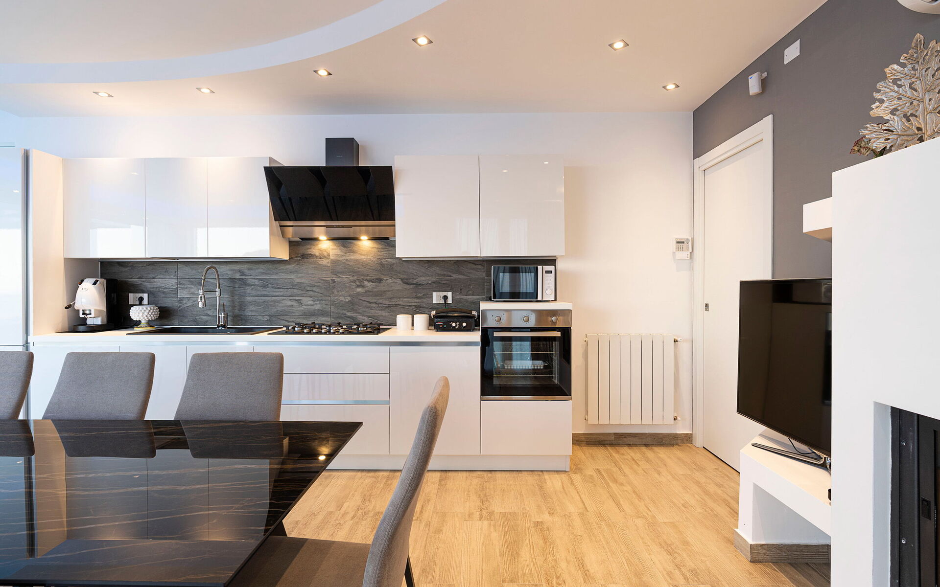- Fully equipped kitchen and complete with: refrigerator and freezer, oven, dishwasher, microwave, espresso coffee machine, kettle, blender, stove, American coffee machine, toaster and a high chair for children