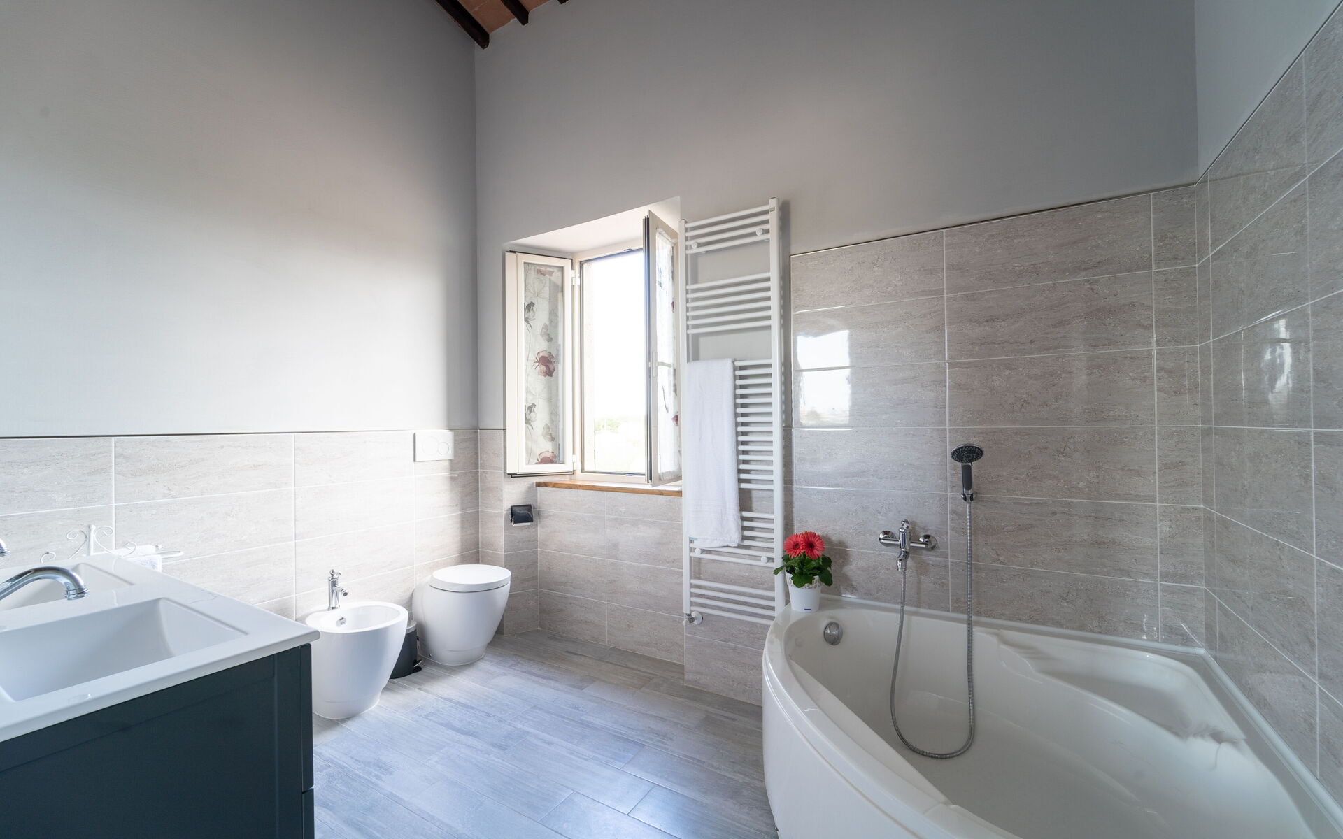 The interiors of Villa Belvedere reflect the charm of traditional Tuscan architecture combined with modern comforts to ensure a pleasant and functional stay. The rooms are generous in size, bright and tastefully furnished. The living areas include a welcoming lounge, often enhanced by original features such as exposed wooden beams and terracotta floors, and a dining room suitable for hosting larger groups. The fully equipped kitchen is designed to meet both everyday needs and the pleasures of a holiday devoted to good food and conviviality. The bedrooms are spacious and comfortable, furnished in a classic style that creates a calm and restful atmosphere. The bathrooms are well finished and functional, completing the interior spaces with practicality and comfort. Overall, Villa Belvedere offers an authentic and refined Tuscan retreat, ideal for guests seeking an elegant countryside experience surrounded by nature, while enjoying all the amenities required for a high-quality stay.