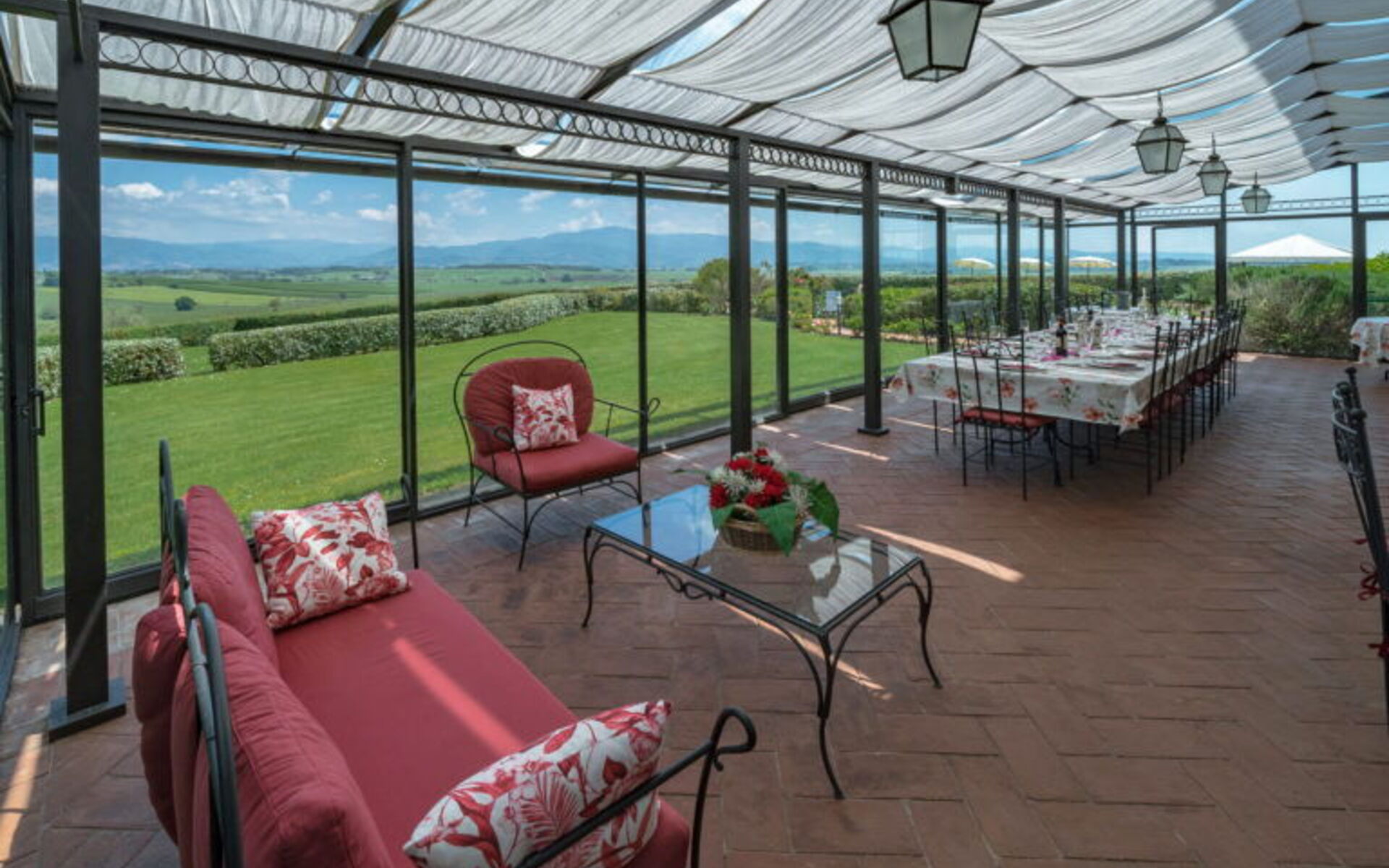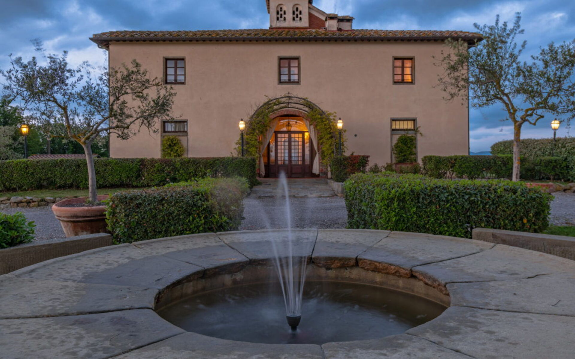 Eingebettet in die toskanische Landschaft, die reich an üppigen Olivenbäumen und Feldern ist, stehen wir am Fuße der schönen etruskischen Stadt Cortona vor einer majestätischen Villa, die von ihrer Position aus das umliegende Gebiet überblickt und beherrscht: Villa Michelangelo.