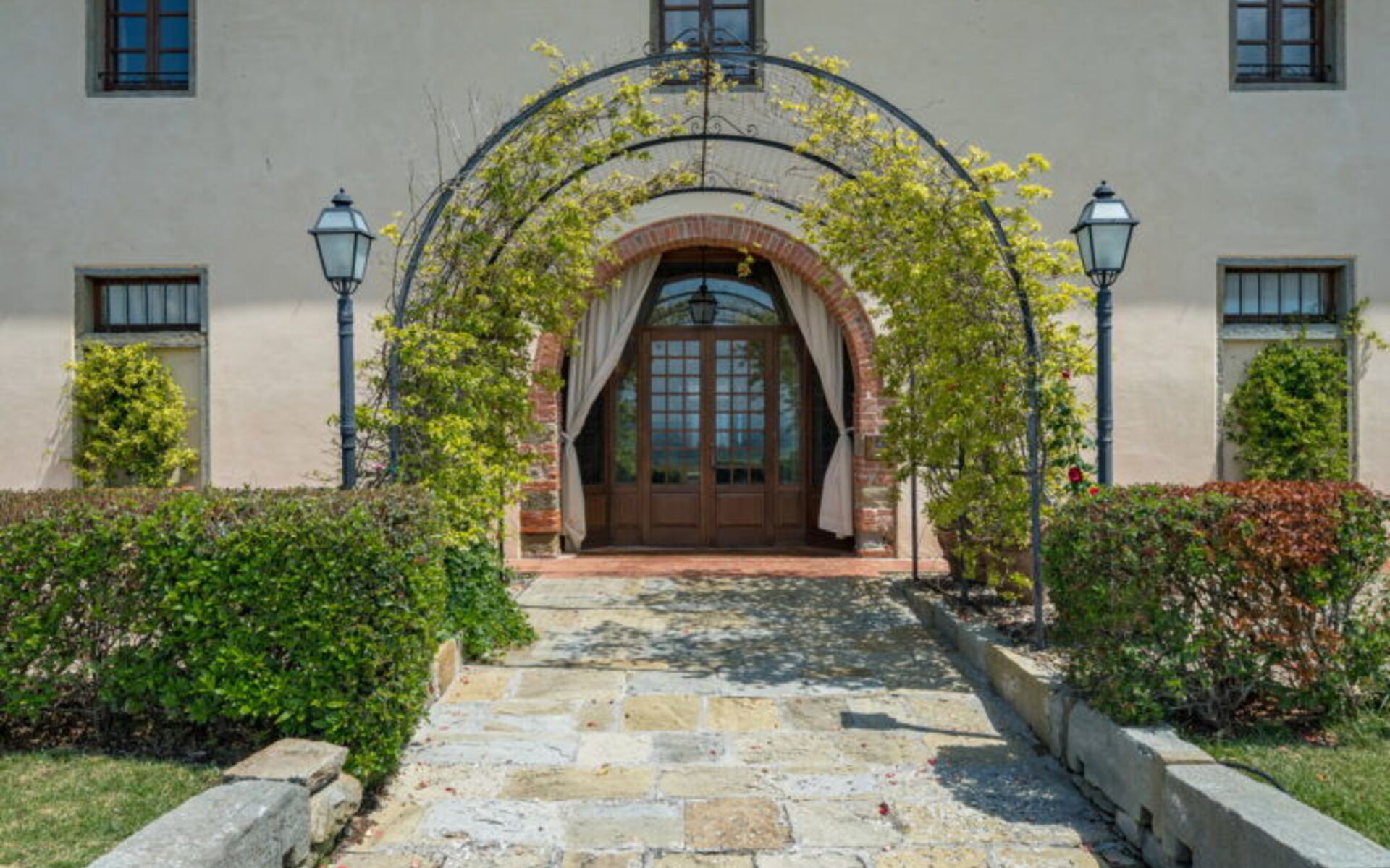 Diese Villa ist ein besonderes Beispiel für die Fähigkeit, die wichtigsten architektonischen toskanischen Traditionen und ursprünglichen Merkmale dank einer klugen Restaurierung beizubehalten: Terrakottaböden, Steintüren und -fenster, freiliegende Holzbalken und Ziegeldecken wurden unter Verwendung der ursprünglichen Materialien des Gebäudes restauriert .