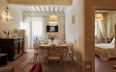 Ada e Sabo is a historic residence located in the center of Cortona, an ancient village of Etruscan origins full of charm and history. We are on the third and top floor of the imposing Palazzo Passerini, one of the historic buildings that symbolize the city. We are in a privileged location, close to all the services and attractions of the city, a stone's throw from the main squares and streets, but at the same time the apartment is in an elevated position which gives it silence and extraordinary views over the town and the surrounding landscape.