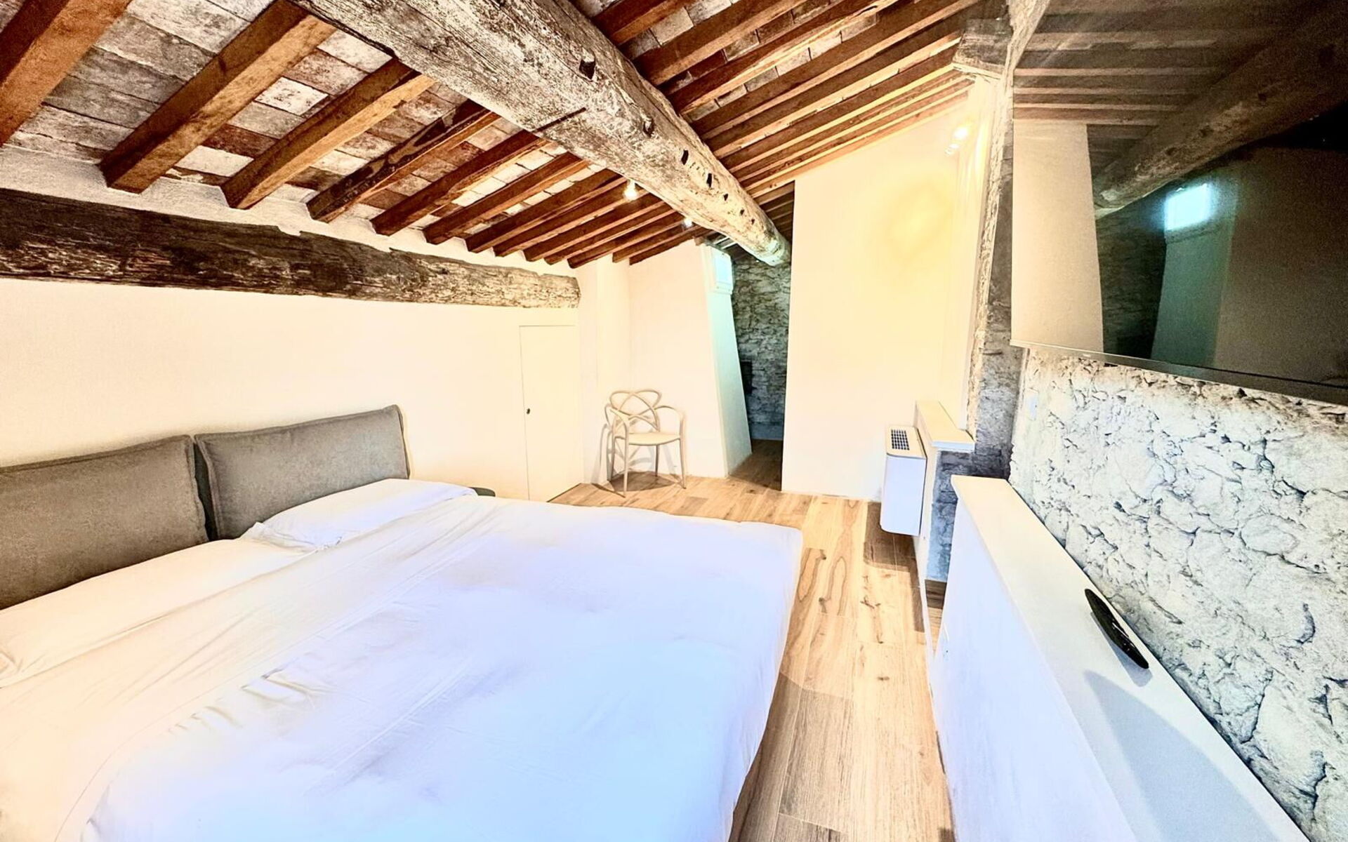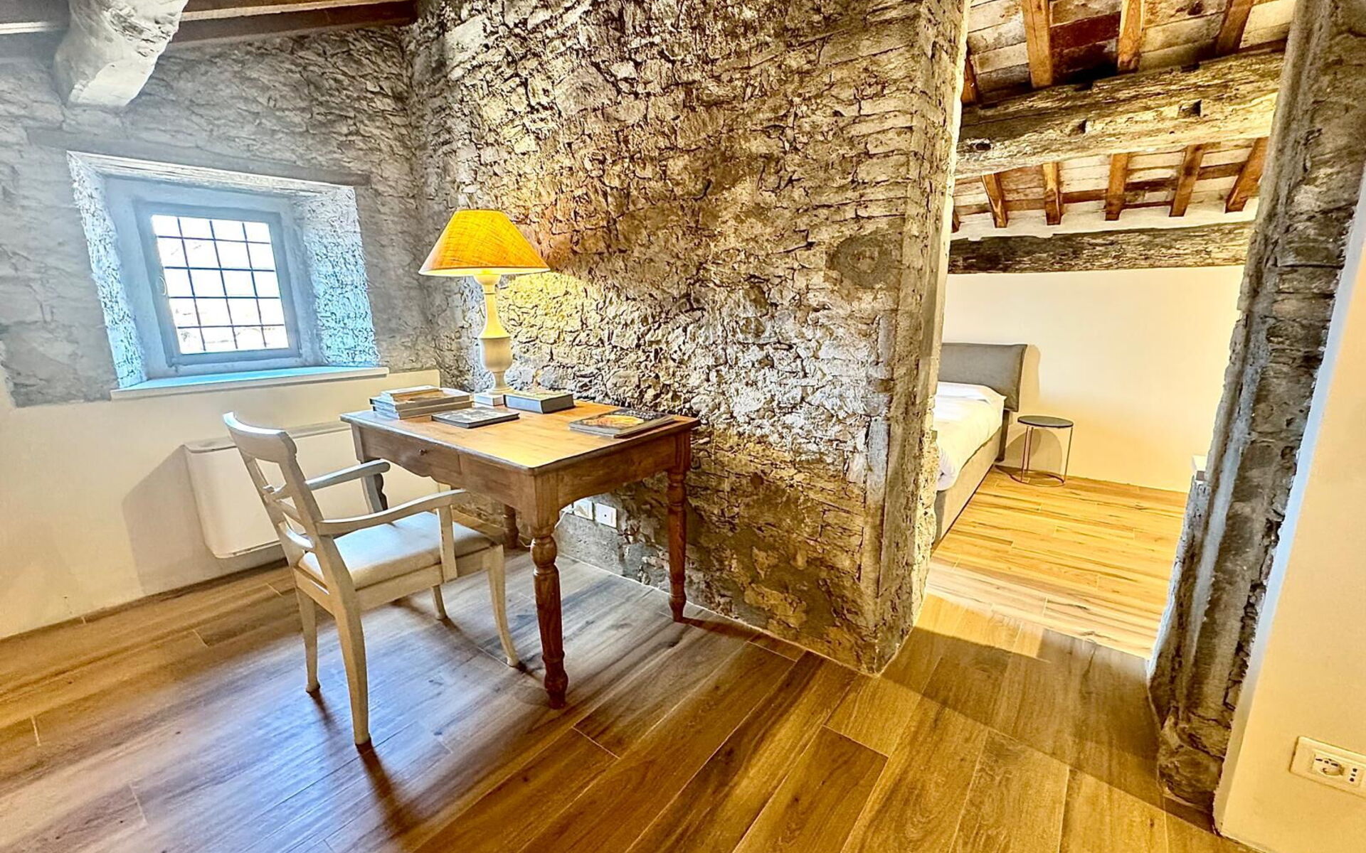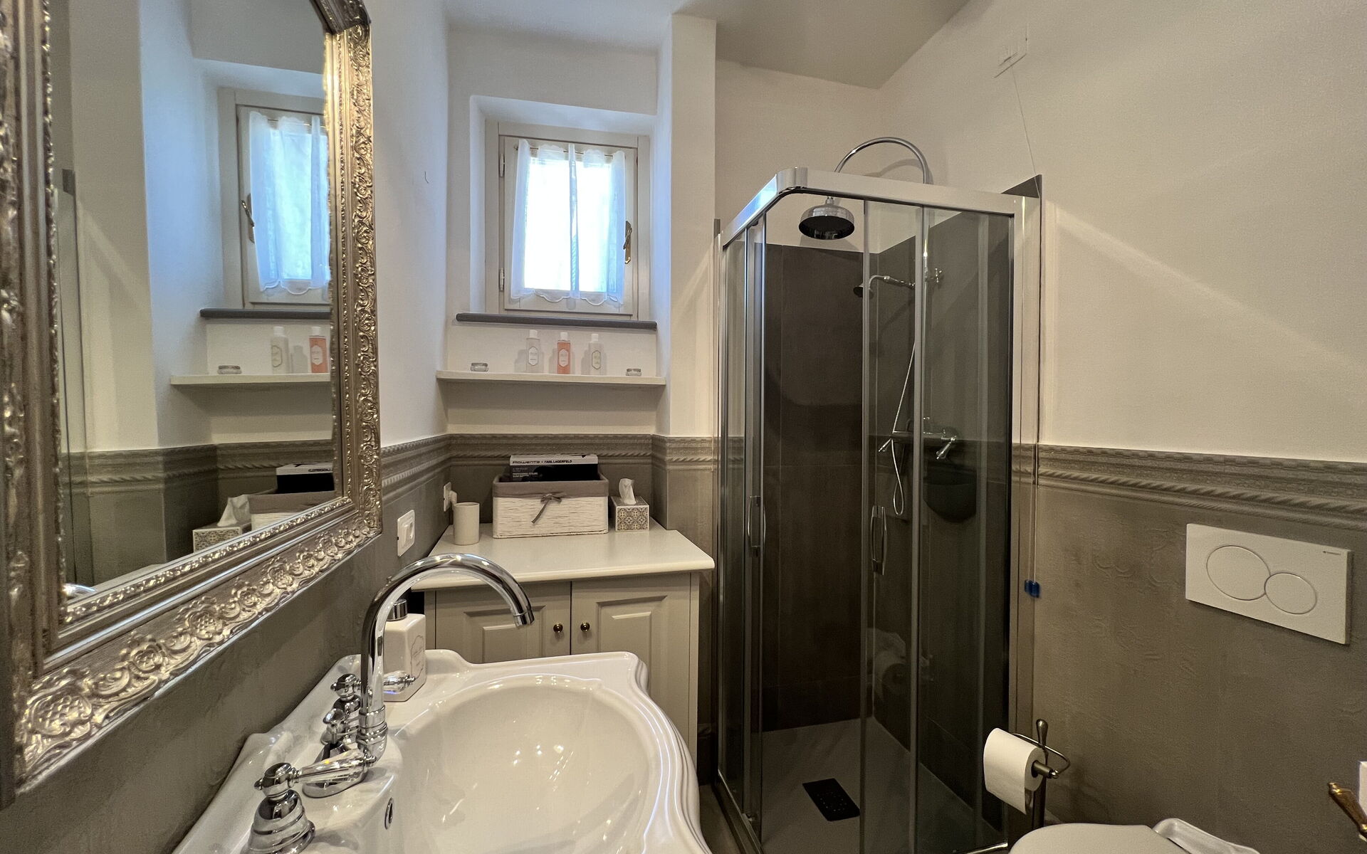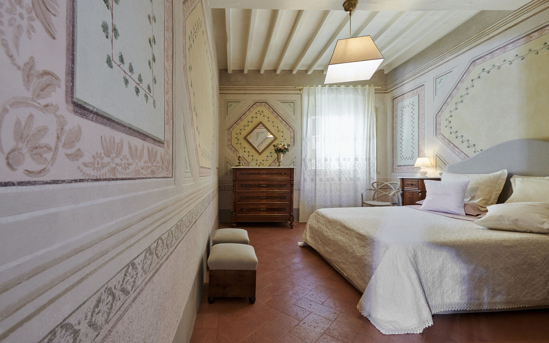 The apartment is about 125 square meters, on 2 floors and can comfortably accommodate up to 8 people. It is characterized by an elegant and refined design, with great attention to detail and an eye to the conservation of the historical details of the structure. The frescoed walls, the original terracotta floors and the exposed wooden beams combine to create a refined and relaxing environment, ideal for both short and long stays.
