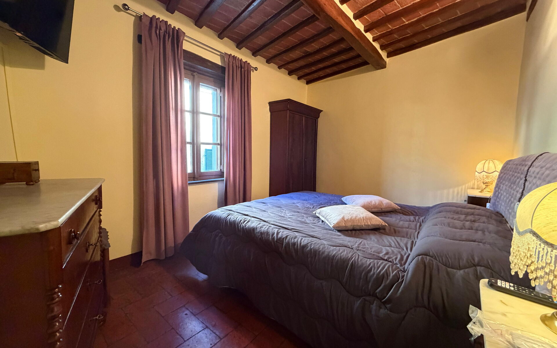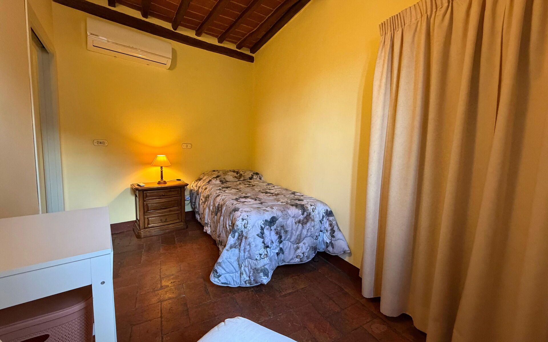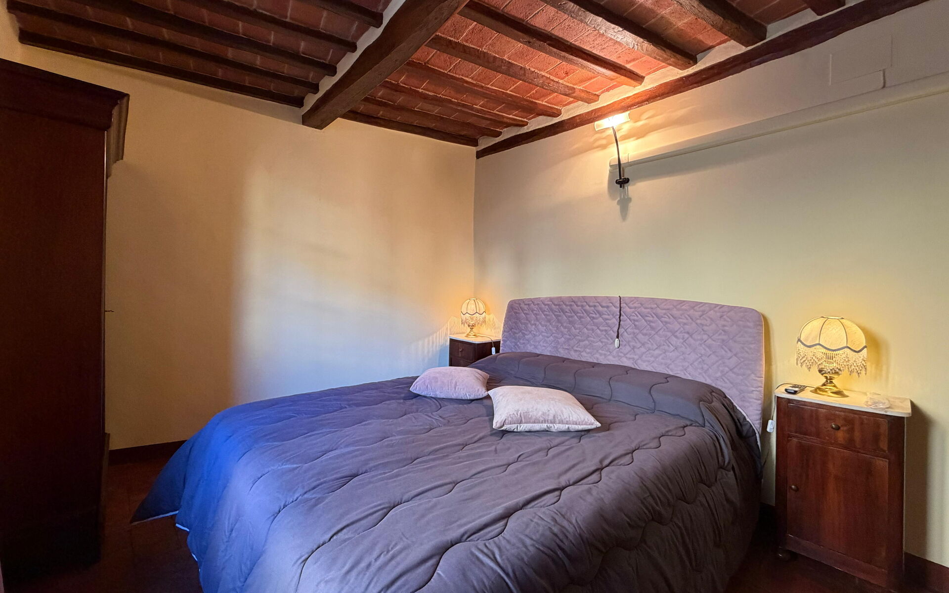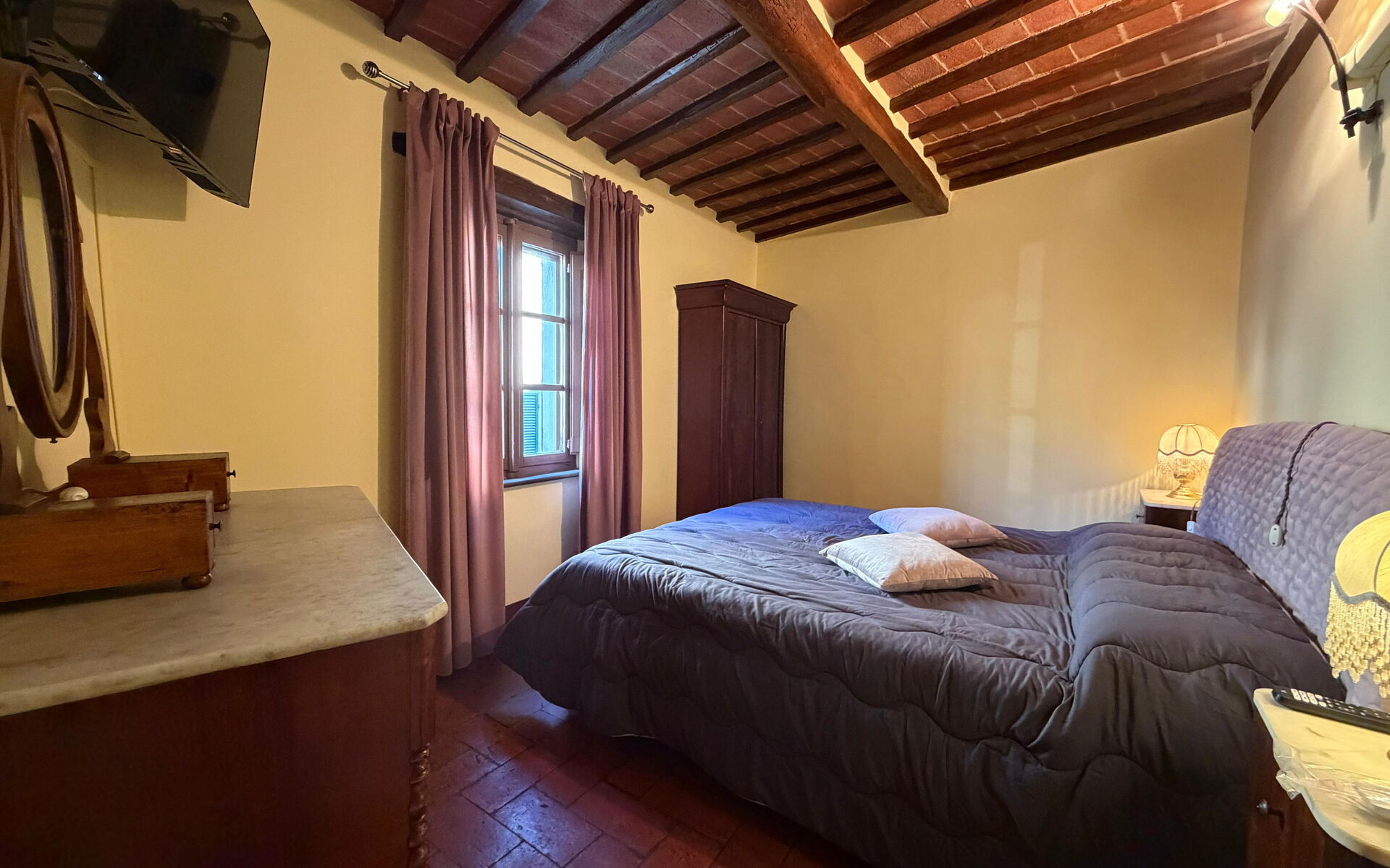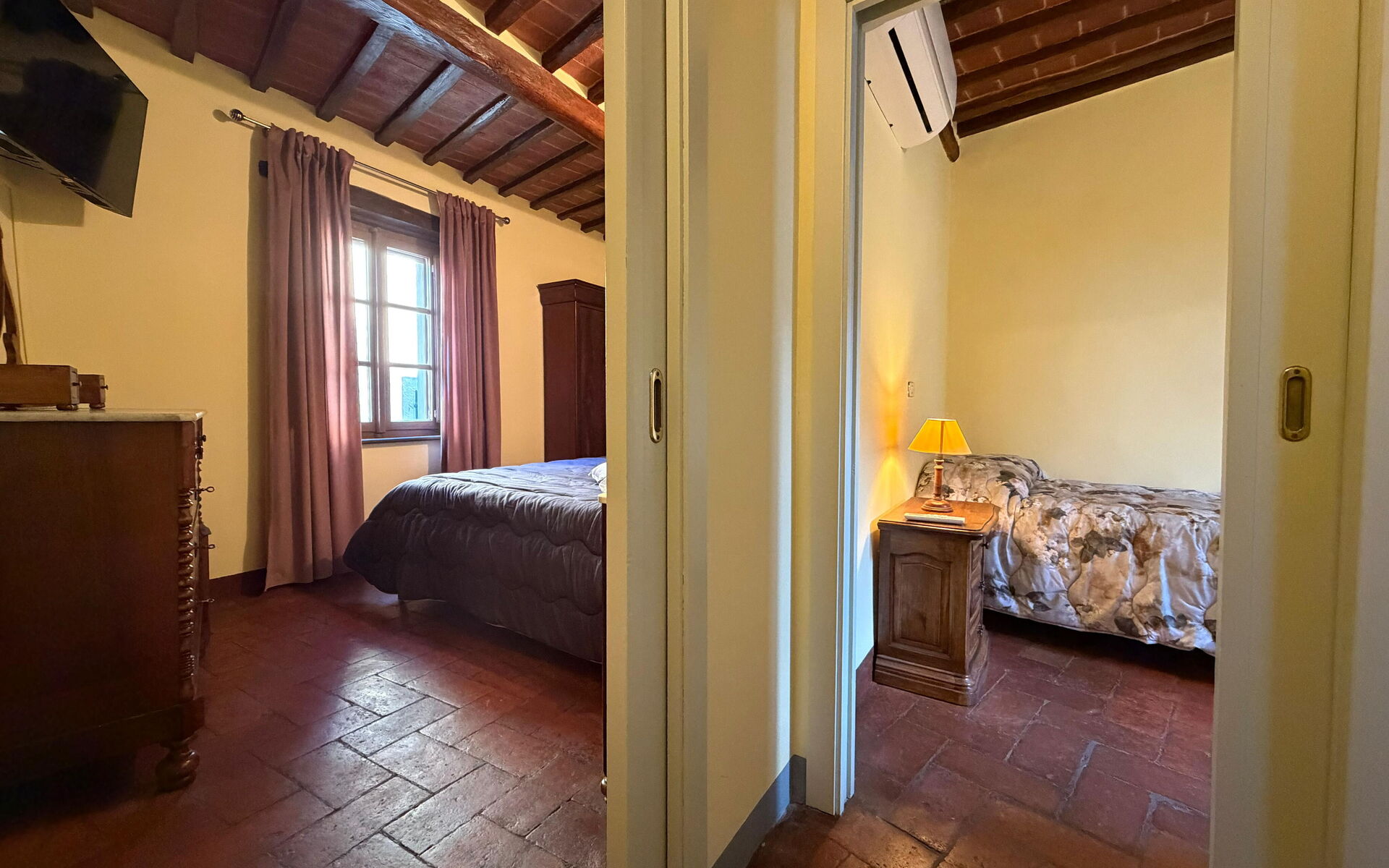 On the first floor there is a fully equipped kitchen with all the necessary utensils, appliances and stove to prepare your favorite dishes. The kitchen is separated from the large living room by sliding doors. In the living room there is a comfortable sofa bed and a small terrace with a pleasant panoramic view that gives you a particular point of view of Cortona.