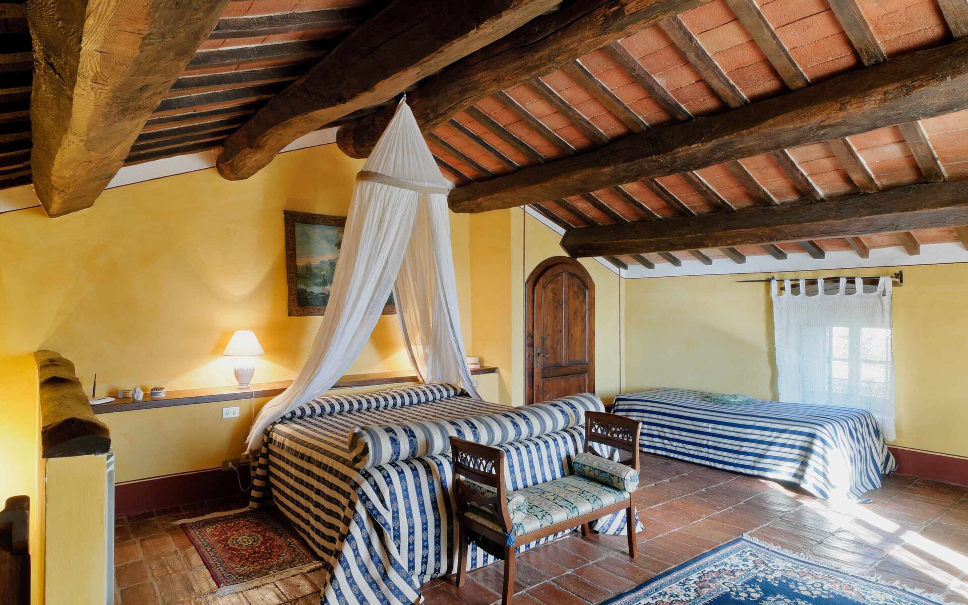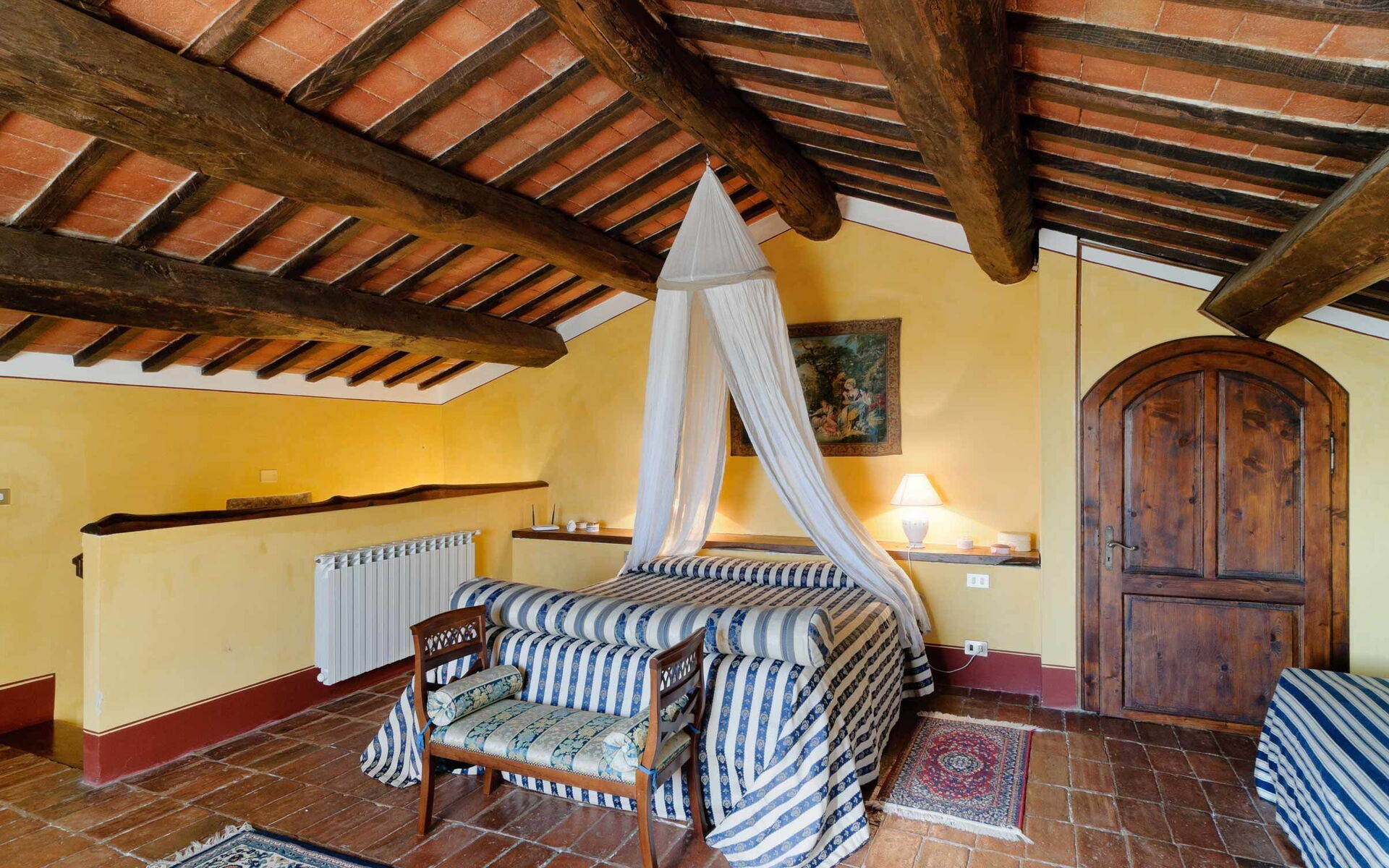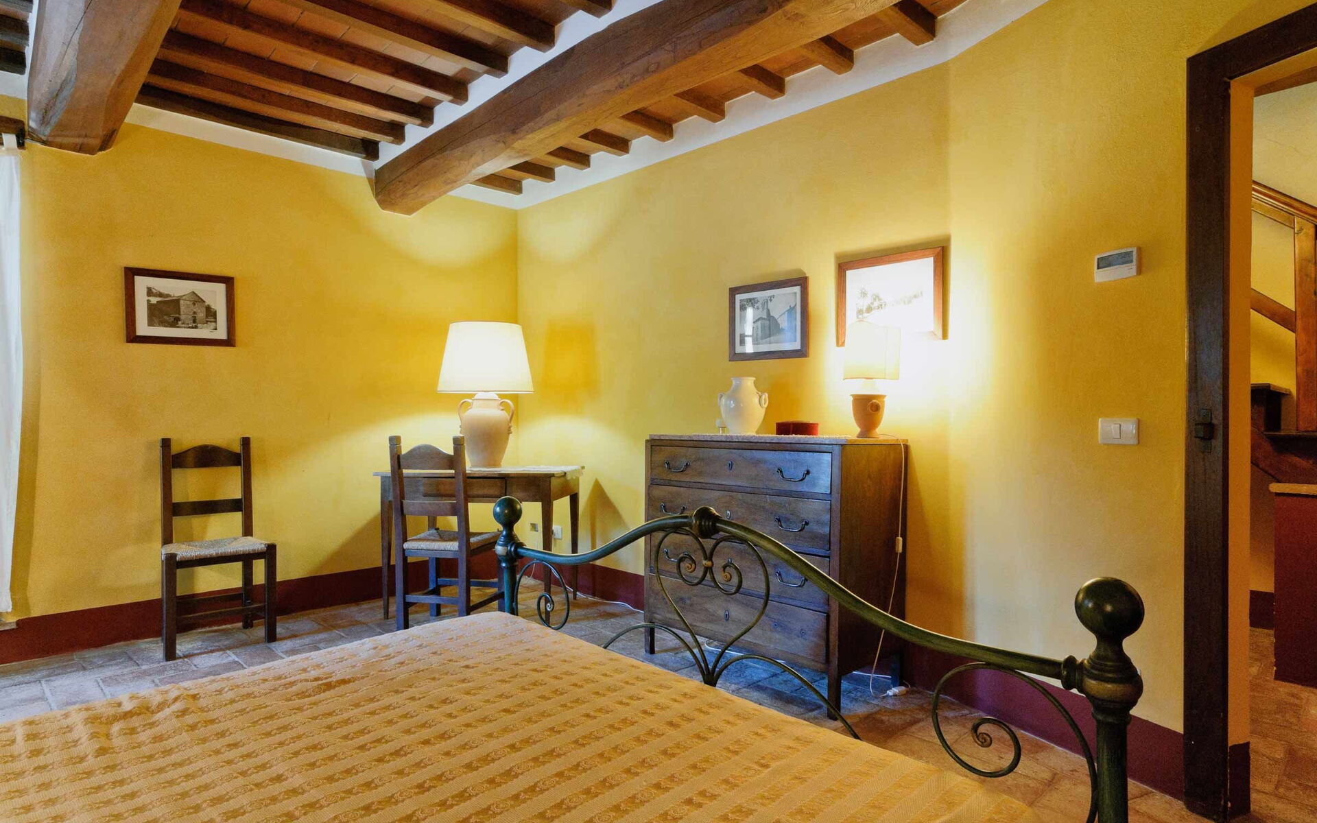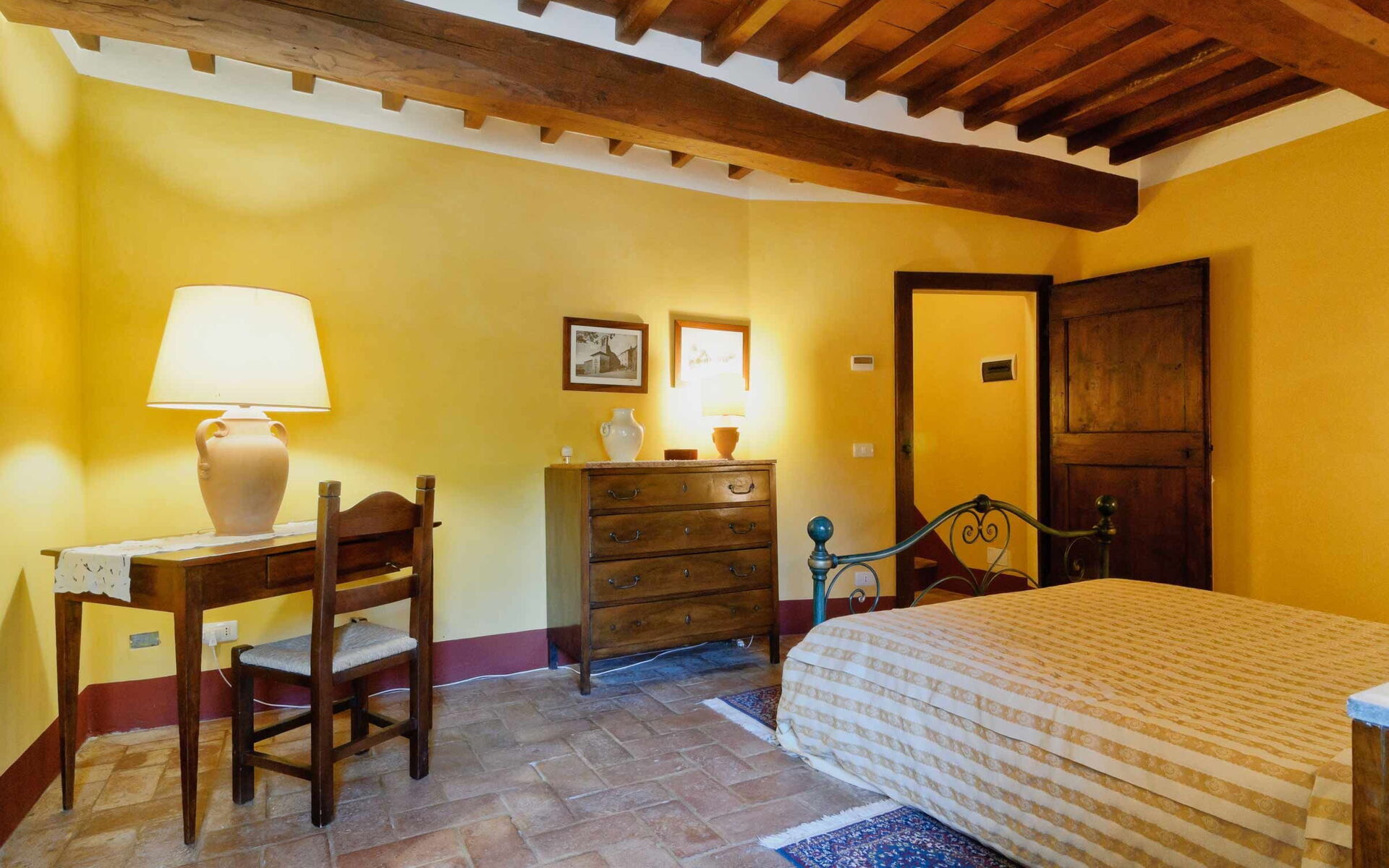 Vom Wohnzimmer aus, über eine schöne Holztreppe haben Sie Zugang zum oberen Doppelzimmer, das größte und schönste des Hauses, mit kleiner Sitzecke/Schreibtisch und einem Einzelbett, und das untere Doppelzimmer im Erdgeschoss, auch durch einen direkten Zugang zum Garten im Erdgeschoss und mit Badezimmer charakterisiert.