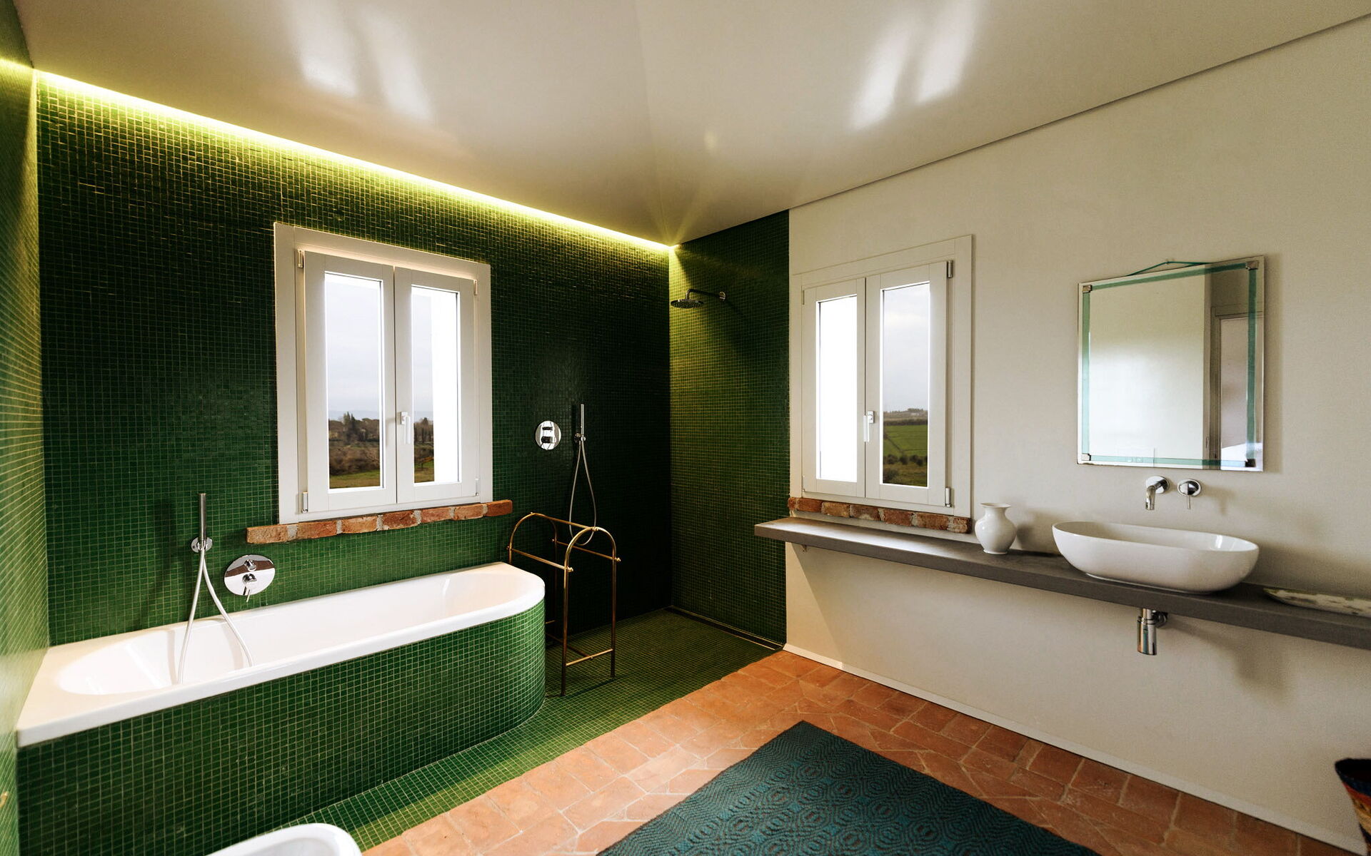 Villa Dedalo is a beautifully renovated property that combines the authentic charm of traditional Tuscan villas with elegant contemporary design, creating a perfect balance between tradition and modern comfort. The villa is arranged over two floors and can accommodate up to 14 guests, offering 7 bedrooms and 7 bathrooms. Wi-Fi Internet access is available throughout the property, and all bedrooms are equipped with air conditioning and mosquito screens. On the ground floor, guests are welcomed into a large and bright open-plan living area featuring several distinct spaces: an elegant living room with sofas, TV and library, a dining room with a table seating 14 guests, and a spacious, fully equipped professional kitchen. The same level also includes a second lounge area designed for relaxation and an additional functional kitchen. The ground floor sleeping area consists of four double bedrooms and three bathrooms with showers. The first floor, accessible via two staircases, features a cozy sitting room with a sofa and desk, ideal as a reading or working area. This level offers three double bedrooms, all tastefully furnished, and four bathrooms, some of which are en suite, equipped with both showers and bathtubs, ensuring comfort and privacy for all guests.