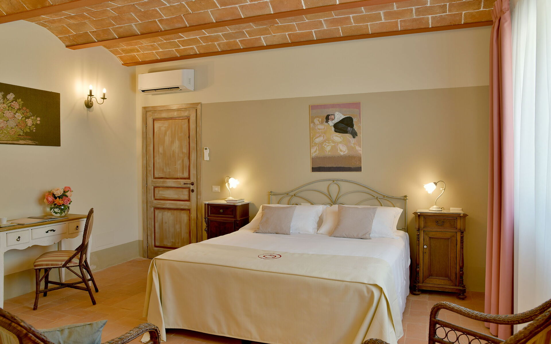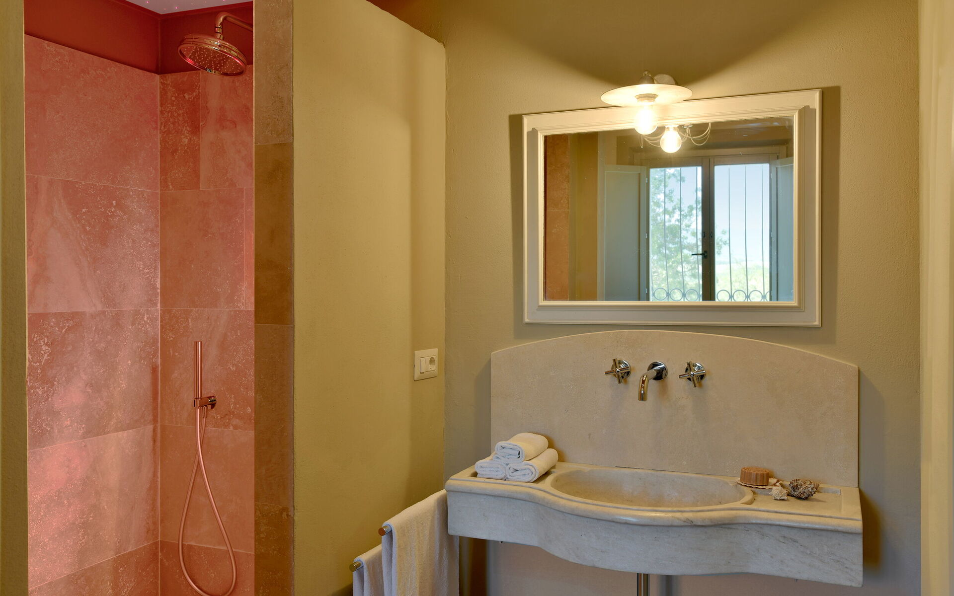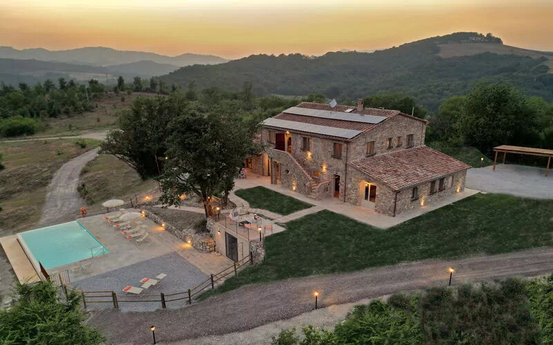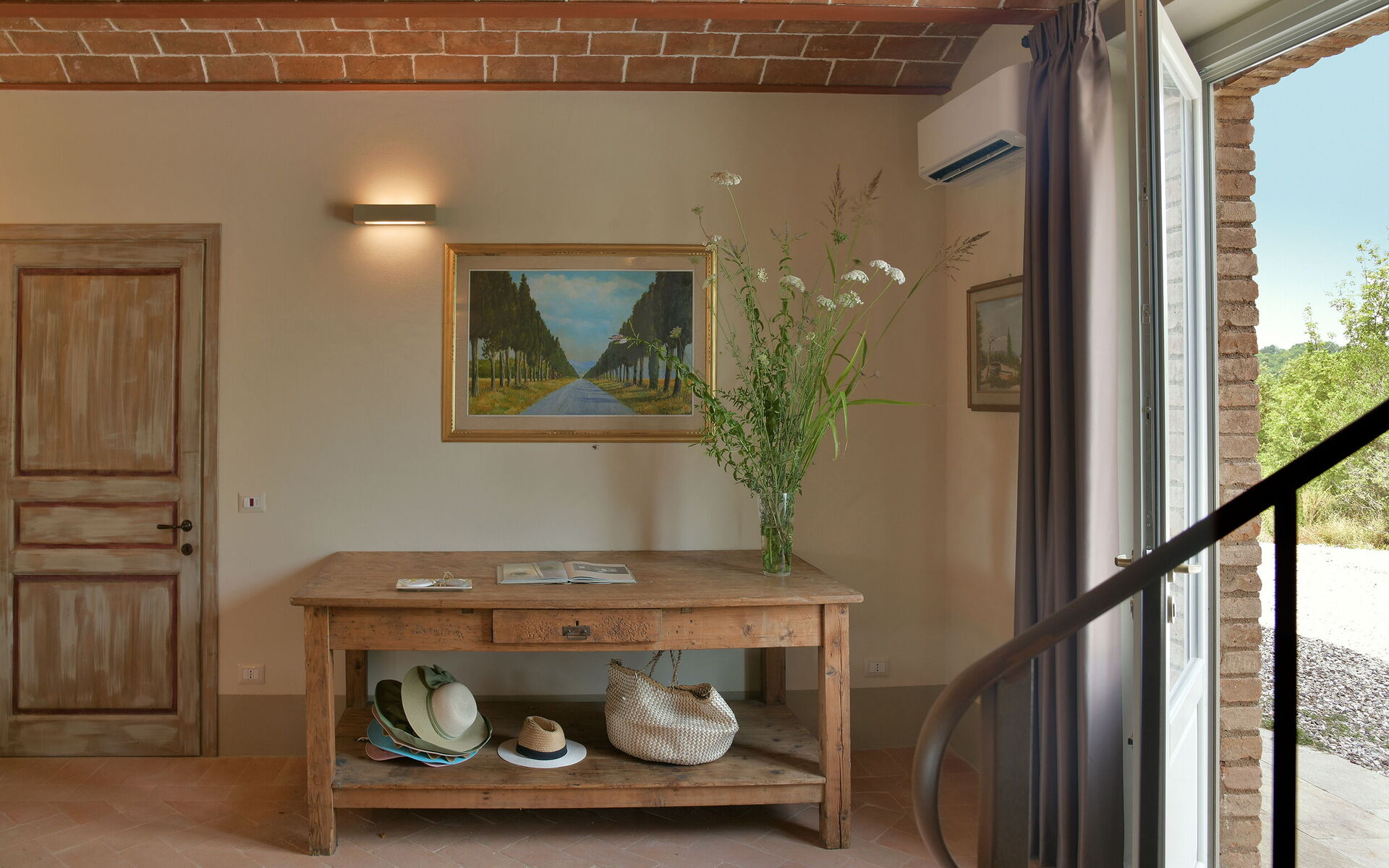 Villa il Noccioleto can easily host up to 12 guests, and it spreads on two levels. On the ground floor, the villa opens into a wide dining room provided with dining table with chairs. On the right of the dining room, there is the living room composed by three sofas, a beautiful fireplace and tv. Going further the dining room, you have the access to the kitchen, fully equipped and provided with: stove, fridge and freezer, toaster, blender, oven, Espresso coffee machine, dishwasher. The ground floor is completed by three double bedrooms with en-suite bathroom and a toilet. Going up through a stair that internally links the two levels, you access to the first floor where there is, a living room composed by a sofa-bed, another sofa and a tv, two double bedrooms both with en-suite bathroom, and a bedroom with single beds with en-suite bathroom.
