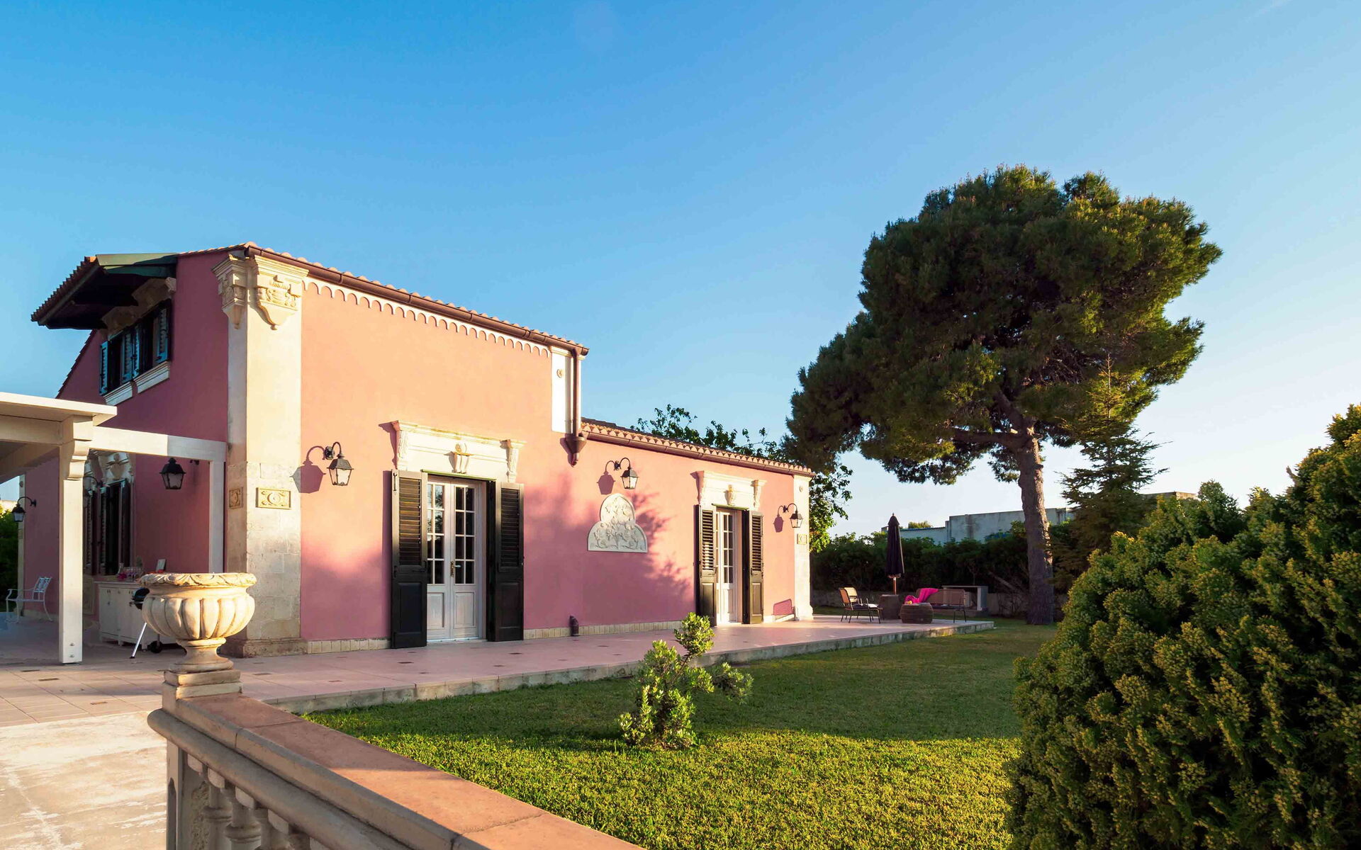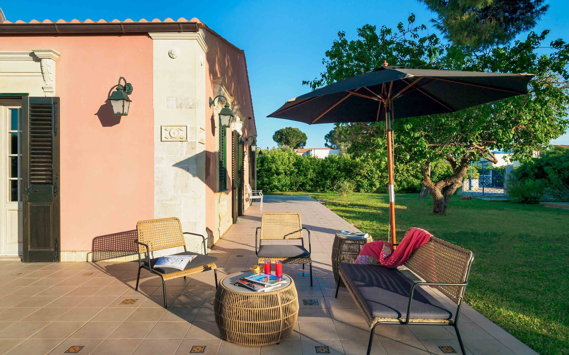 Villa Gira Sole è una meravigliosa proprietà situata vicino alla splendida spiaggia di sabbia di Fontane Bianche, una località balneare a sud di Siracusa. La villa è il posto perfetto dove trascorrere una vacanza all’insegna del relax, godendosi il sole e il mare di questa meravigliosa terra, ma allo stesso tempo è un punto di partenza ideale per andare alla scoperta delle bellezze che la Sicilia può offrire ai suoi visitatori. Infatti, la villa può essere utilizzata come base per raggiungere facilmente le più belle località della Sicilia orientale, come Siracusa, Noto, Modica, Ragusa Ibla, Scicli, la riserva naturale di Vendicari ed i borghi marinari di Portopalo e Marzamemi, ma anche Taormina e il Parco dell’Etna. Ciò che rende la villa unica è la sua posizione vicino al mare, infatti potrete raggiungere comodamente a piedi sia la spiaggia che il mare con gli scogli. Gira Sole è immersa all’interno di un bellissimo e rigoglioso giardino, ricco di molte varietà di piante locali. Nel giardino si trova la splendida piscina (3,70 x 9,50, profondità min 1,40 - max 1,40), perfettamente esposta al sole, dotata di sdraio, ombrellone e doccia esterna, perfetta per rinfrescarsi durante le più calde giornate estive. Vicino alla piscina si trova la pratica e comoda zona barbecue, completa di tavolo da pranzo con sedie e gazebo, dove potrete cucinare e gustare i vostri piatti preferiti all’aria aperta in compagnia dei vostri amici o della vostra famiglia.