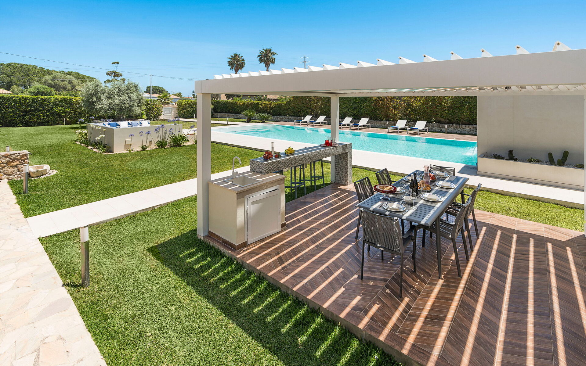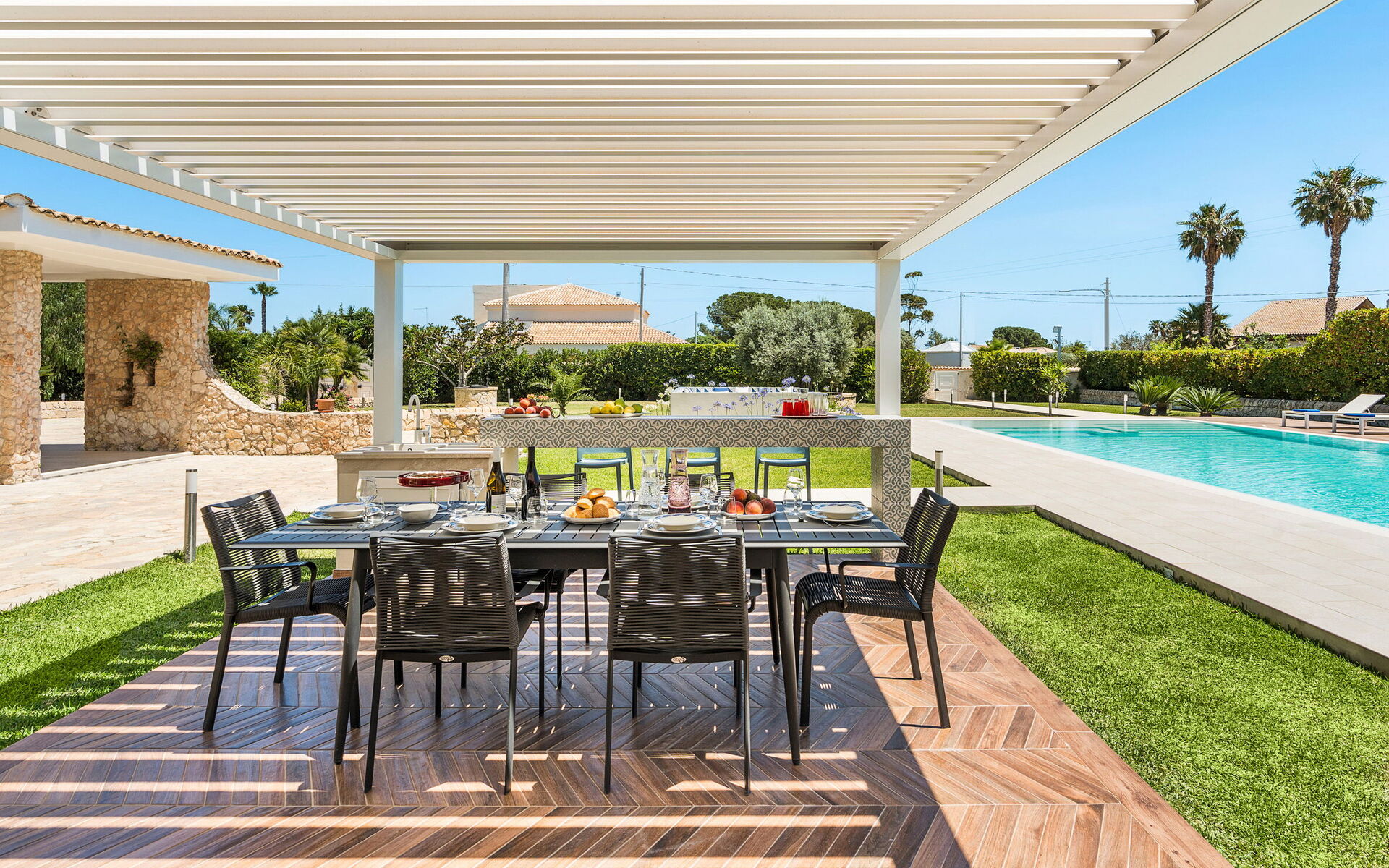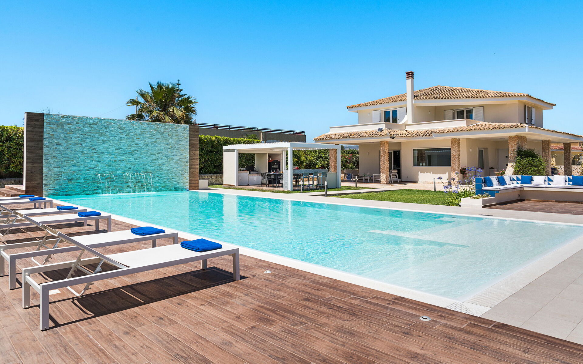 Esclusiva villa con piscina privata a Fontane Bianche, una delle più rinomate località balneari della costa sud-orientale della Sicilia. Recentemente rinnovata, questa elegante proprietà è immersa in un magnifico giardino con aree ombreggiate e una spettacolare piscina a sfioro dotata di cascata e zona idromassaggio. Situata in un tranquillo quartiere residenziale, Villa Diletta si trova a soli 600 metri dalla scogliera e dal mare e a 1.200 metri dalla spiaggia di sabbia. È la soluzione perfetta per famiglie o piccoli gruppi di amici in cerca di una residenza confortevole e strategica, ideale per raggiungere in pochi minuti Siracusa, le splendide città barocche del Val di Noto, la riserva di Vendicari e i caratteristici borghi marinari di Marzamemi e Portopalo di Capo Passero.