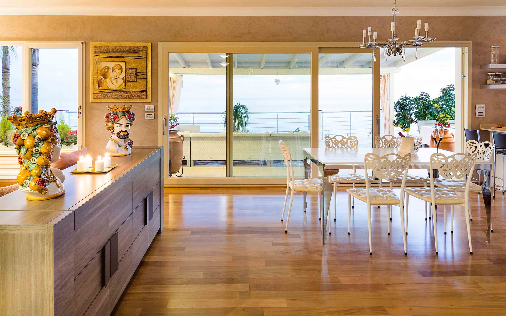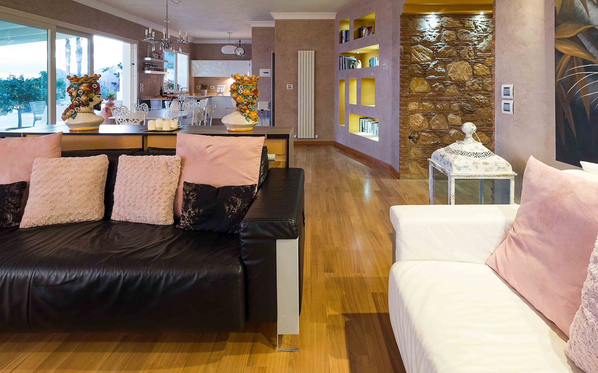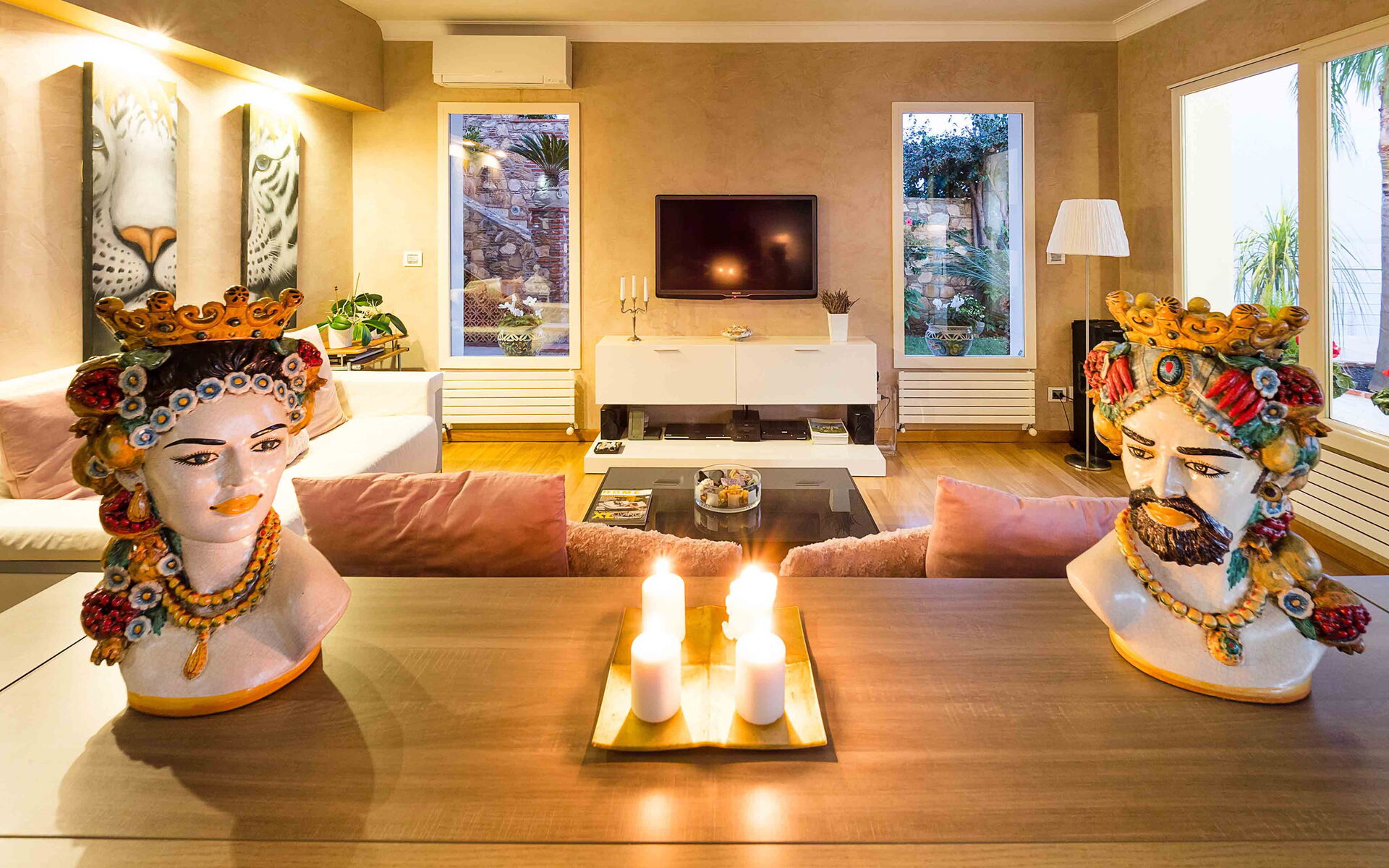 Villa Luce può ospitare comodamente fino a 7 ospiti e si sviluppa su due livelli. La villa, raffinata ed elegante, offre degli ambienti interni accoglienti, pensati e progettati per donare agli ospiti il massimo del comfort. Dalla veranda si accede, tramite una bellissima e luminosa vetrata, al soggiorno, dove troviamo la cucina, completamente equipaggiata e dotata di: frigo e freezer, forno, forno microonde, piano cottura, bollitore, lavastoviglie, macchina per caffè espresso, mixer e piastra elettrica. Al piano terra troviamo inoltre una camera da letto matrimoniale, una camera con letto alla francese, una camera singola ed un bagno completo di doccia. Attraverso una scala a chiocciola, che collega internamente i due livelli si accede al primo piano, dove si trova un’ultima camera matrimoniale ed un bagno completo di vasca e doccia.