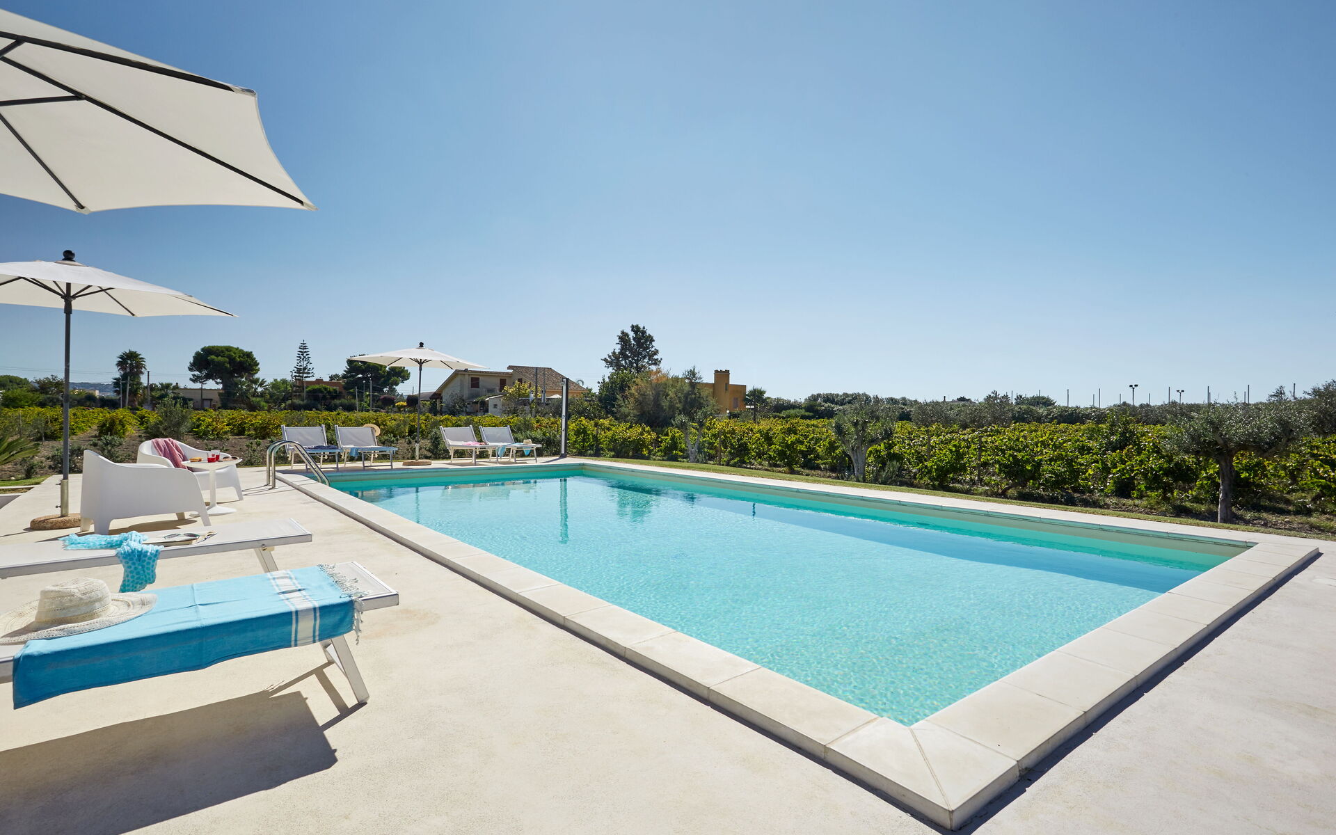 Tenuta della Vigna è una splendida villa con piscina privata, circondata da un rigoglioso vigneto, situata poco fuori la città di Marsala. La struttura è il luogo perfetto per chi vuole trascorrere una vacanza all’insegna del relax, ma anche per chi vuole utilizzarla come base per scoprire tutte le bellezze che la zona circostante può offrire. Infatti dalla proprietà si possono facilmente raggiungere alcune delle più celebri località della Sicilia occidentale come la famosa città di Marsala, con il suo centro storico ben conservato e l’architettura affascinante, la vicina spiaggia di San Teodoro, la Baia Cornino e San Giuliano, la sabbiosa spiaggia di San Vito lo Capo e la famosa Tonnara di Scopello, utilizzata come setting in alcuni film di Hollywood. Tenuta della Vigna è inserita all’interno di un meraviglioso e curato giardino, ricco di molte varietà di piante autoctone della zona, come il bellissimo vigneto che lo caratterizza. Di fronte alla villa si trova la splendida piscina (dimensioni 10mt x 5mt), perfettamente esposta al sole e completa di sdraio, ombrelloni e doccia esterna. All’esterno della villa vi è anche un’elegante veranda composta da un salottino, perfetto per rilassarsi in compagnia di un buon libro dopo una lunga giornata ed una comoda e pratica zona barbecue, perfetta per cucinare i vostri piatti preferiti. Completa l'esterno la zona pranzo, dotata di tavolo e sedie.