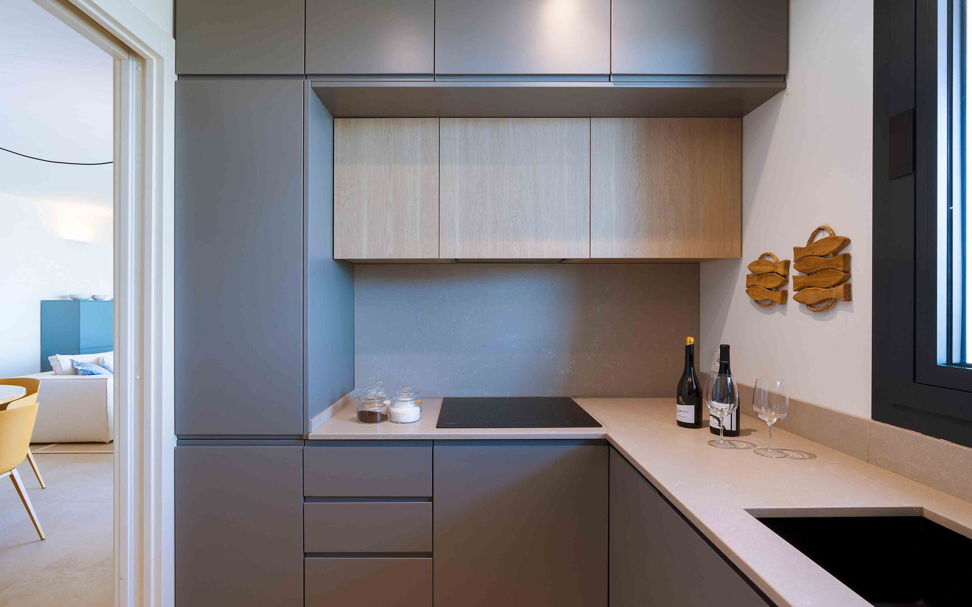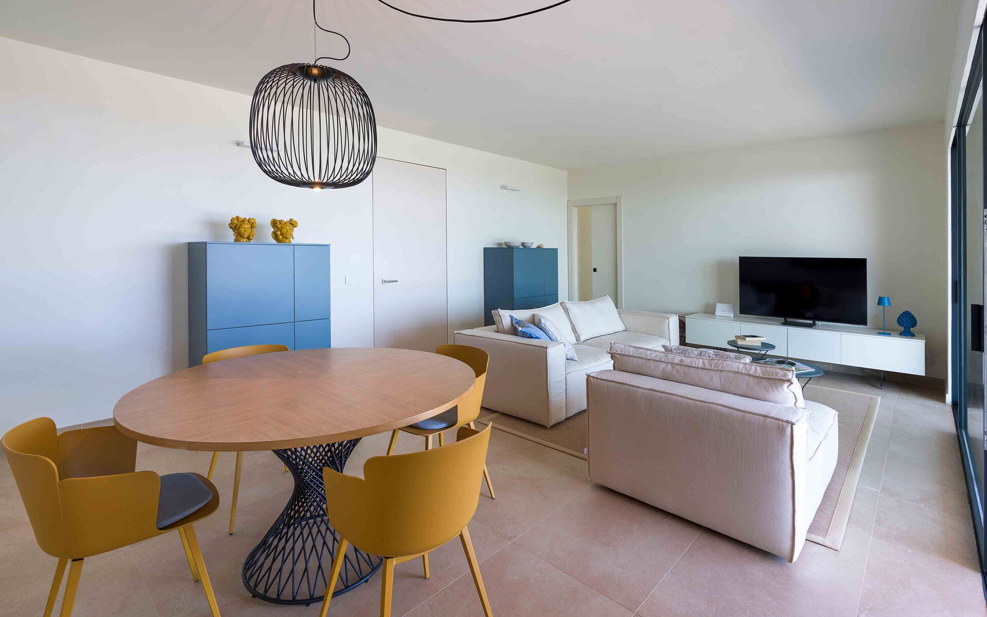 - Soggiorno-cucina dotato di: divano, poltrona, TV, tavolo da pranzo e sedie, bollitore, forno, frigo e freezer, frullatore, piano cottura induzione, lavastoviglie, macchina caffè americano, macchina caffè Nespresso, macchina del ghiaccio e tostapane.