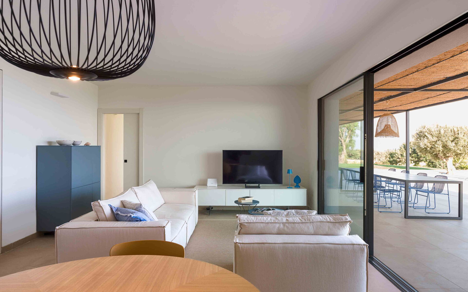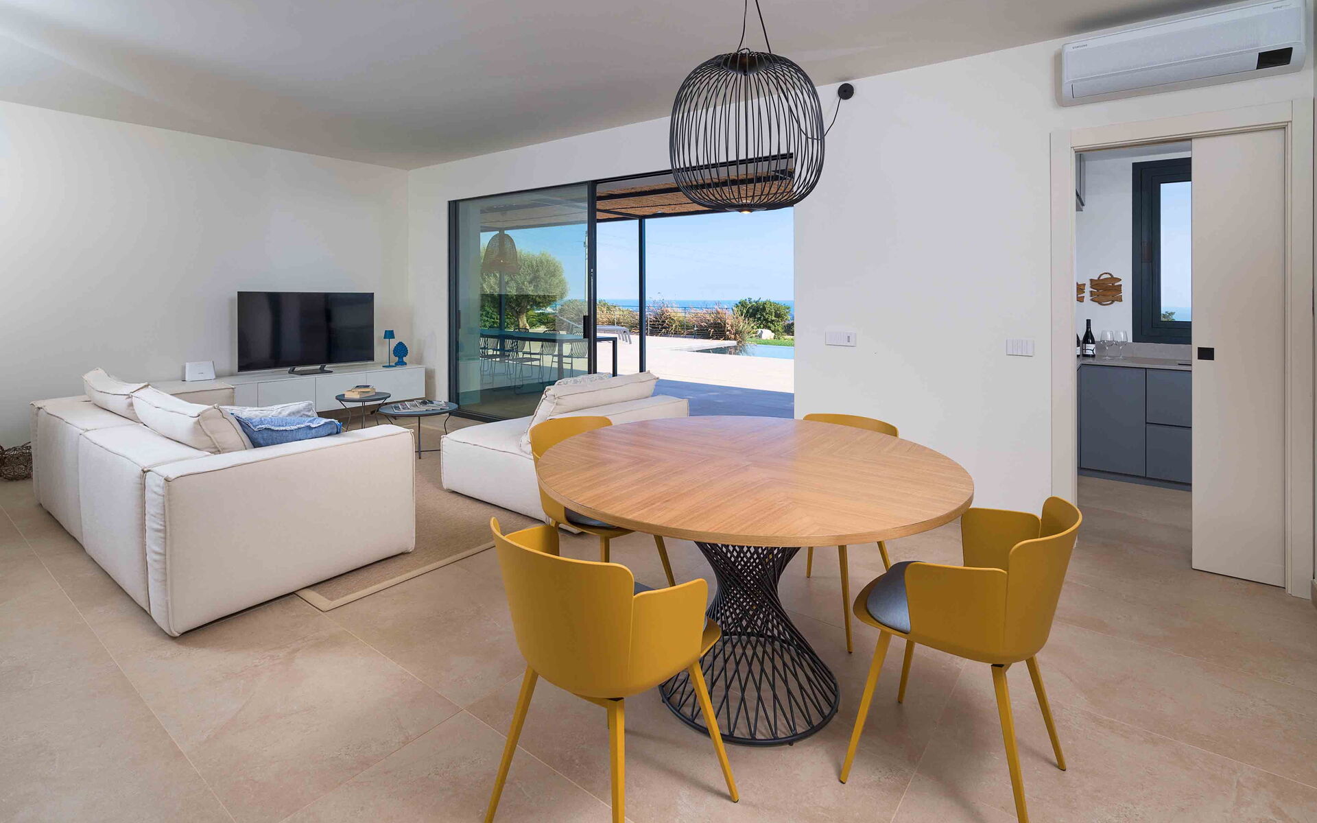 Villa Passo Salina può ospitare comodamente fino a 8 ospiti, si sviluppa in un solo livello, ed è composta da un’unità principale, che può ospitare 6 ospiti, e da una dependance, che può ospitare ulteriori 2 ospiti. La struttura principale si apre su un ampio soggiorno completo di divano, poltrona, TV e tavolo da pranzo con sedie, che, grazie alle luminose vetrate, vi regalerà una bellissima vista sugli esterni circostanti. Dal soggiorno si accede alla cucina, completamente equipaggiata e completa di: bollitore, forno, frigo e freezer, frullatore, piano cottura induzione, lavastoviglie, macchina caffè americano, macchina caffè Nespresso, macchina del ghiaccio e tostapane. Completano il primo piano: due camere matrimoniali entrambe dotate di bagno en-suite completo di doccia, una camera doppia e un bagno completo di doccia. Oltre all’unità principale troviamo la dependance che dispone di un soggiorno con angolo cottura, una camera matrimoniale e un bagno completo di doccia.