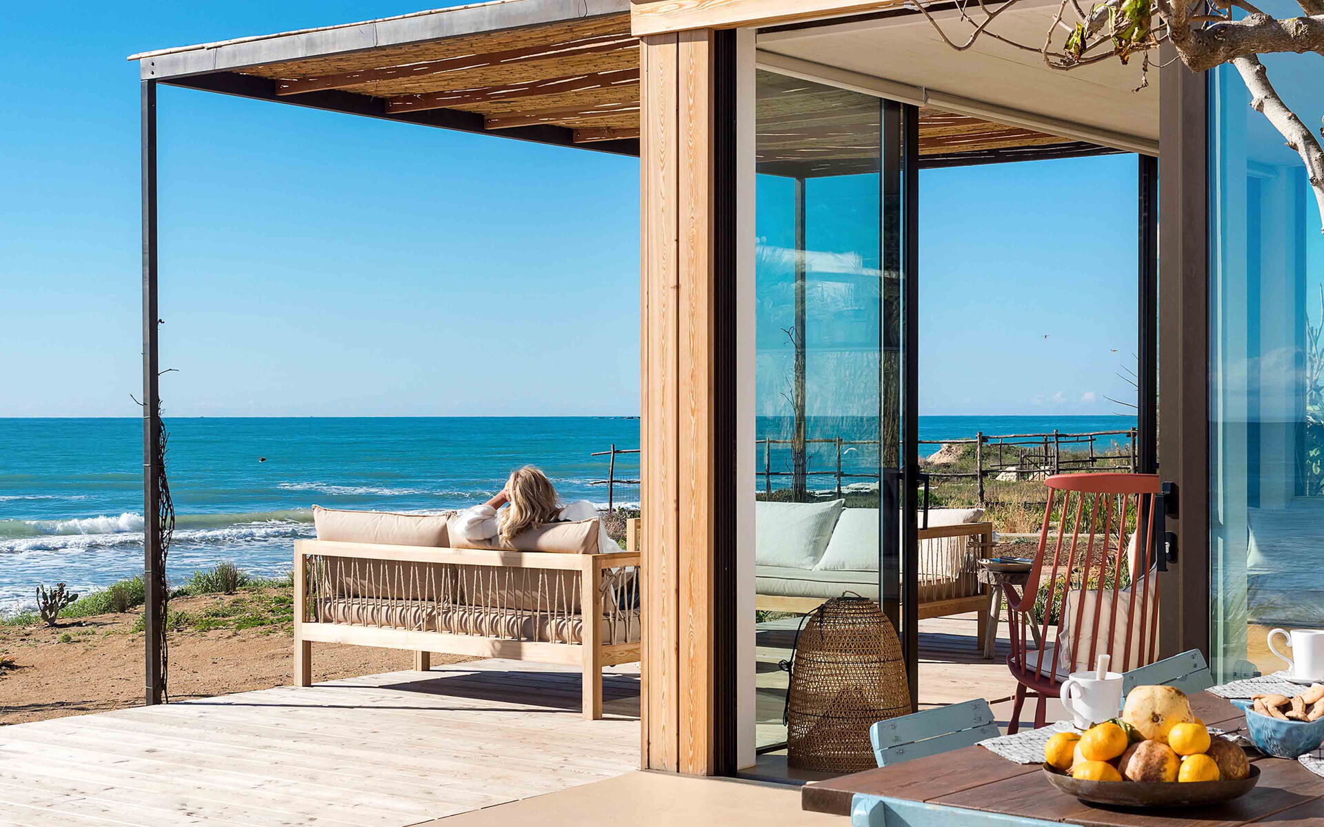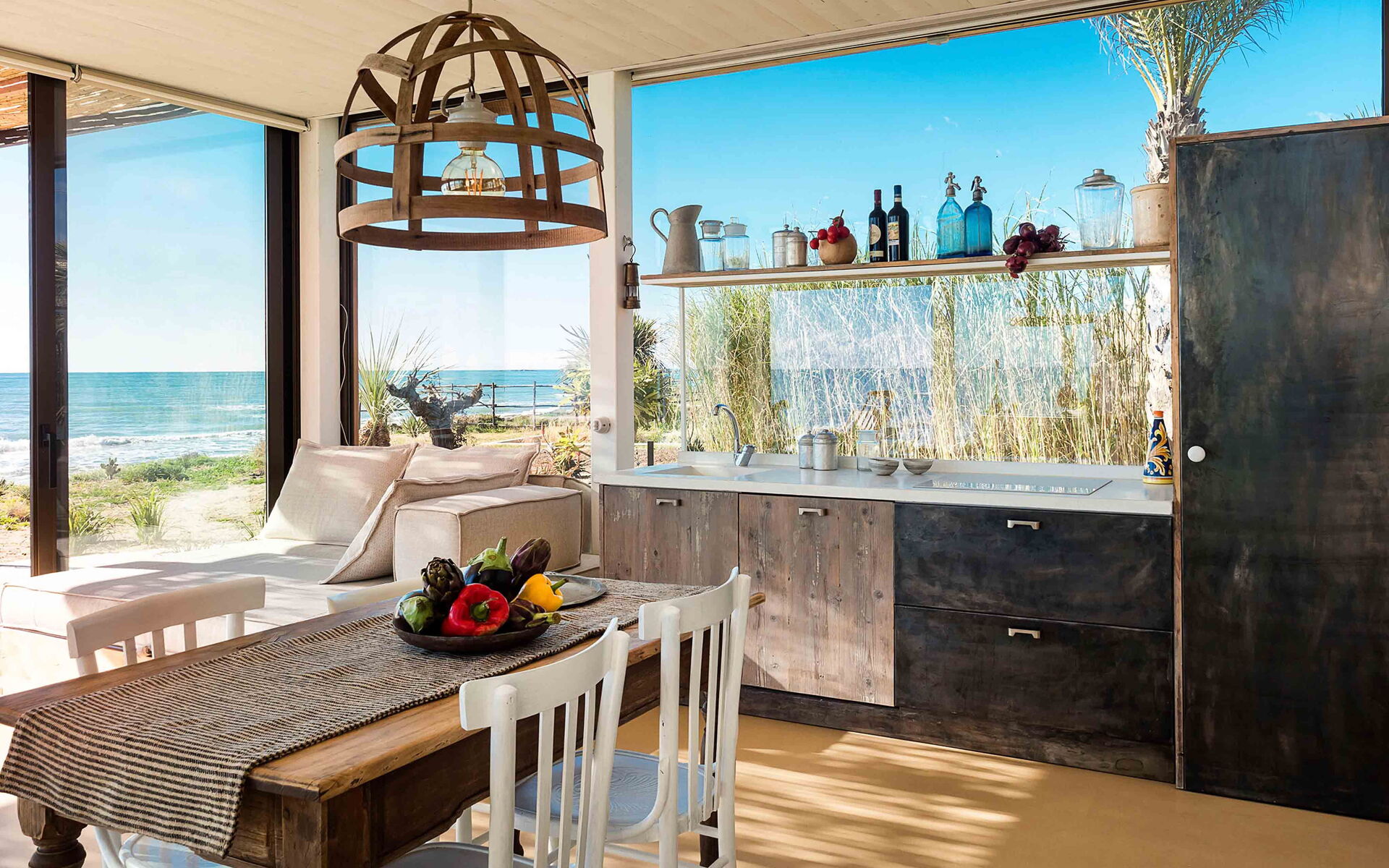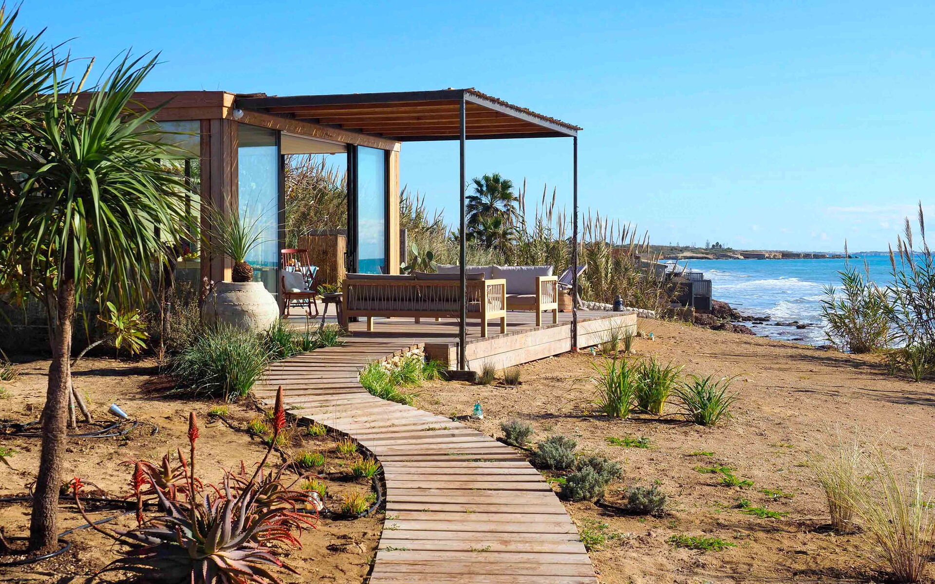 Dimora di Circe è una straordinaria villa situata lungo la strada che da Pozzallo conduce a Pachino. Ciò che la rende così spettacolare e unica è la sua magnifica posizione: si trova direttamente sulla spiaggia, ed è perfetta per chi è alla ricerca di una vacanza pieds dans l’eau. Dimora di Circe può essere utilizzata anche come base per scoprire le bellezze artistiche e culturali che questa meravigliosa terra può offrire. Infatti, dalla villa, sono facilmente raggiungibili luoghi come la riserva naturale di Vendicari, la Cava d’Ispica, i caratteristici borghi marinari di Marzamemi, Portopalo e Donnalucata, le suggestive cittadine barocche di Modica, Scicli, Ragusa Ibla, Noto e Siracusa fino al vulcano Etna e Taormina. La struttura è stata recentemente e sapientemente ristrutturata, combinando materiali provenienti dall’artigianato locale con il riutilizzo di pezzi autentici d’antiquariato. La villa è inserita all’interno di un bellissimo giardino ricco di piante autoctone e spontanee che crescono in questa zona, ed ospita un’esclusiva vasca piscina (3,00 mt x 2,00 mt – profondità min 0,30 mt - max 0,60 mt), perfettamente esposta al sole e perfetta per rinfrescarsi durante le più calde giornate estive. Dimora di Circe dispone di terrazze ampie e panoramiche, complete di divanetti, che consentiranno agli ospiti di avere un contatto unico con il mare.
