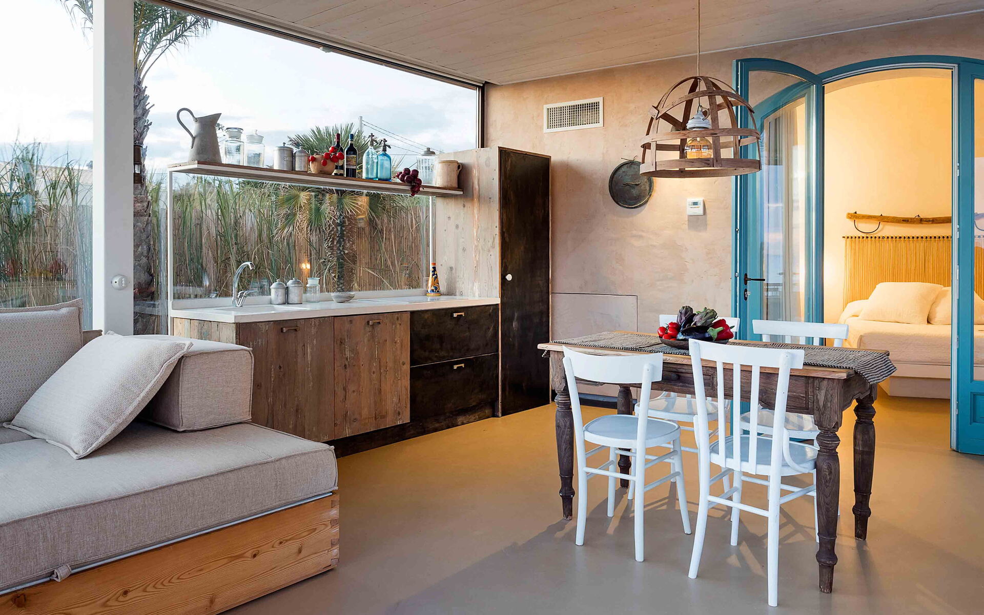 Dimora di Circe può comodamente ospitare fino a 4 ospiti e si sviluppa su un unico livello. La villa si apre su un ampio e luminoso soggiorno, caratterizzato da grandi vetrate da cui potrete direttamente ammirare il mare mentre consumate i vostri piatti preferiti, oppure un buon bicchiere di vino durante le calde serate estive siciliane. Il soggiorno-cucina è dotato di un comodo divano, un tavolo da pranzo e un angolo cottura, completamente attrezzato e dotato di: freezer, frigorifero, frullatore, fuochi elettrici, lavastoviglie, macchina per il caffè espresso, forno microonde e un tostapane. Proseguendo oltre il soggiorno, si accede alla prima camera matrimoniale, che dispone di un bagno en-suite dotato di doccia. La seconda camera da letto matrimoniale presenta anche l’accesso dall’esterno ed un bagno en-suite completo di doccia.