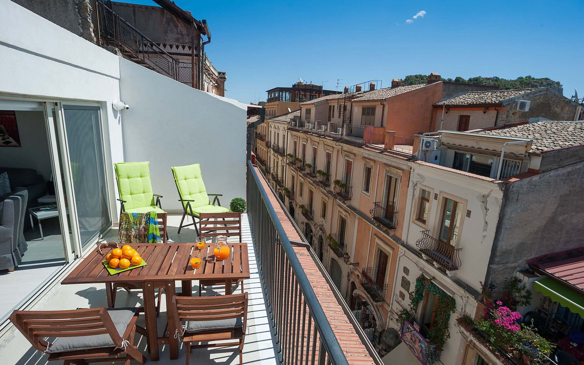 Taormina Suite è uno splendido appartamento situato nel centro di Taormina, famosa cittadina siciliana conosciuta in tutto il mondo per le sue bellezze archeologiche ed il suo mare cristallino. La struttura si trova al terzo piano di un palazzo storico della città, a pochi passi da Corso Umberto. La proprietà è il luogo ideale sia per chi è alla ricerca di una vacanza all’insegna del relax, ma anche per chi vuole esplorare la meravigliosa Sicilia. La sua posizione centralissima è strategica e consente ai suoi ospiti di immergersi nella suggestiva atmosfera della città con i suoi vicoli caratteristici, i suoi negozietti di artigianato, i caffè, ristoranti, le lussuose boutique, ma anche i suoi luoghi più celebri come Piazza IX aprile con la Torre dell’Orologio, Palazzo Corvaja, Piazza Duomo, l’Odeon e il Teatro Greco, celebre palcoscenico di spettacoli ed eventi con artisti di fama internazionale. Inoltre l’appartamento può essere utilizzato come base per esplorare tutte le bellezze che la zona circostante può offrire si suoi visitatori. In pochi chilometri infatti potrete raggiungere alcuni degli scenari più belli sella Sicilia orientale come il Parco dell’Etna, le Gole dell’Alcantara, i caratteristici borghi marinari di Aci Trezza ed Aci Castello alla vivace Catania fino alla leggendaria Siracusa. Dalla proprietà inoltre, potrete raggiungere in pochi chilometri sia le meravigliose spiagge di sabbia, sia gli scogli, per godervi una bellissima vacanza al mare.