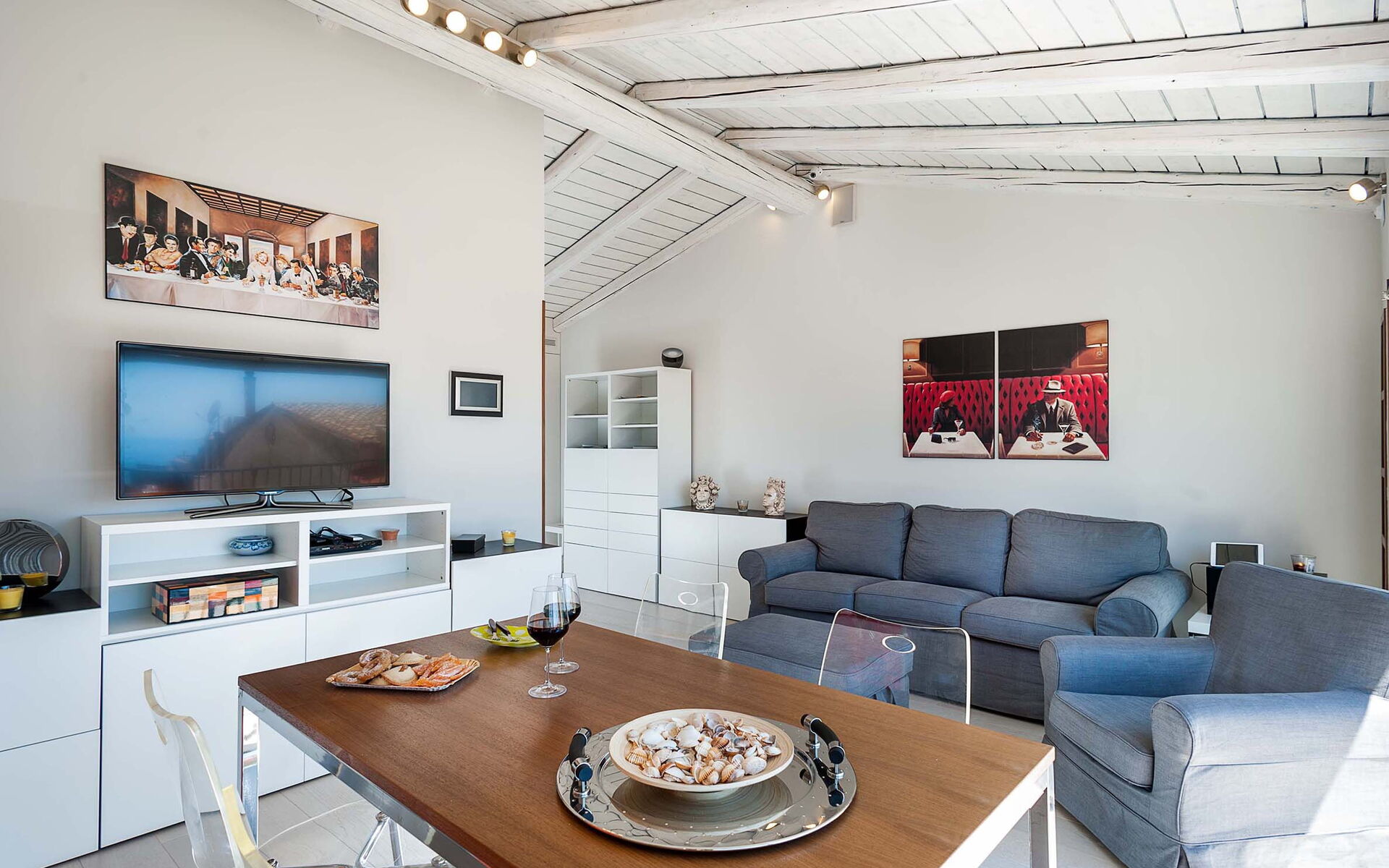 Aria condizionata, Cucina ben attrezzata, Divano, Forno, Freezer, Frigo, Internet WiFi, Lavastoviglie, Macchina da caffè (Italiana), Microonde, Piano Cottura, Tavolo da pranzo, Tostapane, TV Satellitare, Uscita sulla terrazza