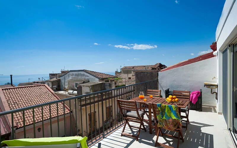 Struttura nel centro di Taormina a 4 km dalla spiaggia di sabbia e 5 km dagli scogli, cambio biancheria settimanale, terrazza con tavolo da pranzo esterno con sedie e sdraio, aria condizionata, riscaldamento, lavatrice, asciugatrice, ferro da stiro, divano, tavolo da pranzo, Tv, cucina completamente equipaggiata e completa di: frigorifero, freezer, macchinetta per caffè espresso, forno elettrico, forno microonde, fuochi elettrici, lavastoviglie e tostapane.