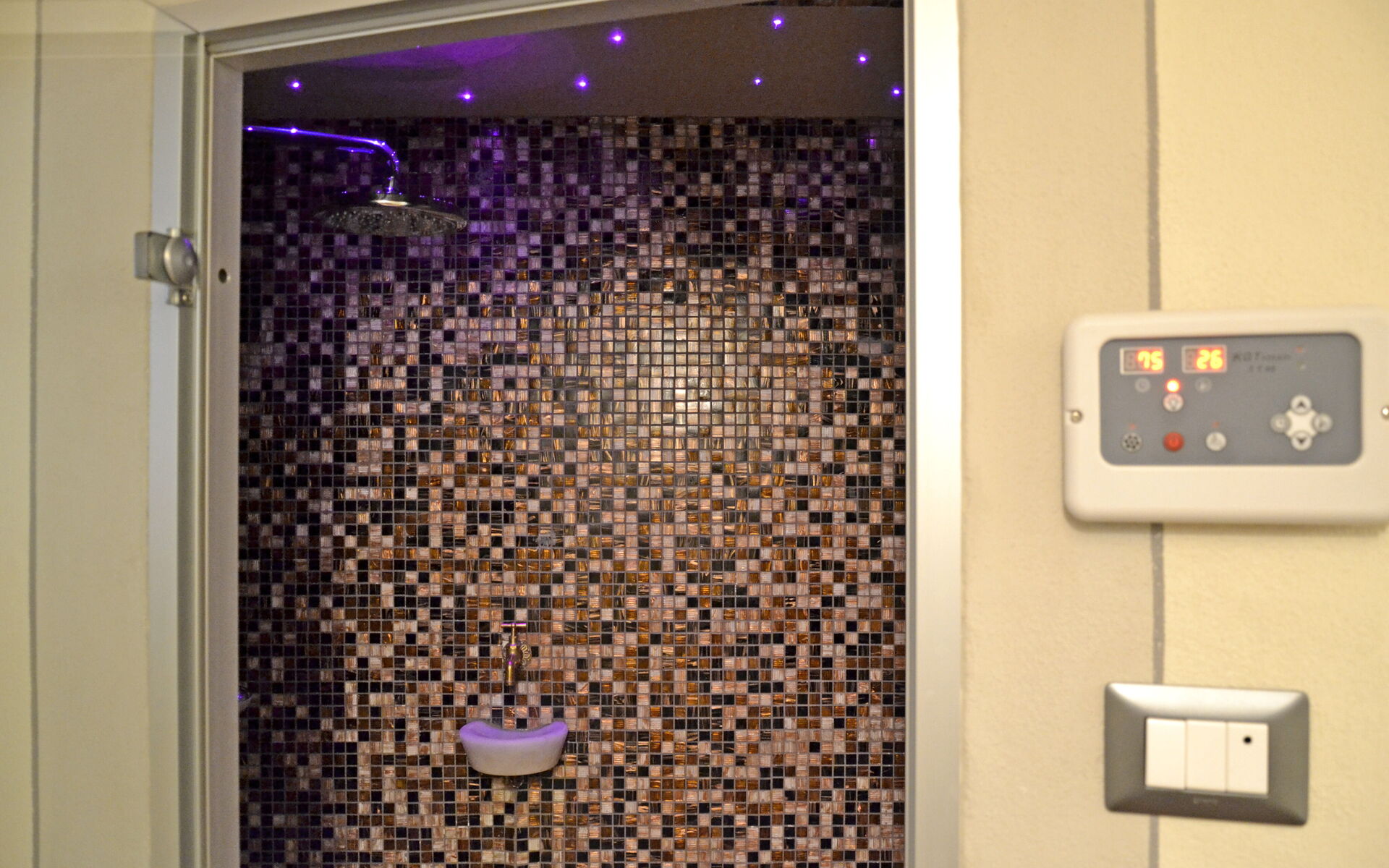 - un bagno completa di doccia con bagno turco, musica di sottofondo e cromoterapia