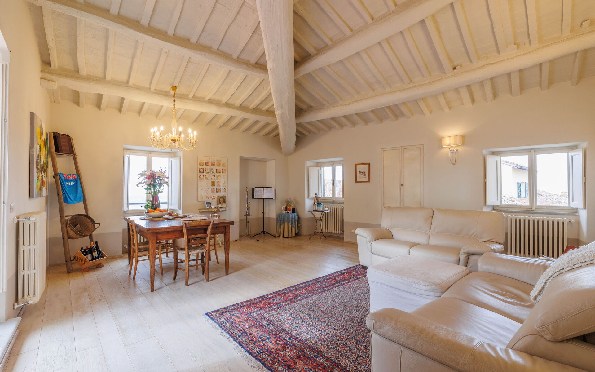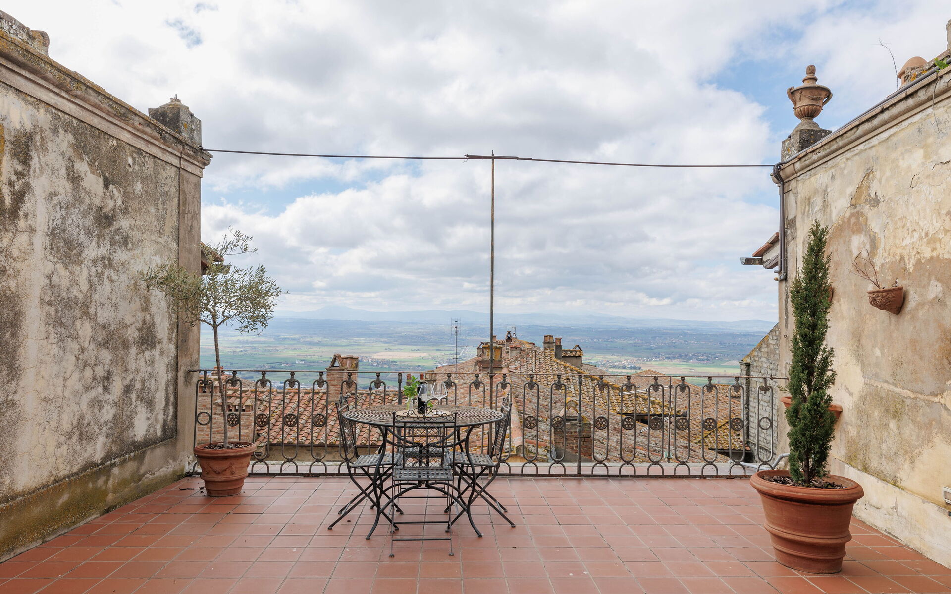 Caratteristica di rara bellezza è la grande terrazza con affaccio sia sulla città che sulla vallata circostante, terrazza che è completa di tavolo con sedie ed a cui potrete accedere sia dal soggiorno che dalla camera da letto. Uno dei momenti più magici è al tramonto: l'impagabile veduta dalla terrazza sarà uno degli highlight del vostro viaggio in Toscana, magari accompagnati da un buon bicchiere di vino locale.