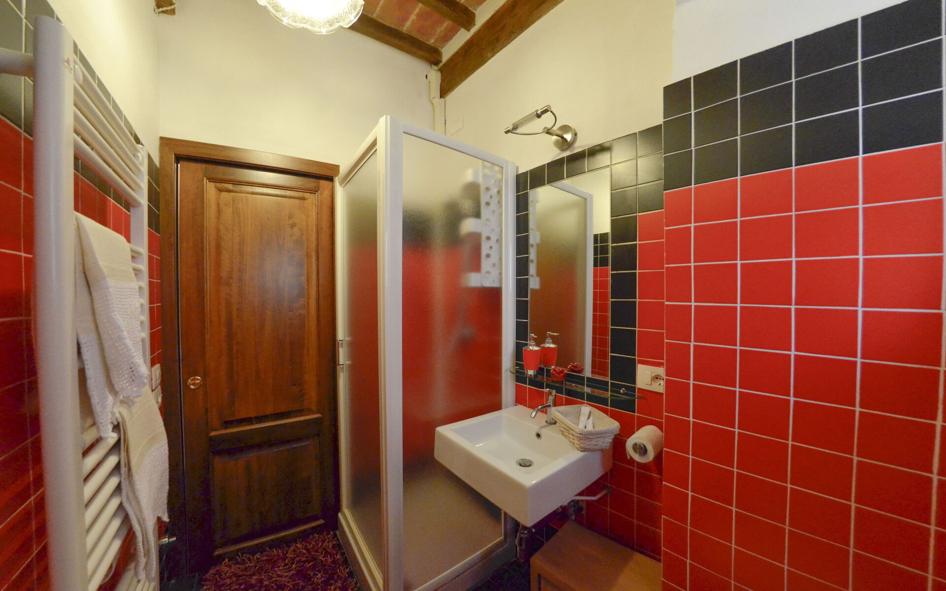L'appartamento il Teatro conserva il classico stile rustico toscano grazie al mantenimento ed al recupero dei vecchi pavimenti in cotto e dei soffitti con travi di legno a vista, abbinati ad arredi di grande pregio ed a rifiniture minuziose.