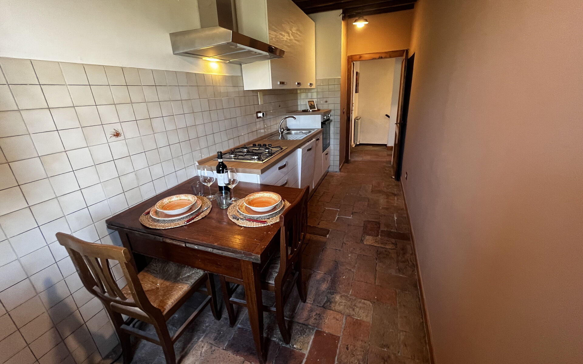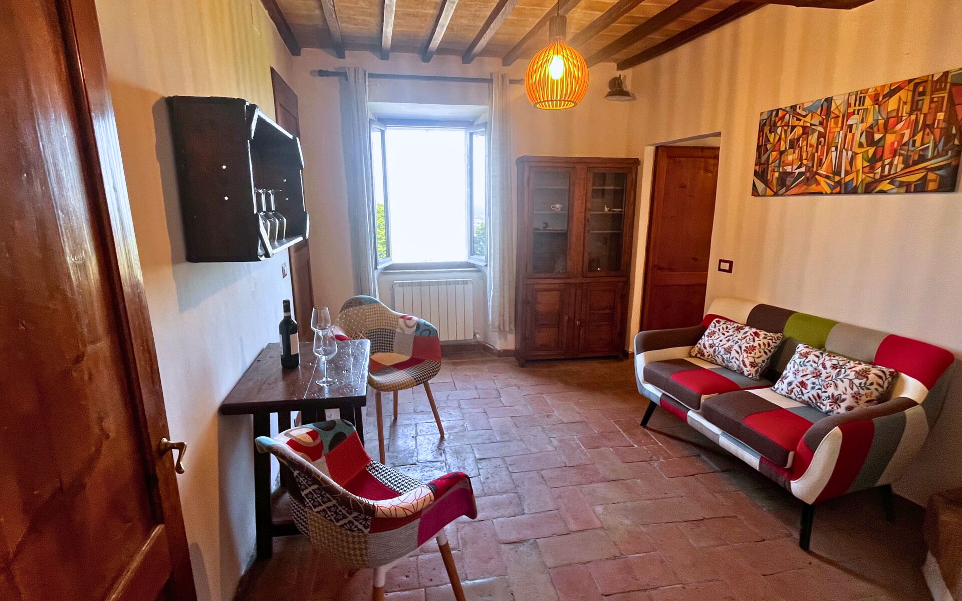 Appartamento Del Mercato si sviluppa su un unico livello e può ospitare comodamente fino a due ospiti. La struttura si apre su un’ampia scalinata che vi condurrà direttamente all’appartamento. Alla vostra destra troverete un bagno completo di doccia. Proseguendo oltre si accede alla cucina, completamente equipaggiata e dotata di: piano cottura, lavastoviglie, forno, tostapane, bollitore, macchina per caffè espresso, macchinetta con filtro per caffè americano, frigorifero e freezer. Dal piccolo pianerottolo si accede inoltre alla luminosa zona soggiorno, completa di divano, poltrona e caminetto. Ciò che rende unico l’appartamento è la vista mozzafiato su tutta la Val di Chiana sottostante che si apre dalle finestre dell’appartamento. Superando il soggiorno, si trova la camera matrimoniale, anch’essa provvista di una finestra luminosa con uno splendido panorama sulla vallata circostante.