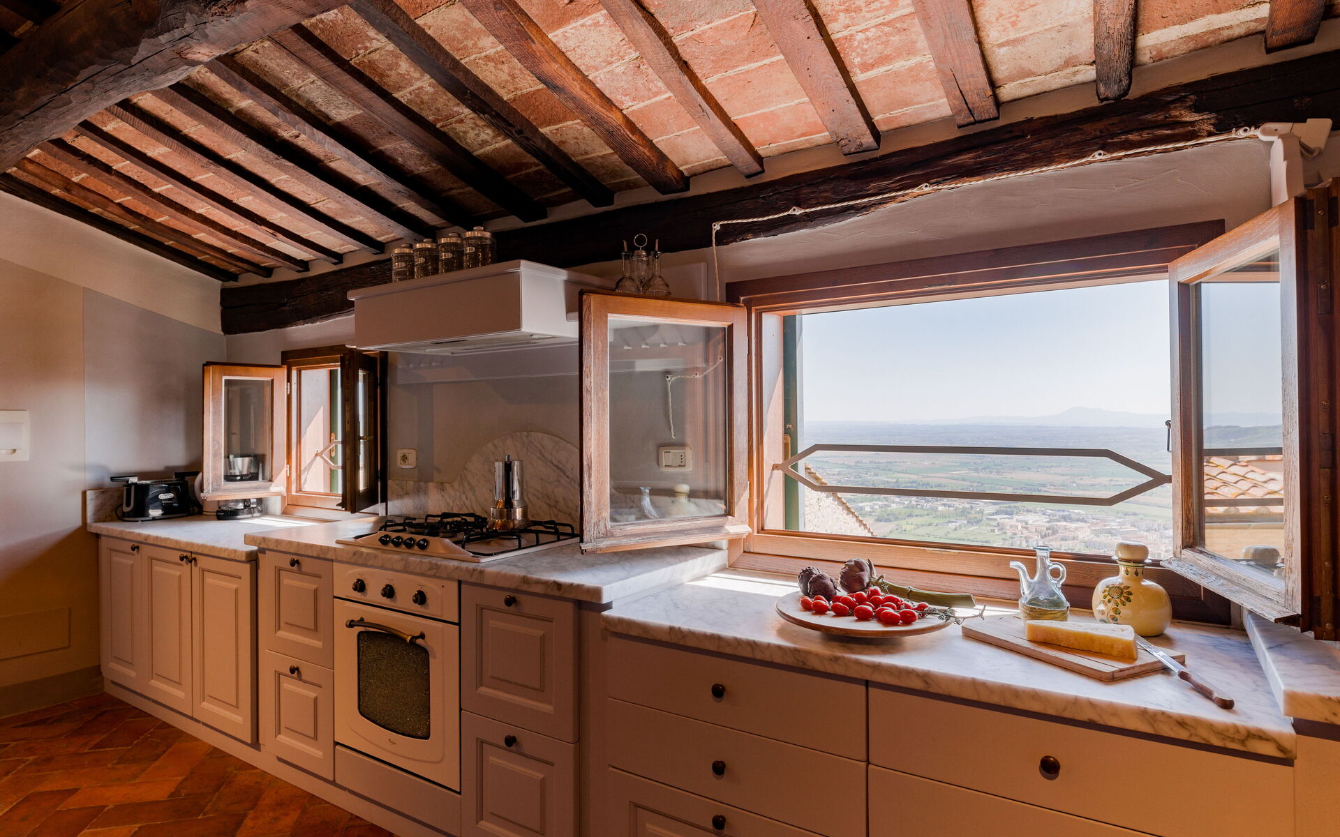 This is my 3rd time staying in this beautiful apartment and it will certainly not be my last! The apartment is spacious but warm and welcoming. The terrazza is AMAZING! We spend every morning and evening looking over the beautiful Valdichiana and taking in the sights and sounds of Cortona. Alice and her team have been perfect in every aspect of the rental process. I have already recommended her and Rent in Tuscany to friends! We will see you again!