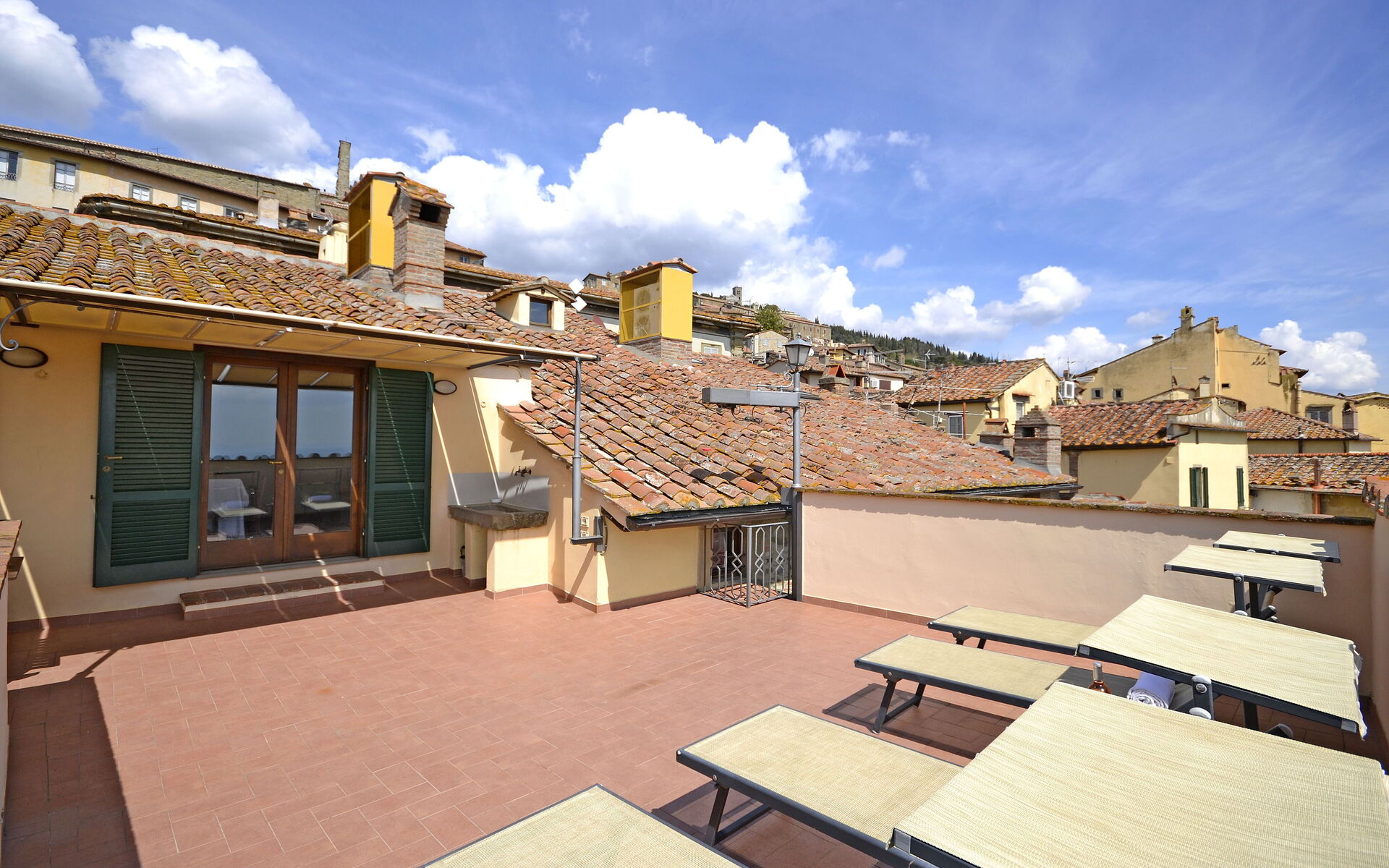 Wonderful, spacious apartment right in the centre of Cortona with huge terrace and stunning view of the roof tops and the valley.