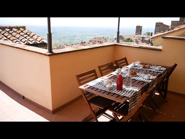 La Terrazza Cortonese è un bellissimo appartamento posto nel centro storico dell'antica città di Cortona, delizioso e bellissimo borgo medievale che deve le sue origini all'antica civiltà etrusca, di cui ancora oggi ritroviamo testimonianze nella città attuale. Cortona sorge all'apice di una dolce collina da cui domina con fierezza l'intera Valdichiana e il Lago Trasimeno.