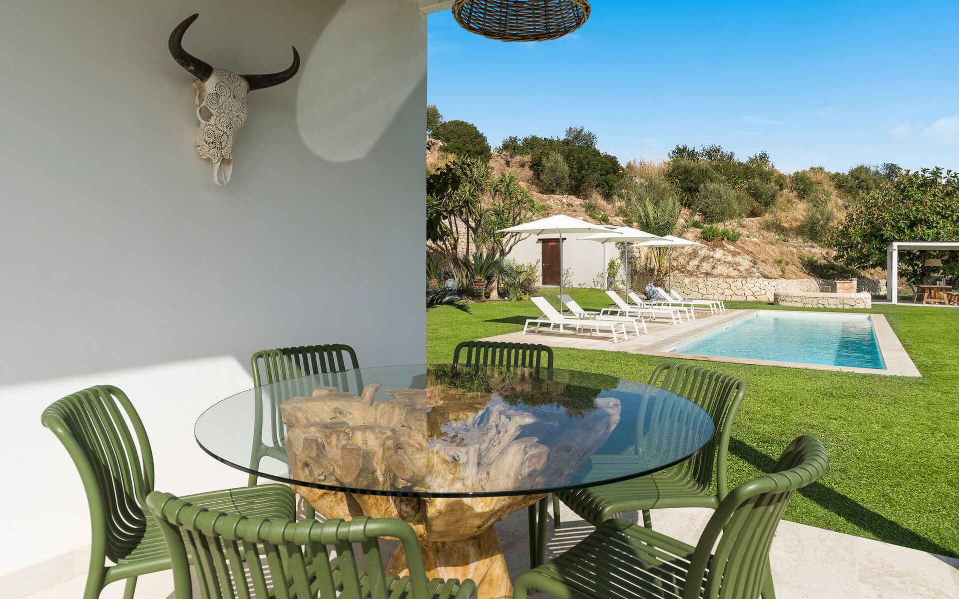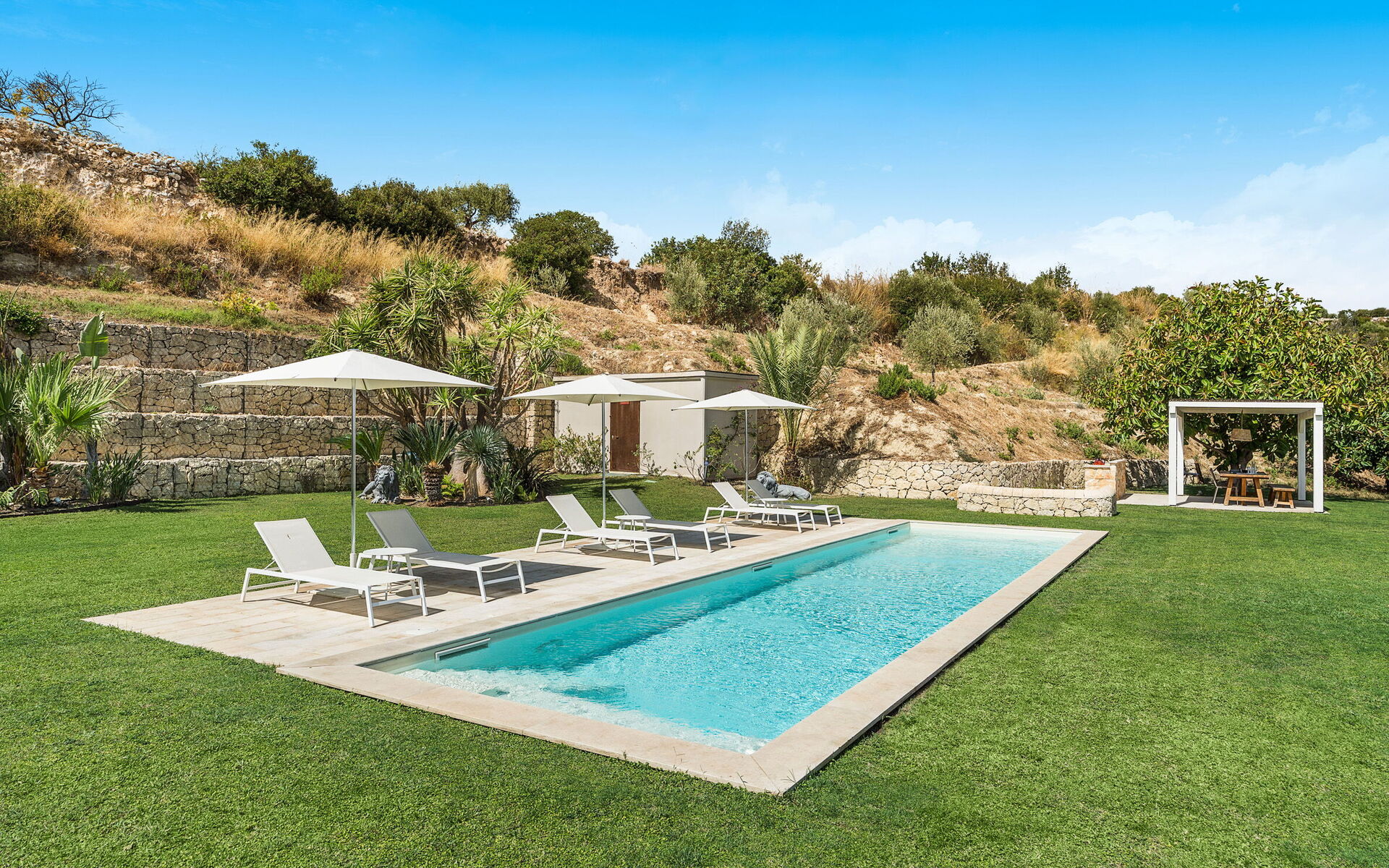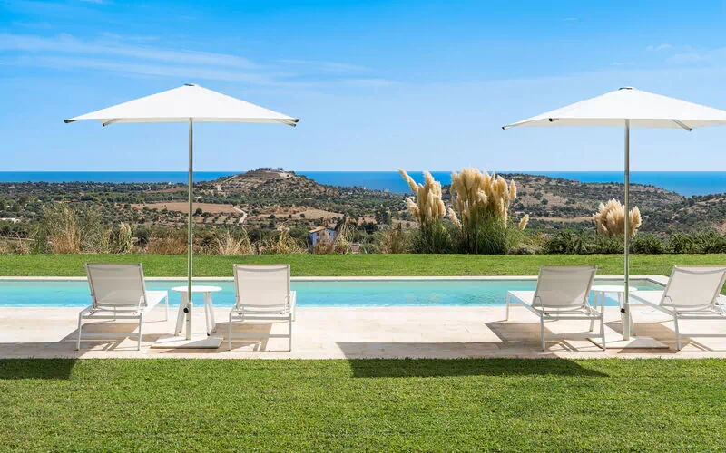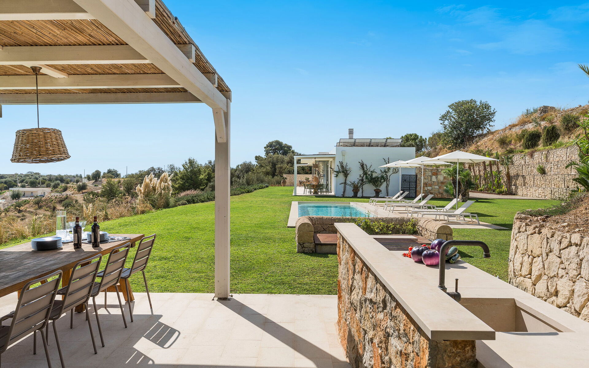 Villa Petite Afrique is an exclusive and beautifully positioned countryside villa near the historic baroque town of Noto, in south-eastern Sicily. It stands in a panoramic setting with exceptional views of both the surrounding hills and the sea, creating a serene atmosphere perfect for relaxation. The outdoor spaces are thoughtfully designed and include a private swimming pool with a sunbathing solarium, surrounded by loungers and small tables — ideal for enjoying the Sicilian sunshine with family or friends. There’s also a garden, gazebo with a dining area, barbecue, and plenty of outdoor seating. The large garden (about 5000 m²) offers space to unwind and enjoy al fresco dining or peaceful moments under the sky. The villa is just a short drive from golden sandy beaches (about 9 km) and offers easy access to beaches like Calamosche and San Lorenzo, historic towns like Syracuse and Ragusa, and nature reserves such as Vendicari.