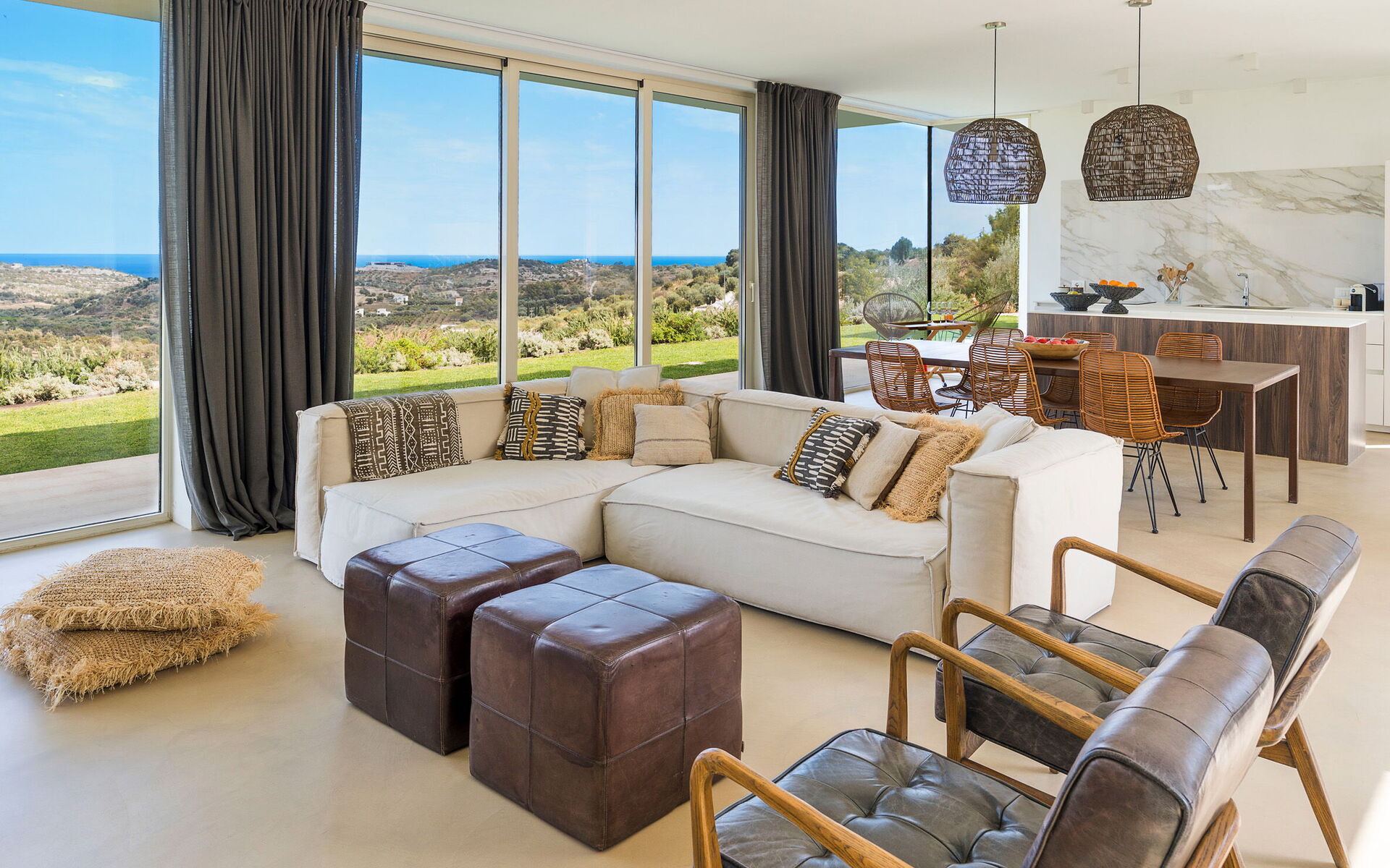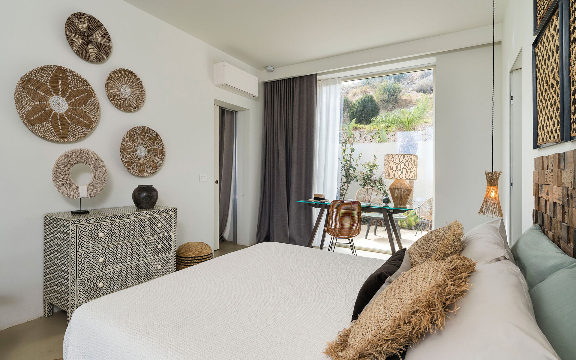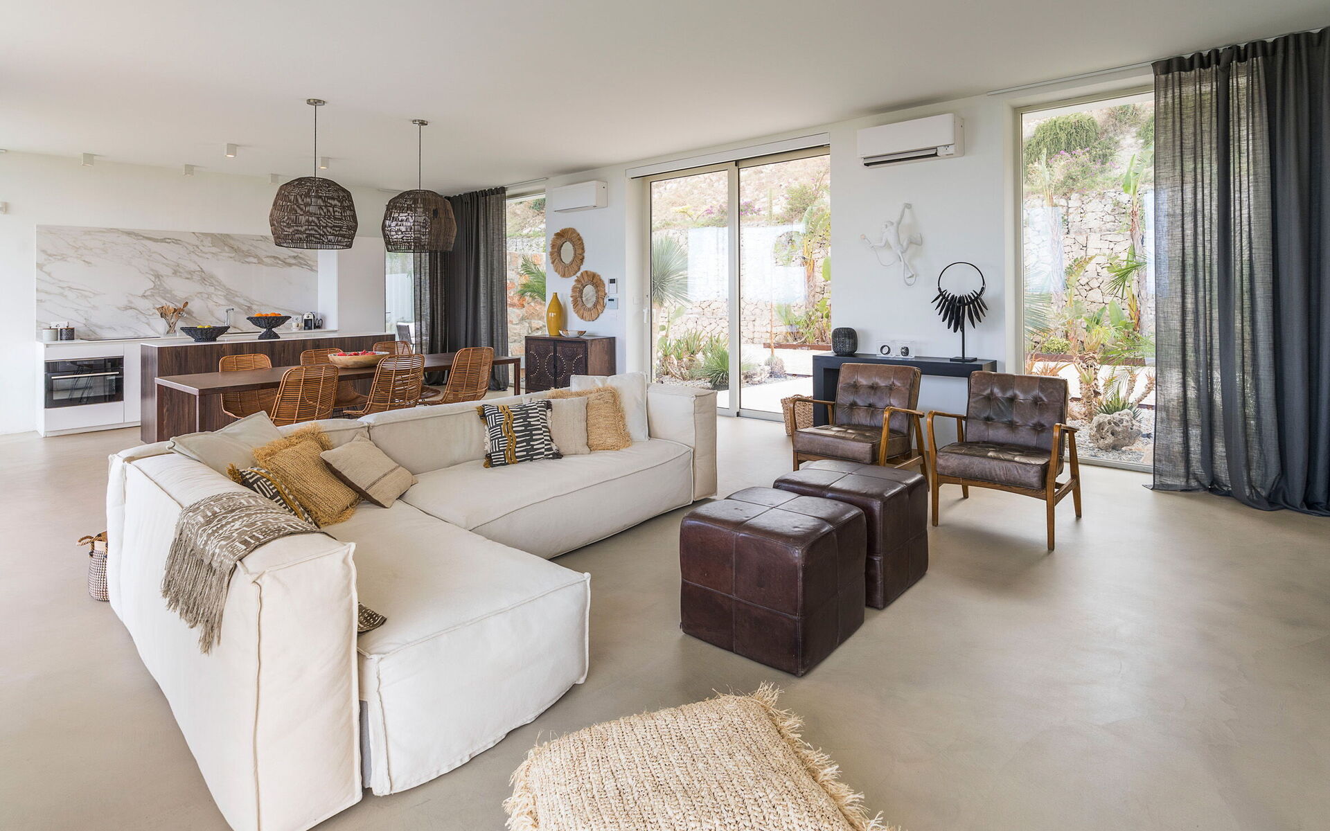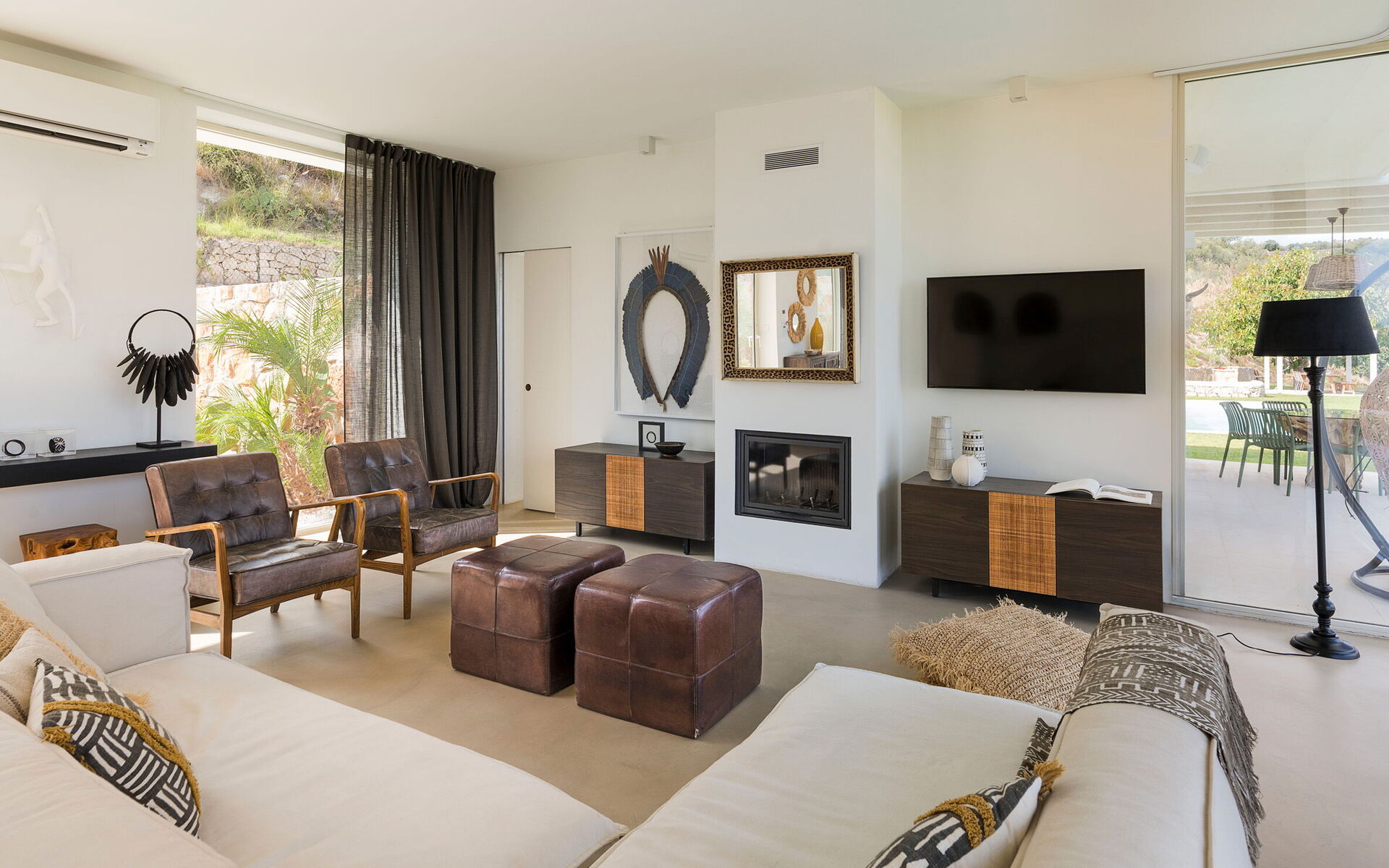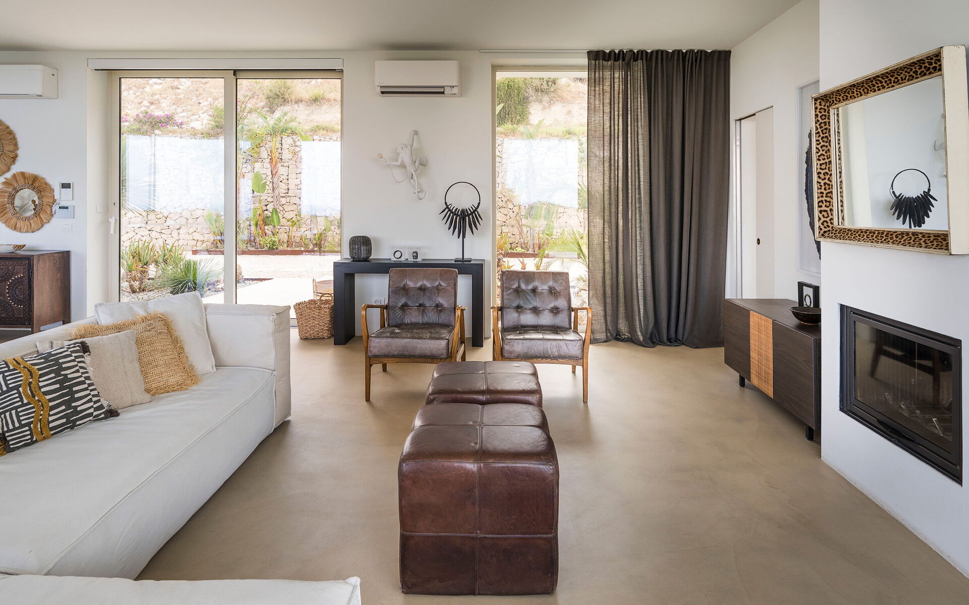 Inside, Villa Petite Afrique features welcoming, bright, and well-appointed interiors all on one level, offering comfort for up to 6 guests across 3 bedrooms and 3 bathrooms. The main living area includes a large living room with lounge and dining space, and a fully equipped kitchen — perfect for social gatherings and everyday living. There is one double bedroom with an en-suite bathroom connected to the living space, and two additional double bedrooms (one convertible to twin beds) accessed from the outside, each with its own en-suite shower room. The villa is equipped with air conditioning in all rooms, Wi-Fi, Smart TV, Hi-Fi system, dishwasher, washing machine and other modern comforts, ensuring a pleasant stay.