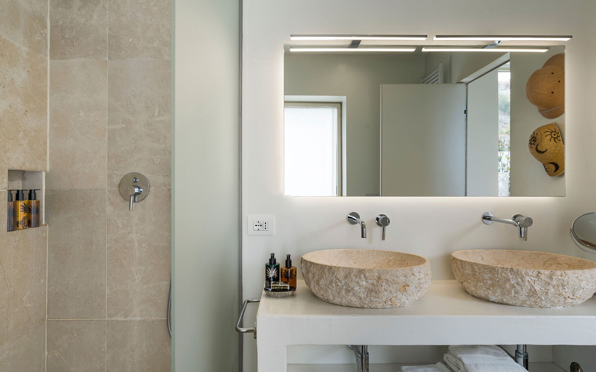 The welcoming interior spaces, furnished with great care and equipped with the best comforts, feature heating and air conditioning, Wi-Fi, sMART TVs, washing machine, dishwasher, oven, microwave, iron, american coffee machine.