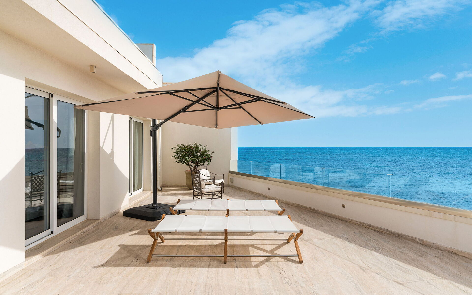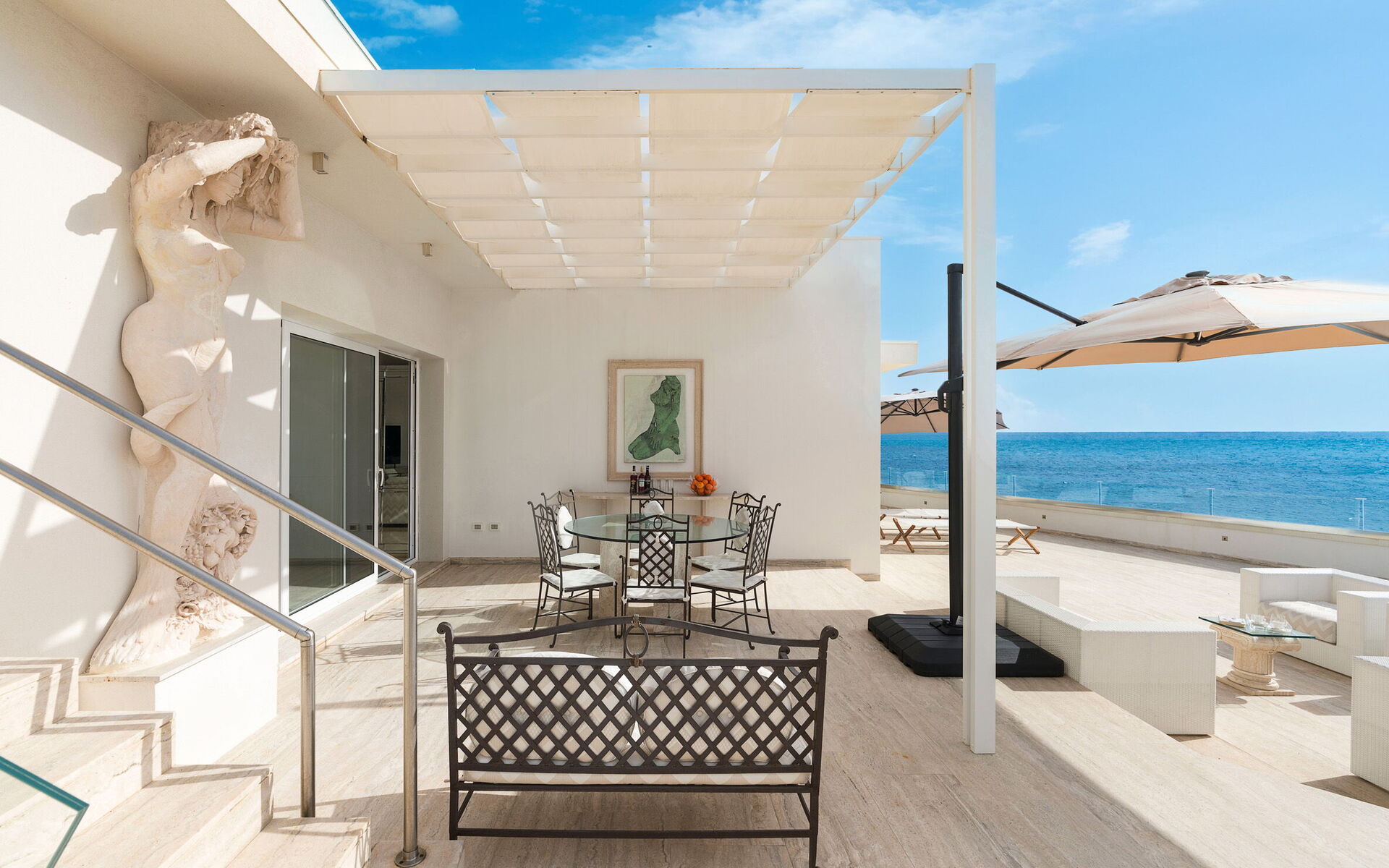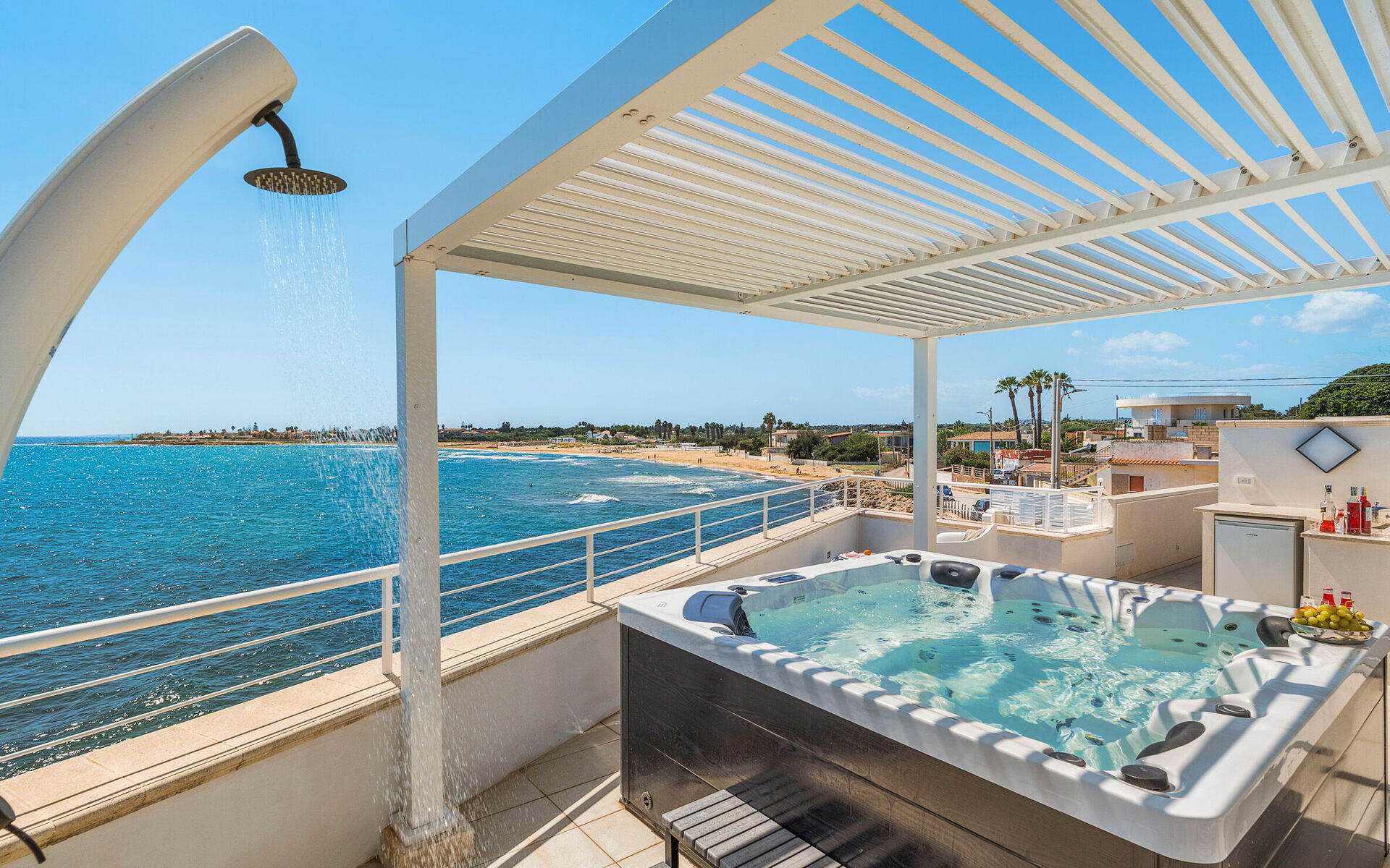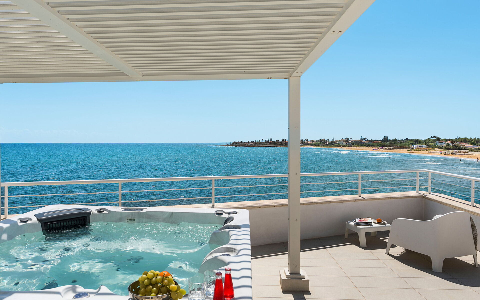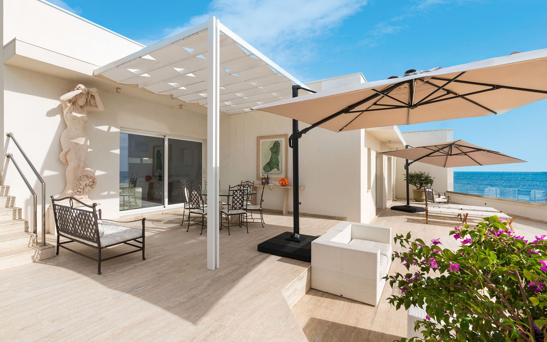 Exclusive cliffside residence overlooking the sea in Avola, near Siracusa. Mare Dentro offers private access to the rocky coastline and the sea, and is located just over 100 meters from a beautiful sandy beach, easily reachable on foot. Recently built, the villa features a solarium and a spacious, fully furnished terrace, offering breathtaking views over the Avola coastline.
