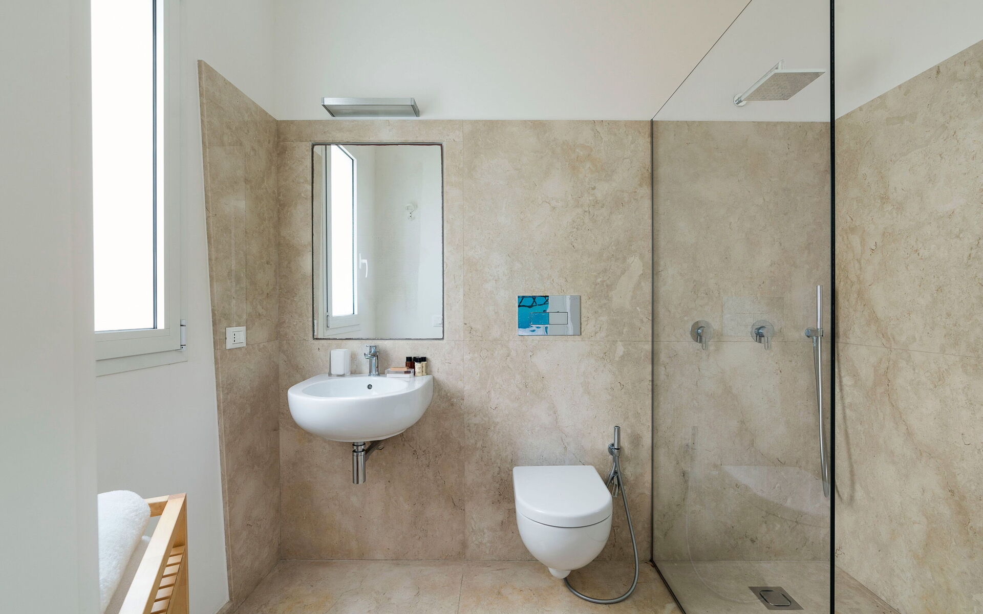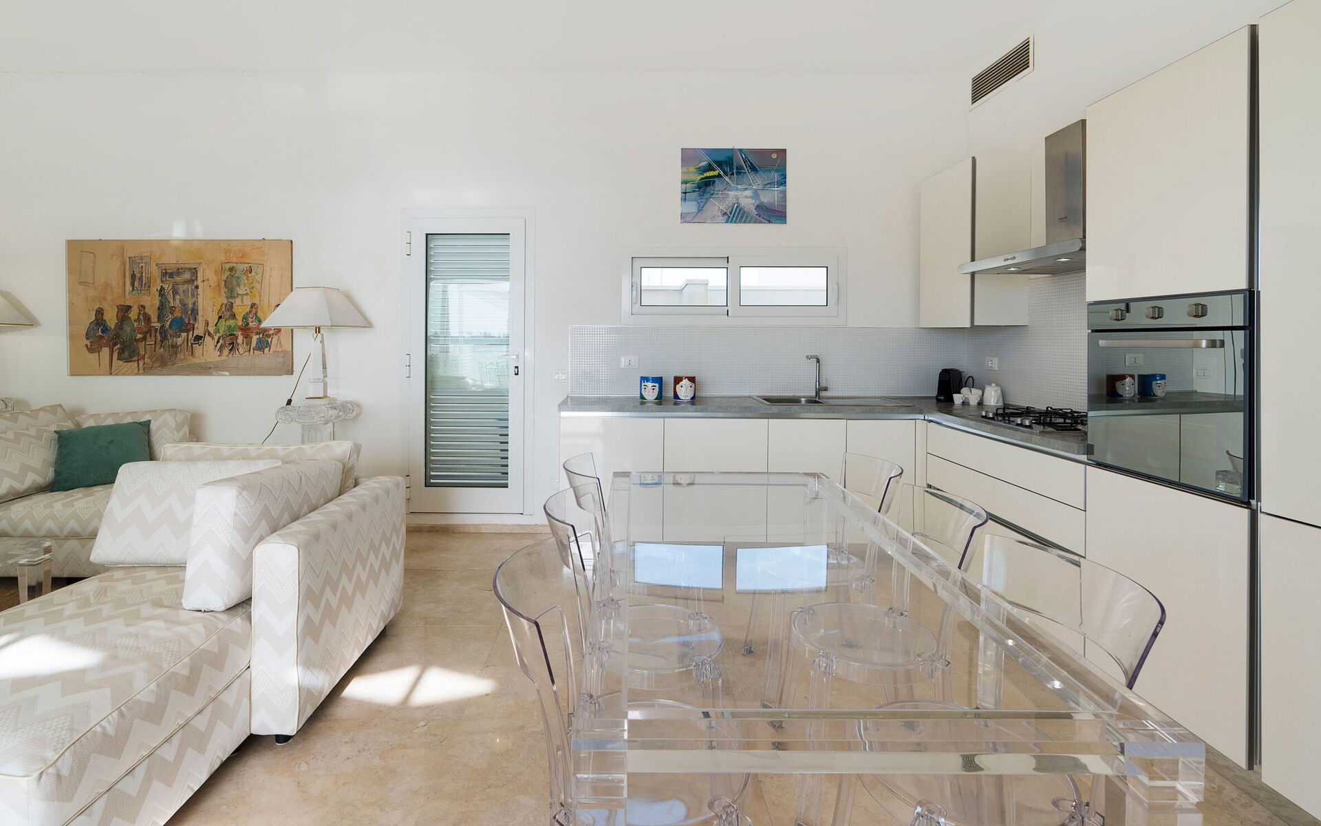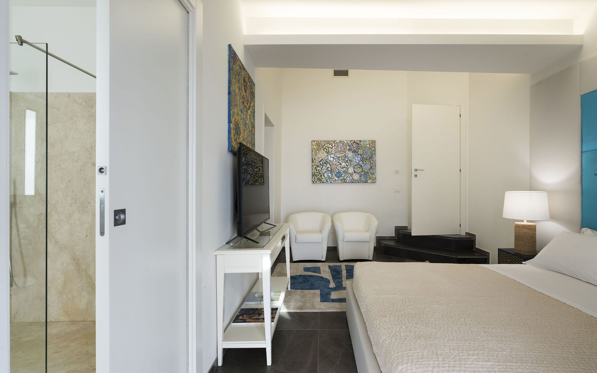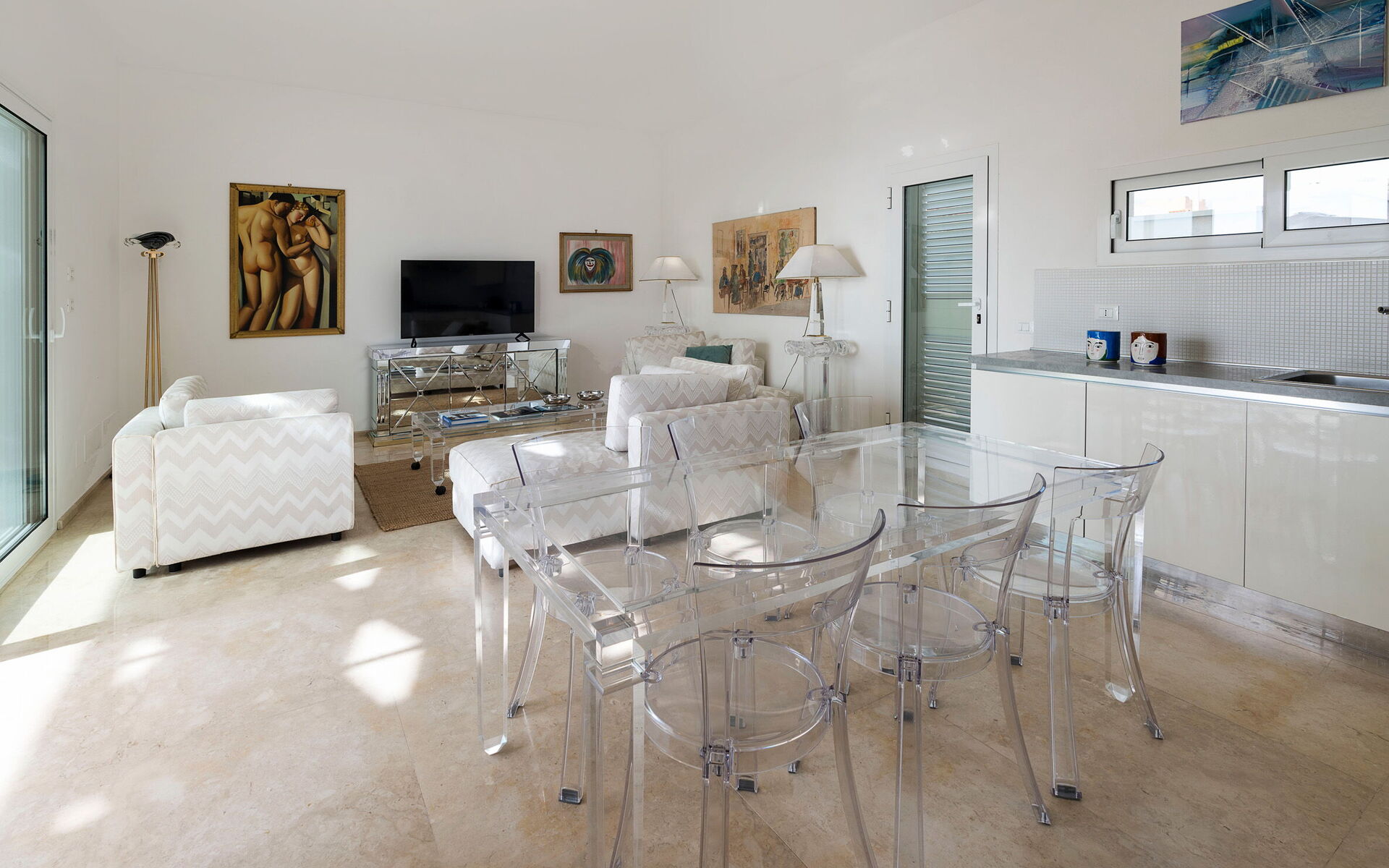 The welcoming and well-designed interiors feature a bright open-plan living area with kitchen, two double bedrooms each with en-suite bathroom, and a third bedroom with twin beds served by an additional bathroom with shower. The residence is equipped with all modern comforts, including air conditioning and heating throughout, Wi-Fi internet connection, two TVs, washing machine, dishwasher, barbecue, and an outdoor shower. Mare Dentro is also an excellent base for exploring the stunning eastern Sicilian landscape: from the Cavagrande del Cassibile Nature Reserve to the Vendicari Wildlife Oasis, from the charming seaside villages of Calabernardo and Marzamemi to the beautiful Baroque towns of the Val di Noto, as well as Syracuse, Catania, and Taormina.