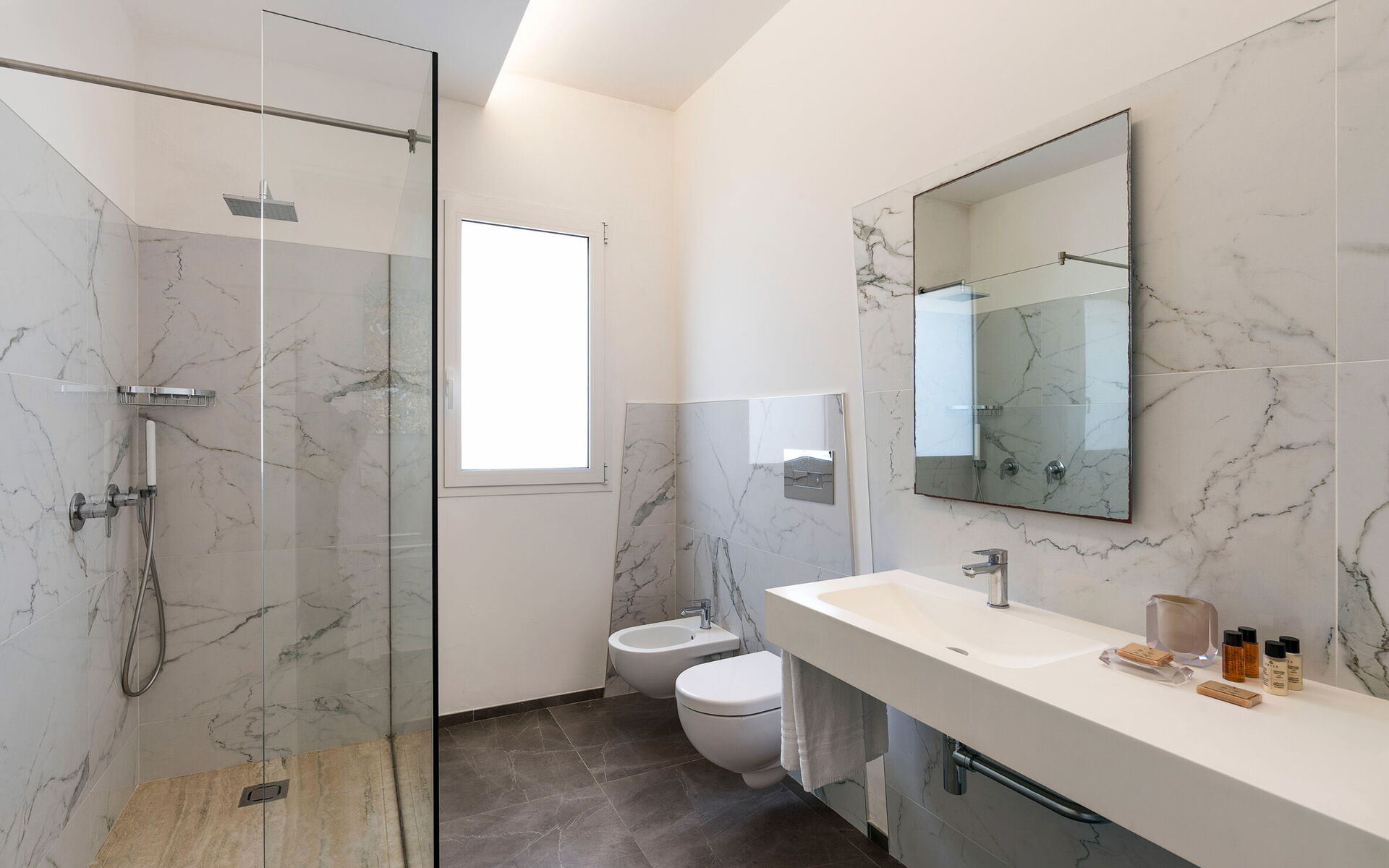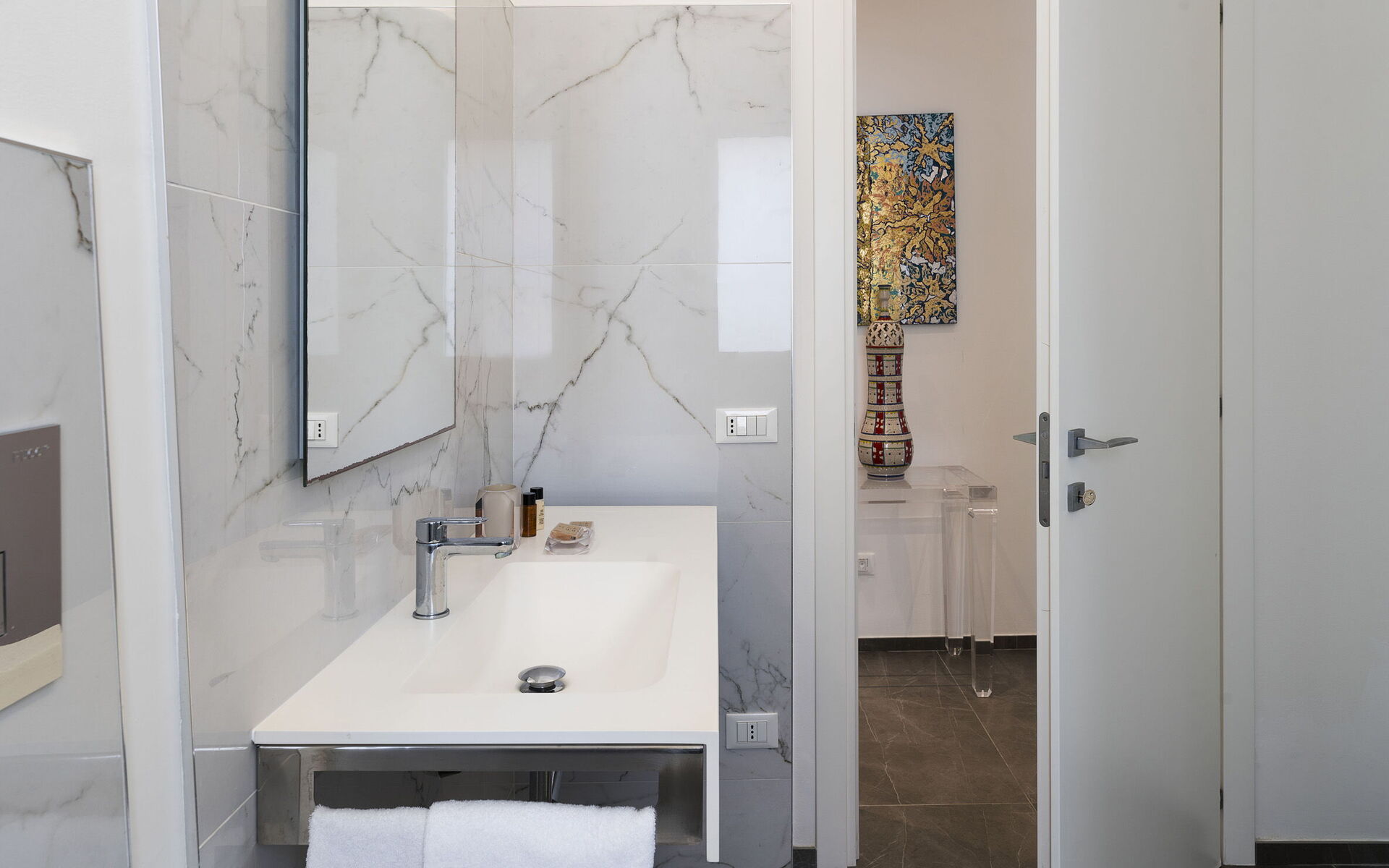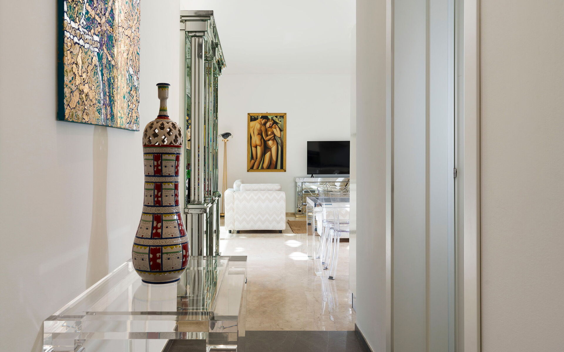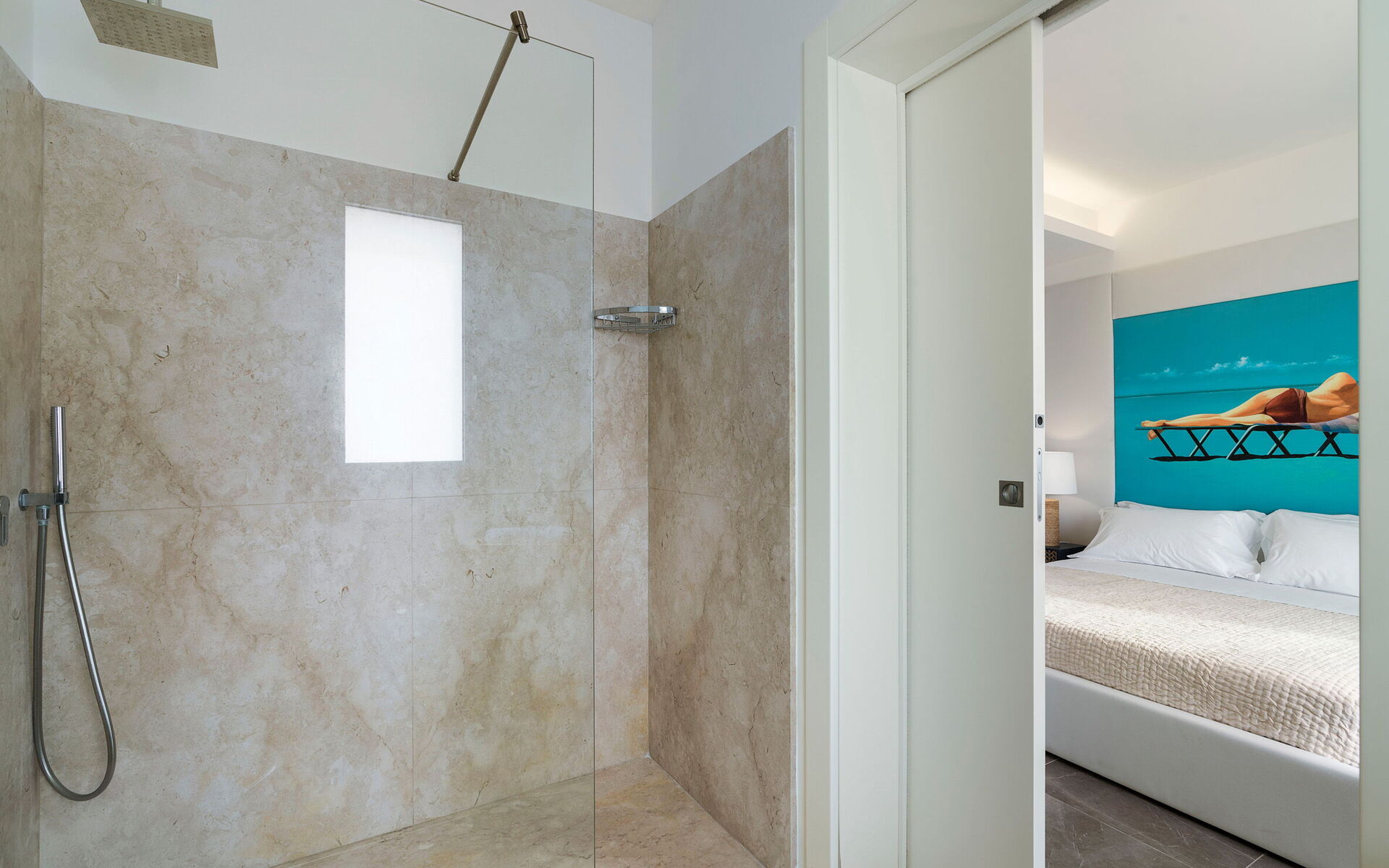 The welcoming and well-designed interiors feature a bright open-plan living area with kitchen, two double bedrooms each with en-suite bathroom, and a third bedroom with twin beds served by an additional bathroom with shower. The residence is equipped with all modern comforts, including air conditioning and heating throughout, Wi-Fi internet connection, two TVs, washing machine, dishwasher, barbecue, and an outdoor shower. Mare Dentro is also an excellent base for exploring the stunning eastern Sicilian landscape: from the Cavagrande del Cassibile Nature Reserve to the Vendicari Wildlife Oasis, from the charming seaside villages of Calabernardo and Marzamemi to the beautiful Baroque towns of the Val di Noto, as well as Syracuse, Catania, and Taormina.