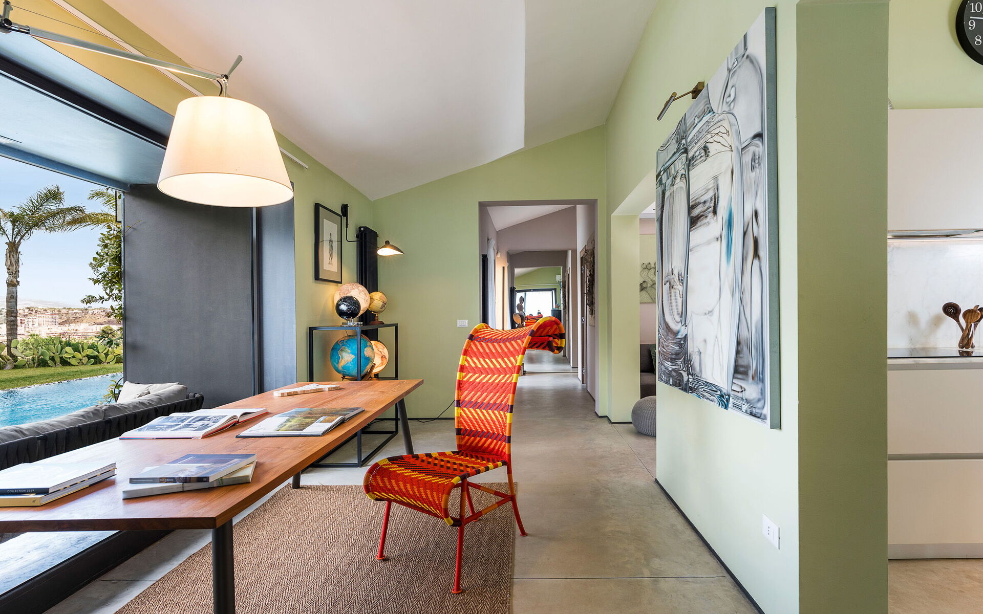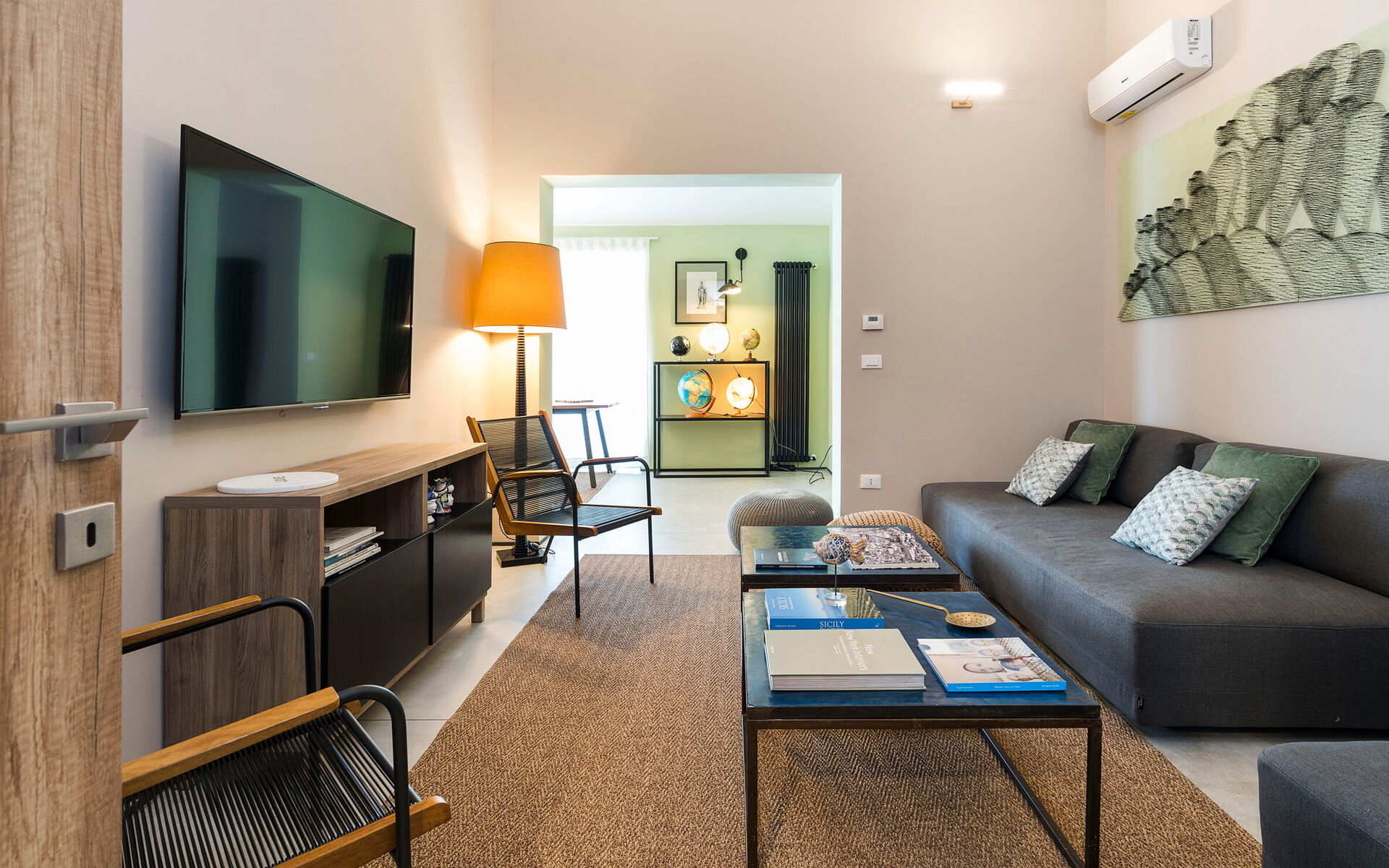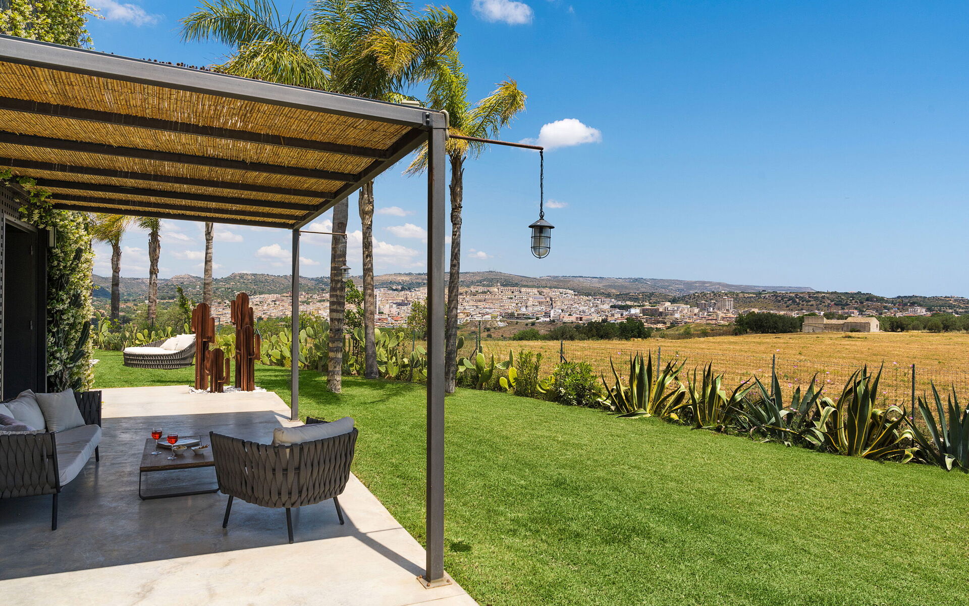 The villa, laid out on a single level, features carefully designed interiors with a refined, contemporary style. The welcoming and comfortable spaces include a bright living room, a TV lounge, a veranda with a dining area, and a modern, fully equipped kitchen. The sleeping area comprises three double bedrooms, each with a private en-suite bathroom, as well as an additional bedroom with a French-size bed and a bathroom with shower. The villa is fully air-conditioned and offers Wi-Fi, four TVs, a washing machine and dryer, dishwasher, electric and microwave ovens, espresso and American coffee machines, an ice maker, and private parking. Villa Agnese is an ideal base for easily reaching by car the nearby historic center of Noto and the charming Baroque towns of Syracuse, Scicli, Modica, and Ragusa Ibla. The surrounding area also boasts the Vendicari Nature Reserve, Marzamemi, Portopalo di Capo Passero, and some of the most beautiful beaches of Eastern Sicily.