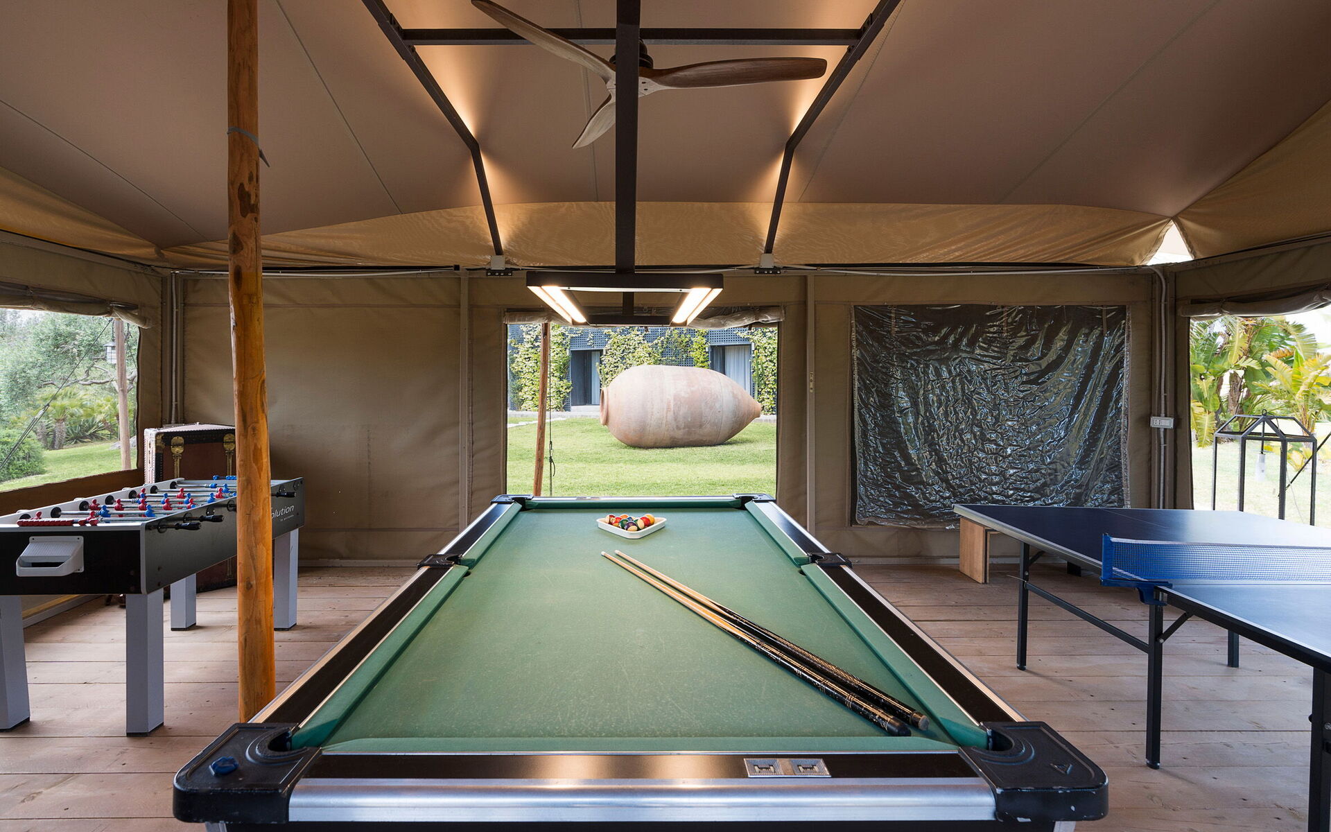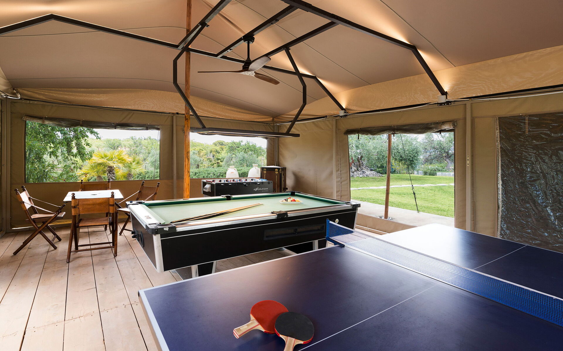 - Safari lodge tent with games room (pool table, table football and ping-pong table)