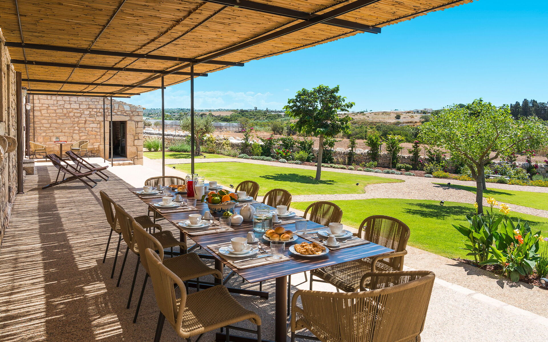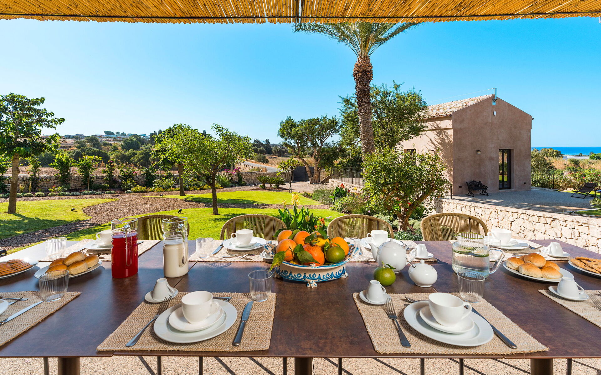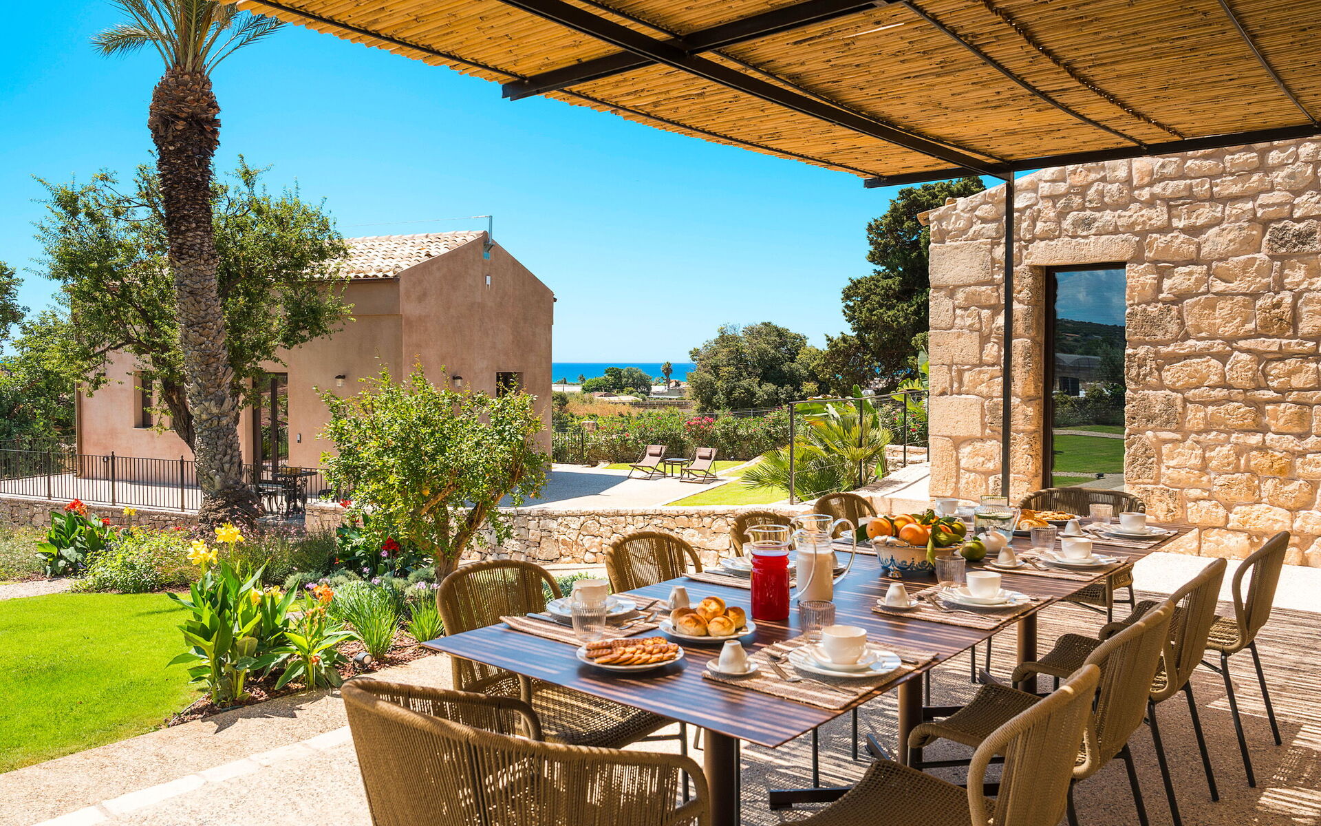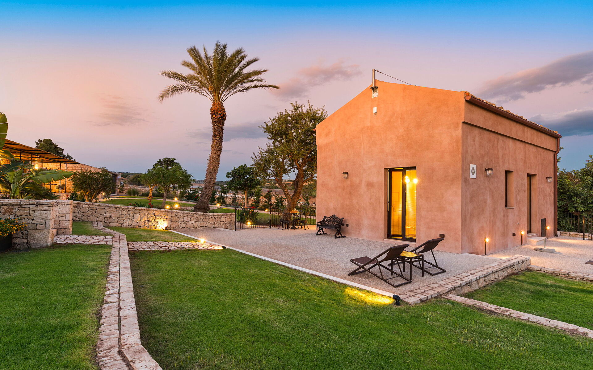 The residence, recently renovated with great care, has preserved its original architectural features while offering refined and comfortable living spaces. The property consists of a main building and a separate dependance, ensuring generous space and an excellent layout. The main building includes a bright living room, a fully equipped kitchen, one double bedroom with en-suite shower room, a loft-style double/twin bedroom, and an additional bathroom with shower. Also within the main building, but with independent external access, there is another double bedroom with en-suite shower room, as well as a suite featuring a living area with kitchenette and a double/twin bedroom with en-suite shower room. The dependance houses the fifth double bedroom with en-suite shower room and a cozy living area with a small kitchen, offering additional privacy and comfort. All beds are king size (180/90 x 200 cm). The interiors are spacious and fully equipped with modern amenities, including air conditioning throughout, Wi-Fi, two smart TVs, washing machine, dryer, dishwasher, electric oven, microwave, three refrigerators, three espresso coffee machines, barbecue, outdoor shower, and private parking. The location is ideal for exploring some of south-eastern Sicily’s most charming destinations, such as the baroque towns of Scicli, Modica and Ragusa Ibla, the seaside villages of Donnalucata and Marina di Ragusa, as well as Marzamemi, Noto and Syracuse to the north.