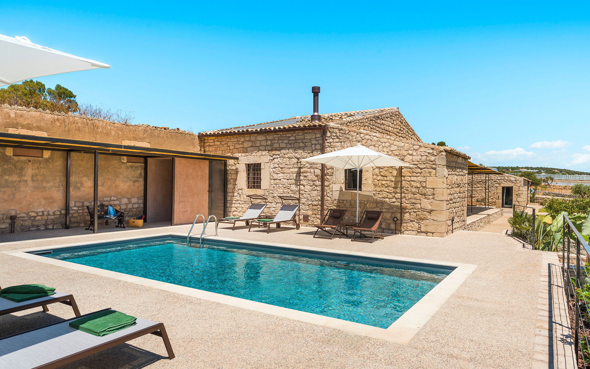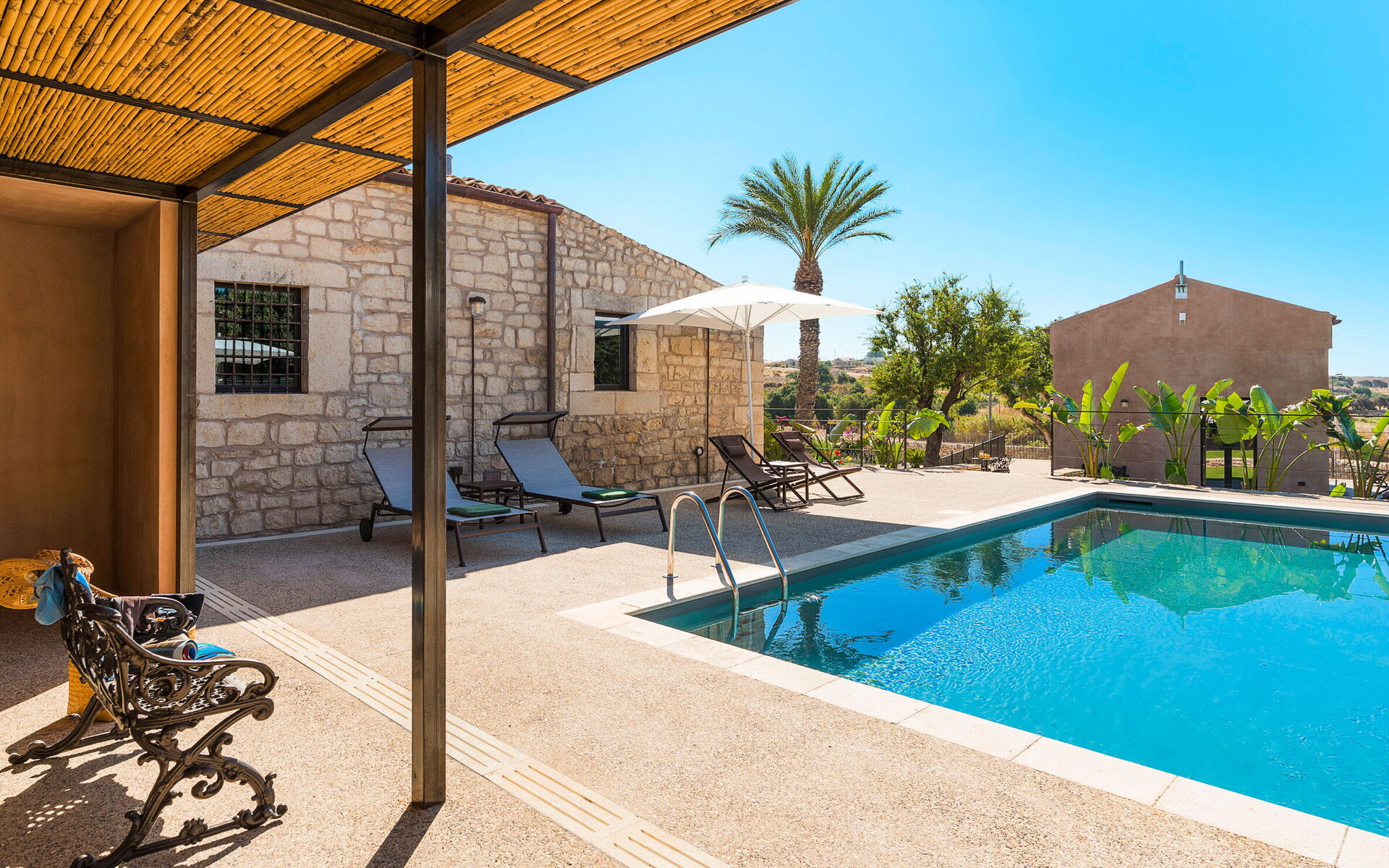Dimora Spinazzella is an exclusive villa with a private swimming pool, located in the peaceful surroundings of Donnalucata, in the province of Ragusa. Just over one kilometre from the beautiful Playa Grande beach, the property is set within a charming garden featuring a manicured lawn, aromatic herbs, and ornamental plants. The villa boasts an elegant private pool and spacious, fully equipped terraces, perfect for enjoying relaxing and memorable moments outdoors.
