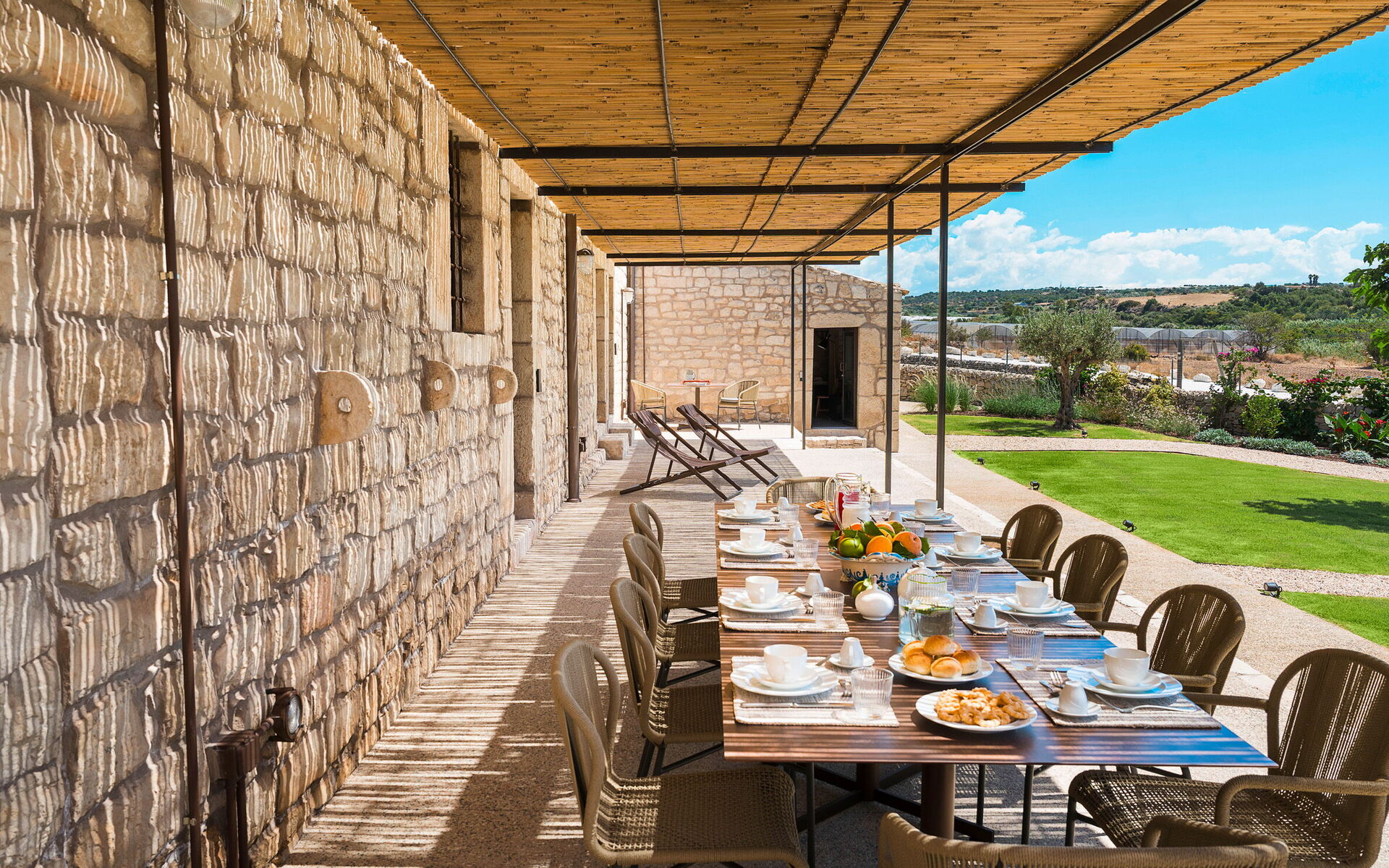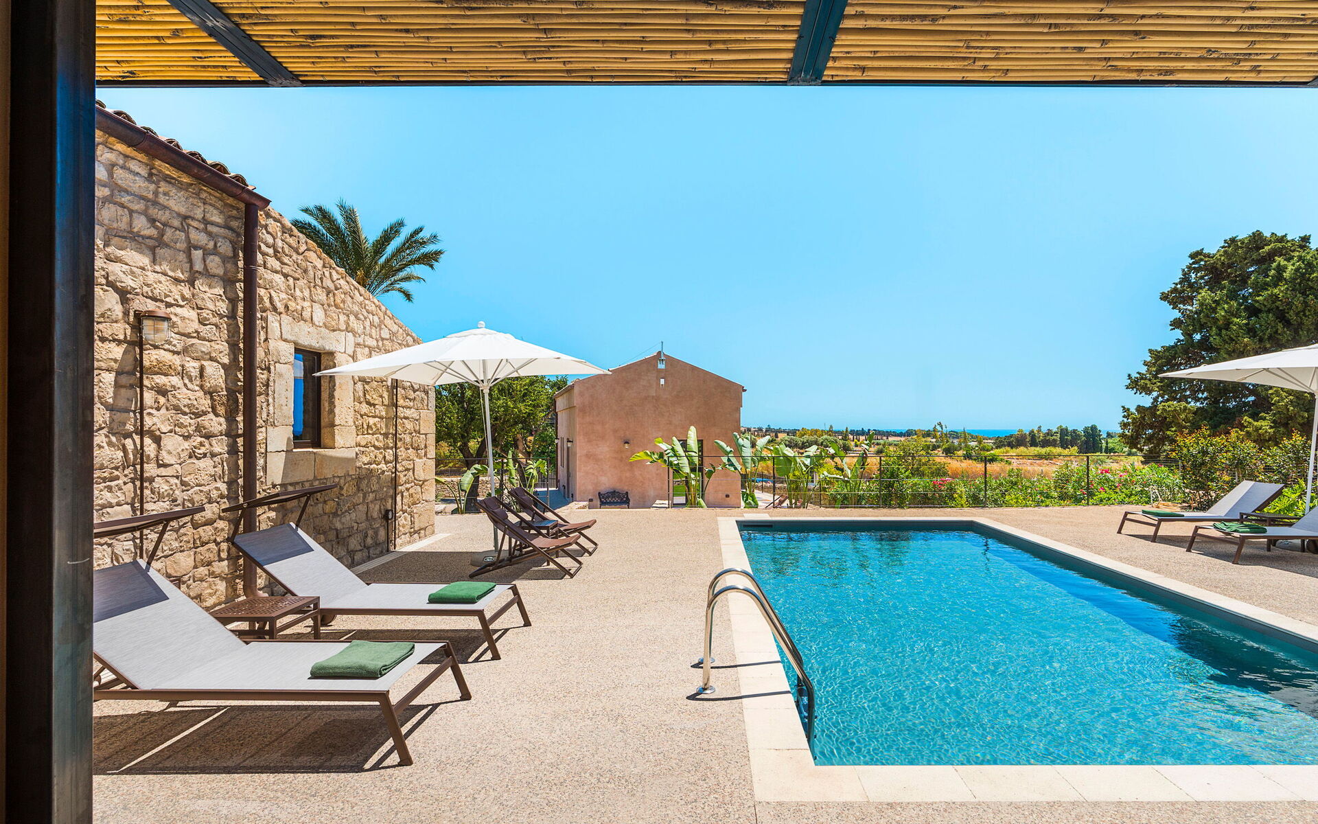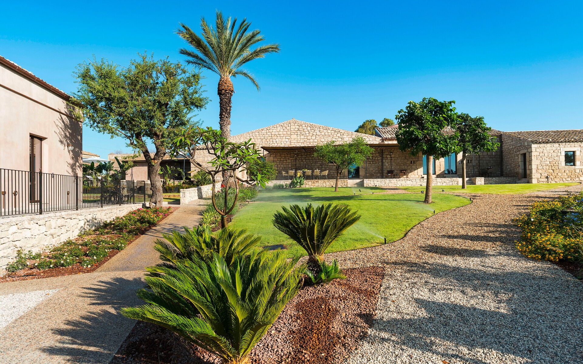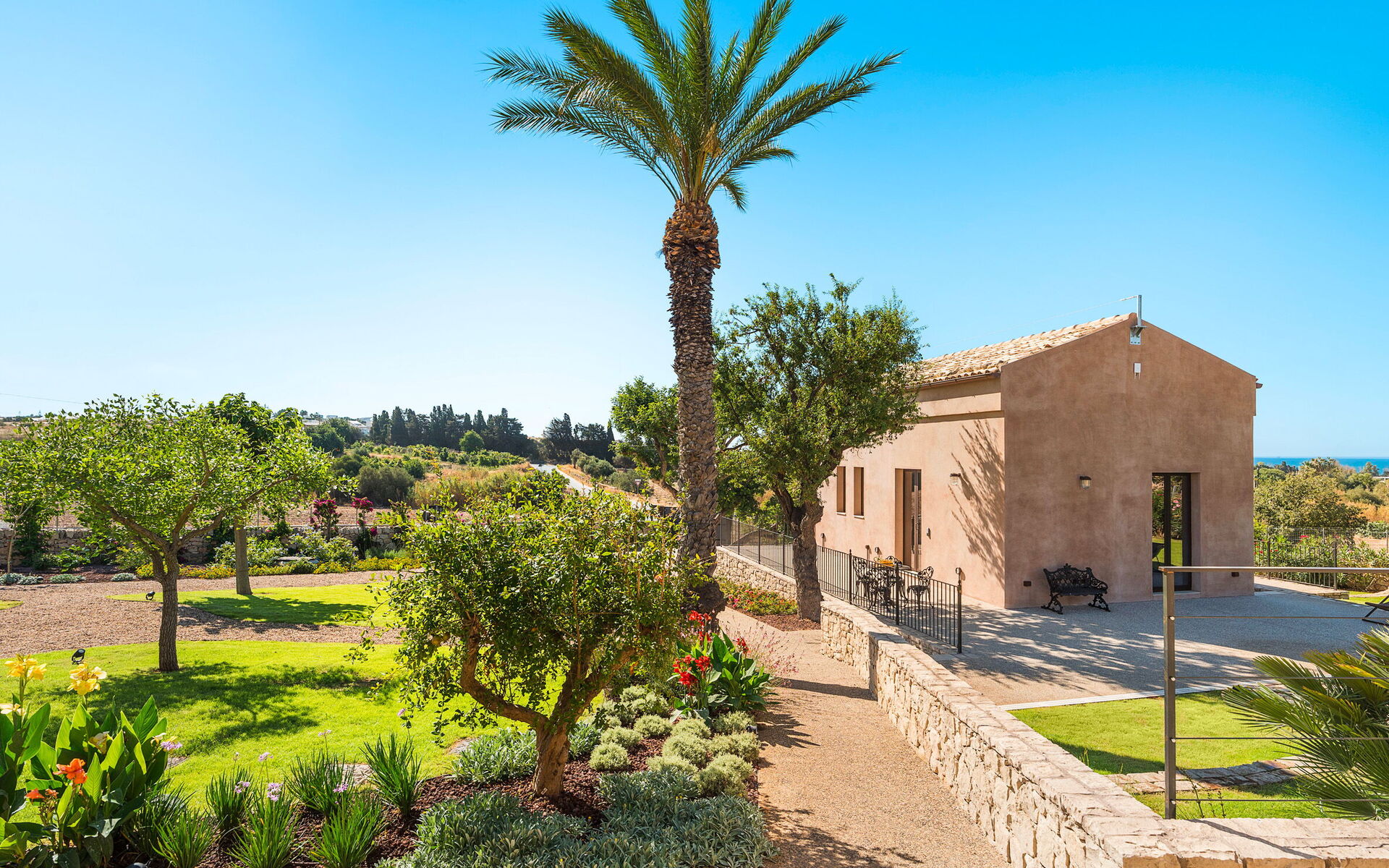 Scicli with all necessary services (grocery shops, restaurants, shops, banks…) 6 km, sea with sandy beach 2 km, golf (Donnafugata) 30 km, diving (Marzamemi) 53 km, fashion outlet (Agira) 185 km.