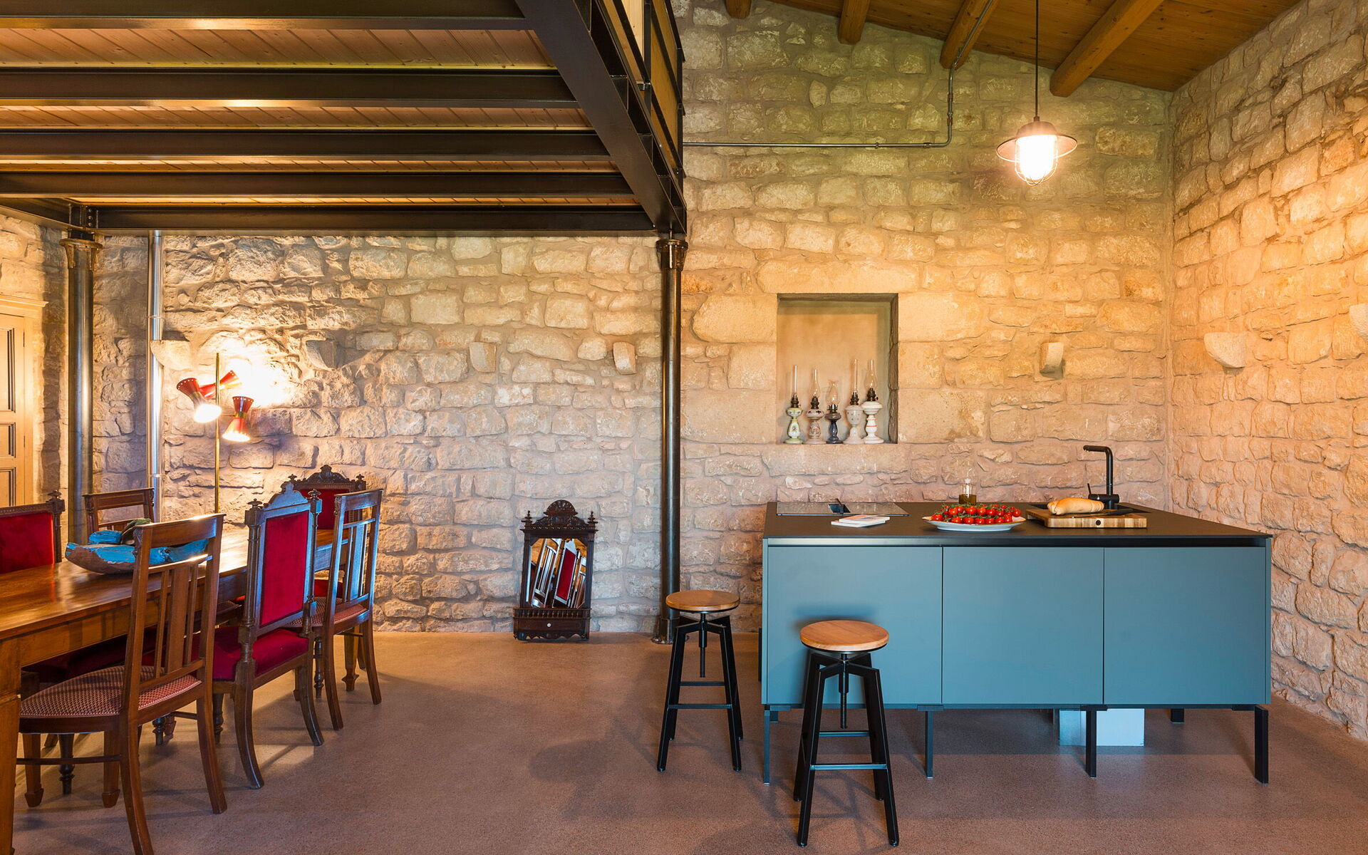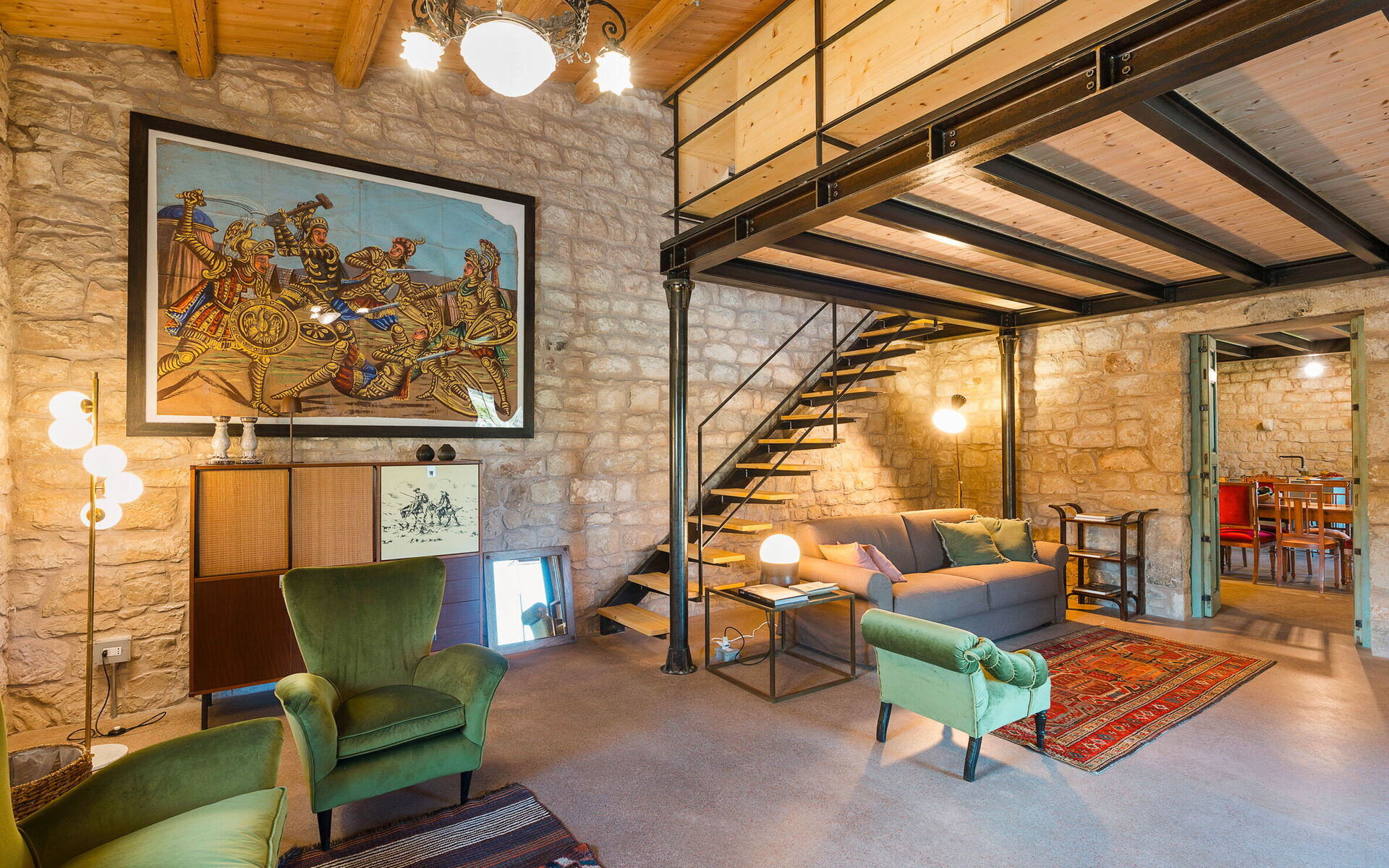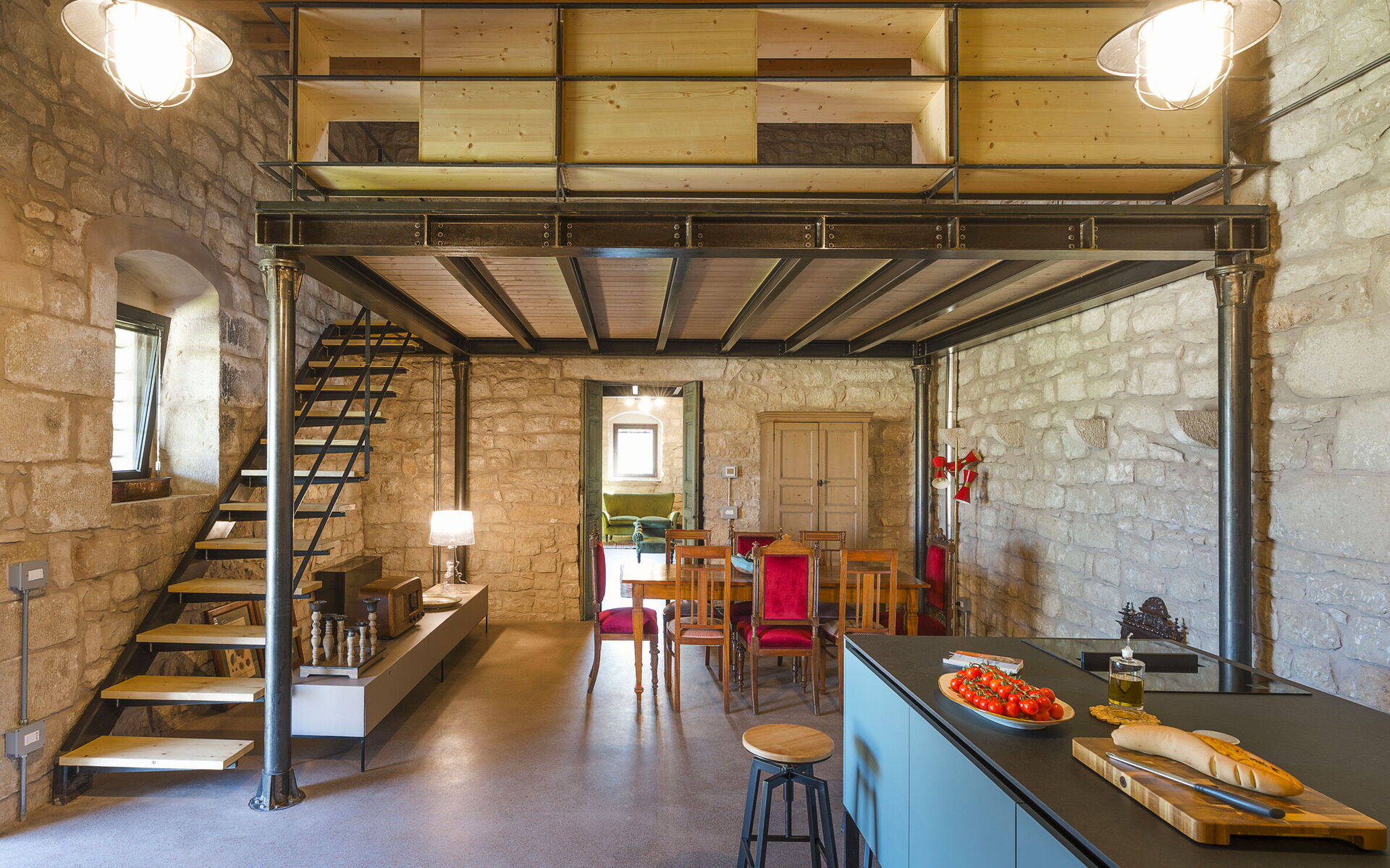 - Living room with kitchen and mezzanine