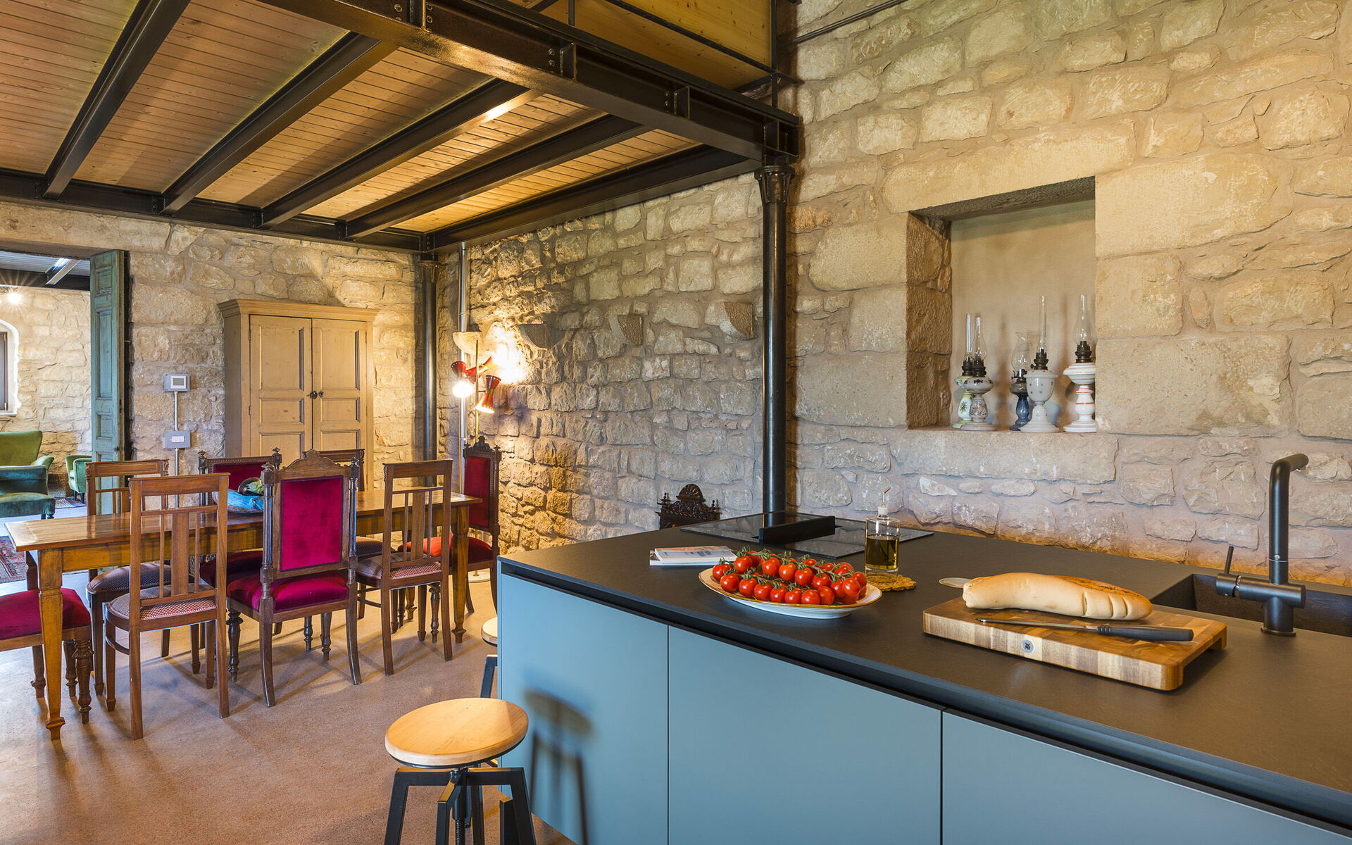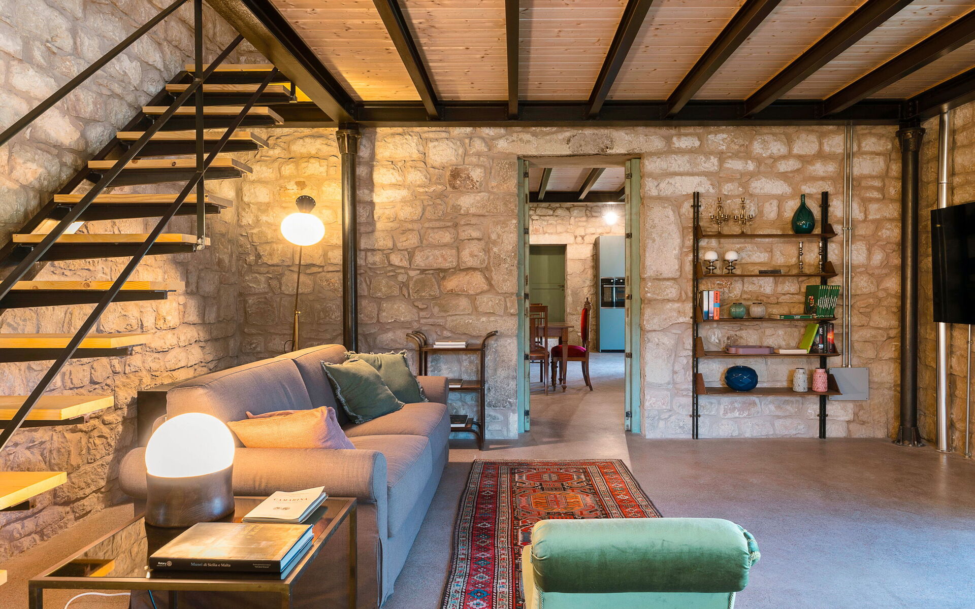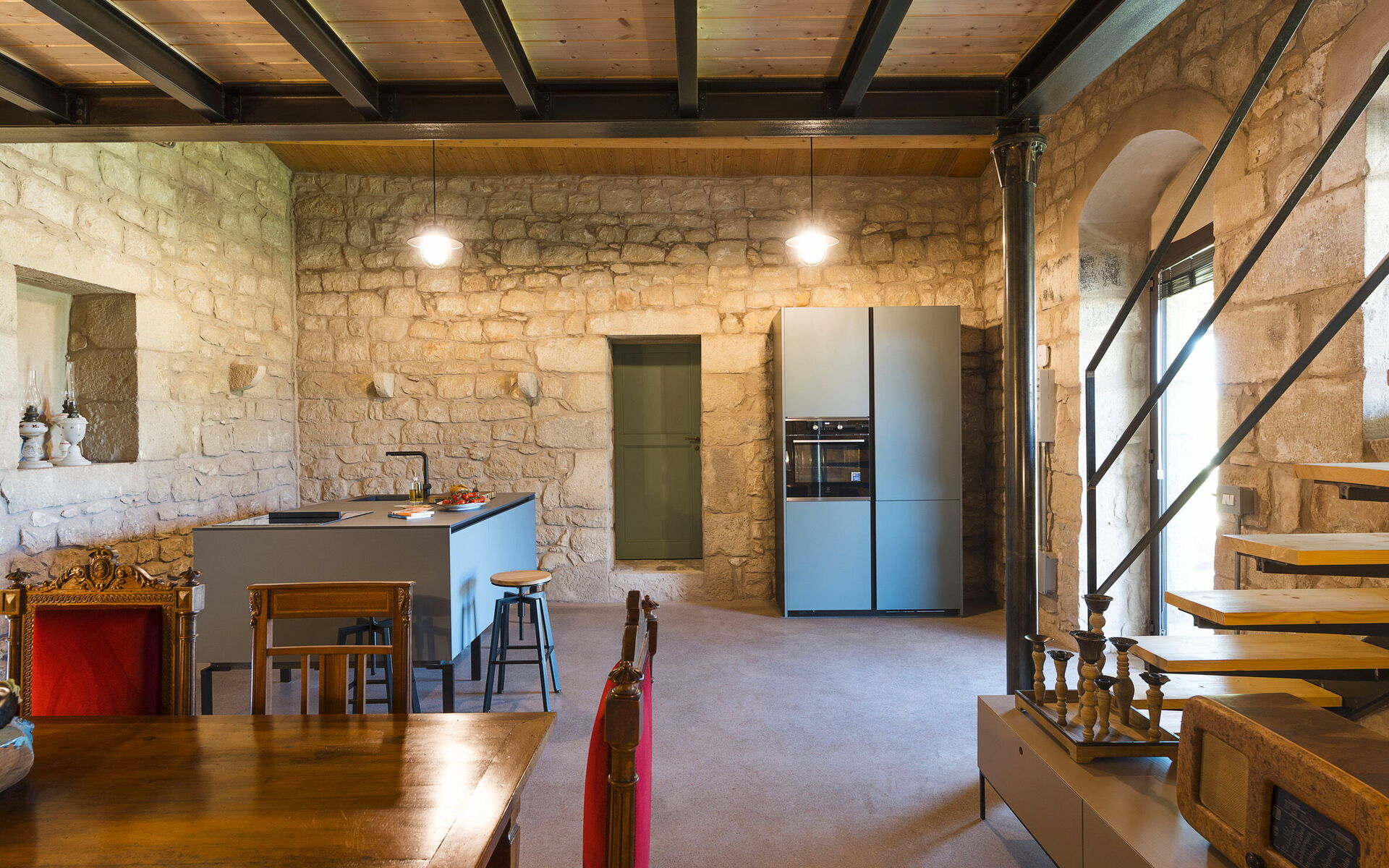 - Living room with kitchen and mezzanine