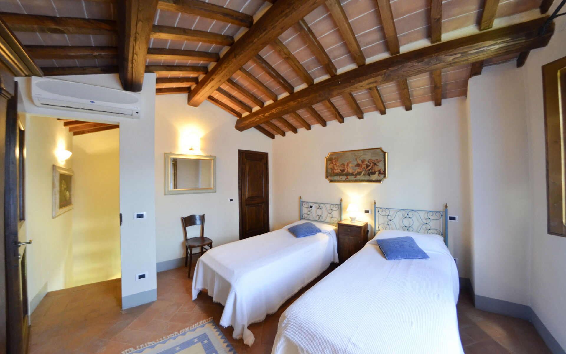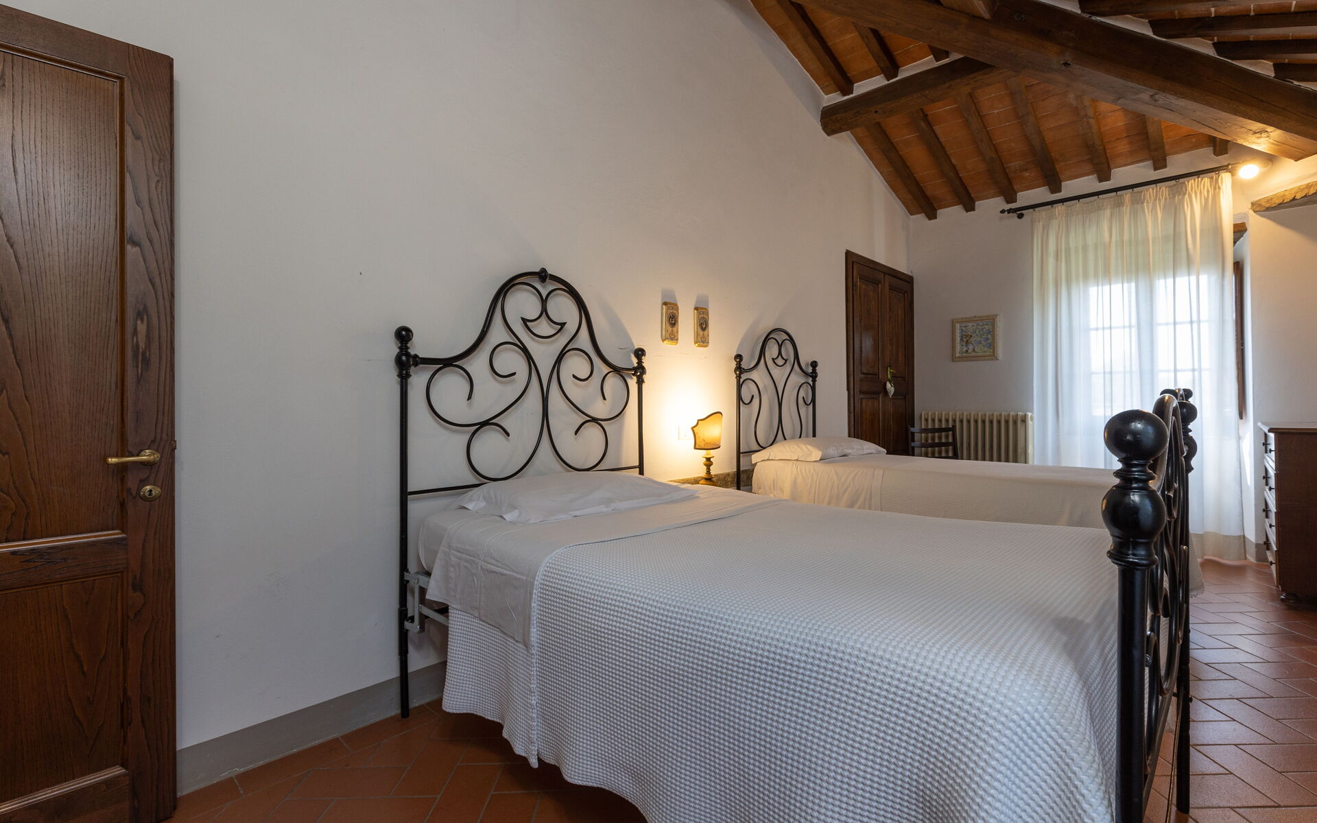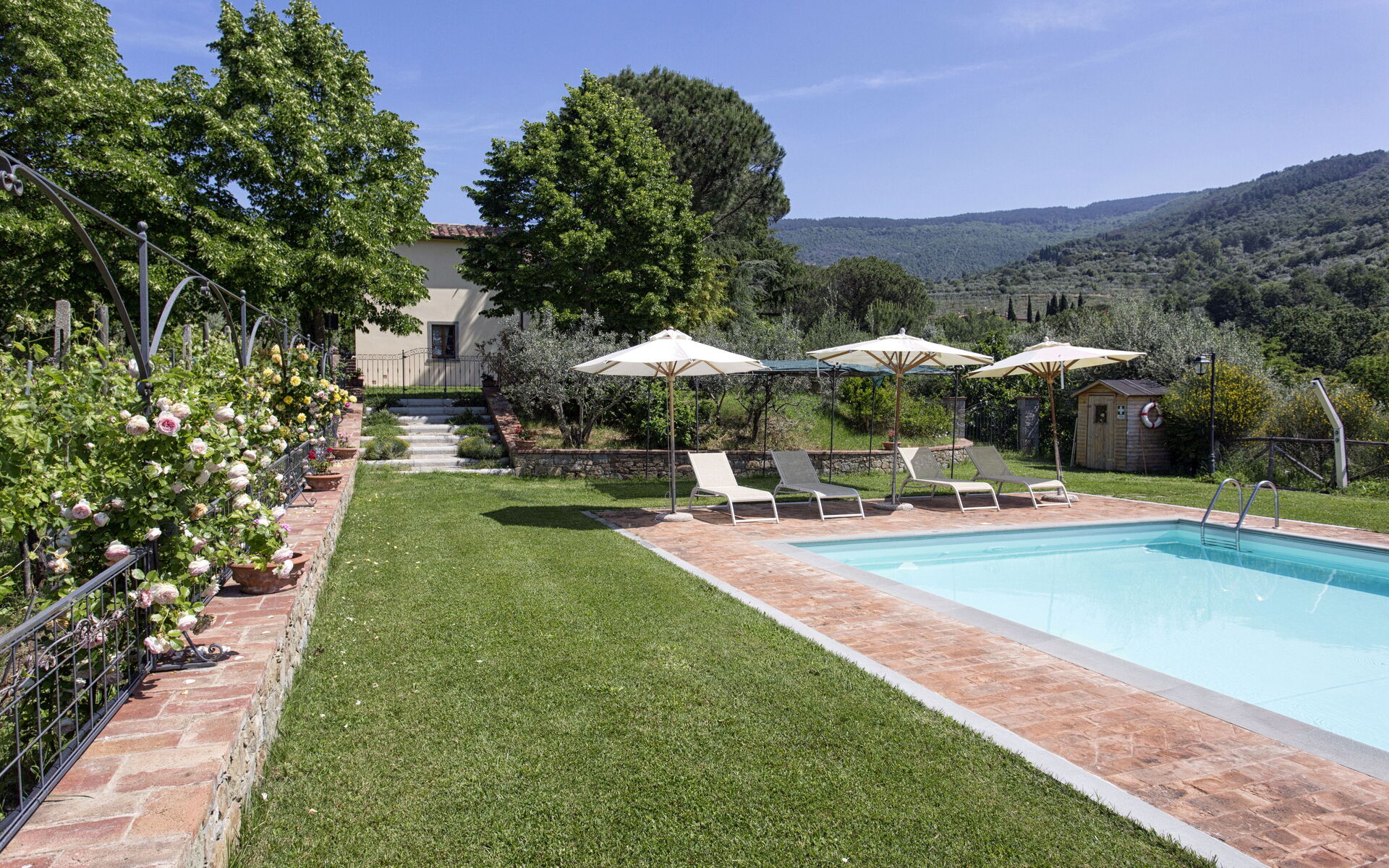 Villa San Pietro is composed of two buildings: the main villa is divided into two apartments, each with separate entrance and private garden, and is furnished in classic Tuscan style, with great attention to detail and comfort.