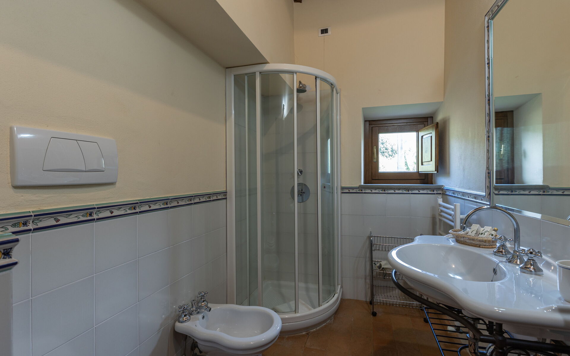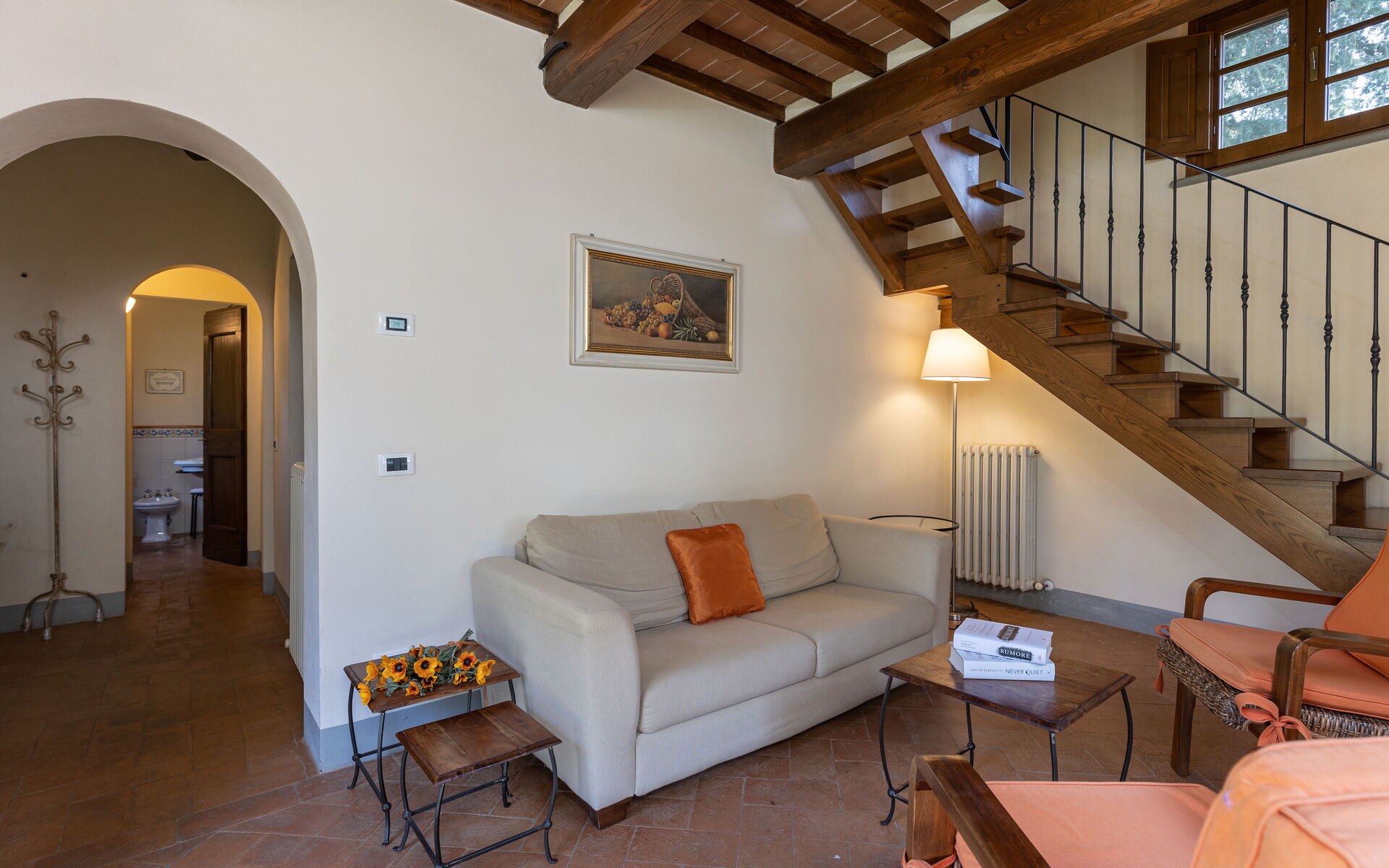 In front of the main villa there is the cottage with the third apartment, which is also furnished with typical Tuscan taste and with private entrance and garden.