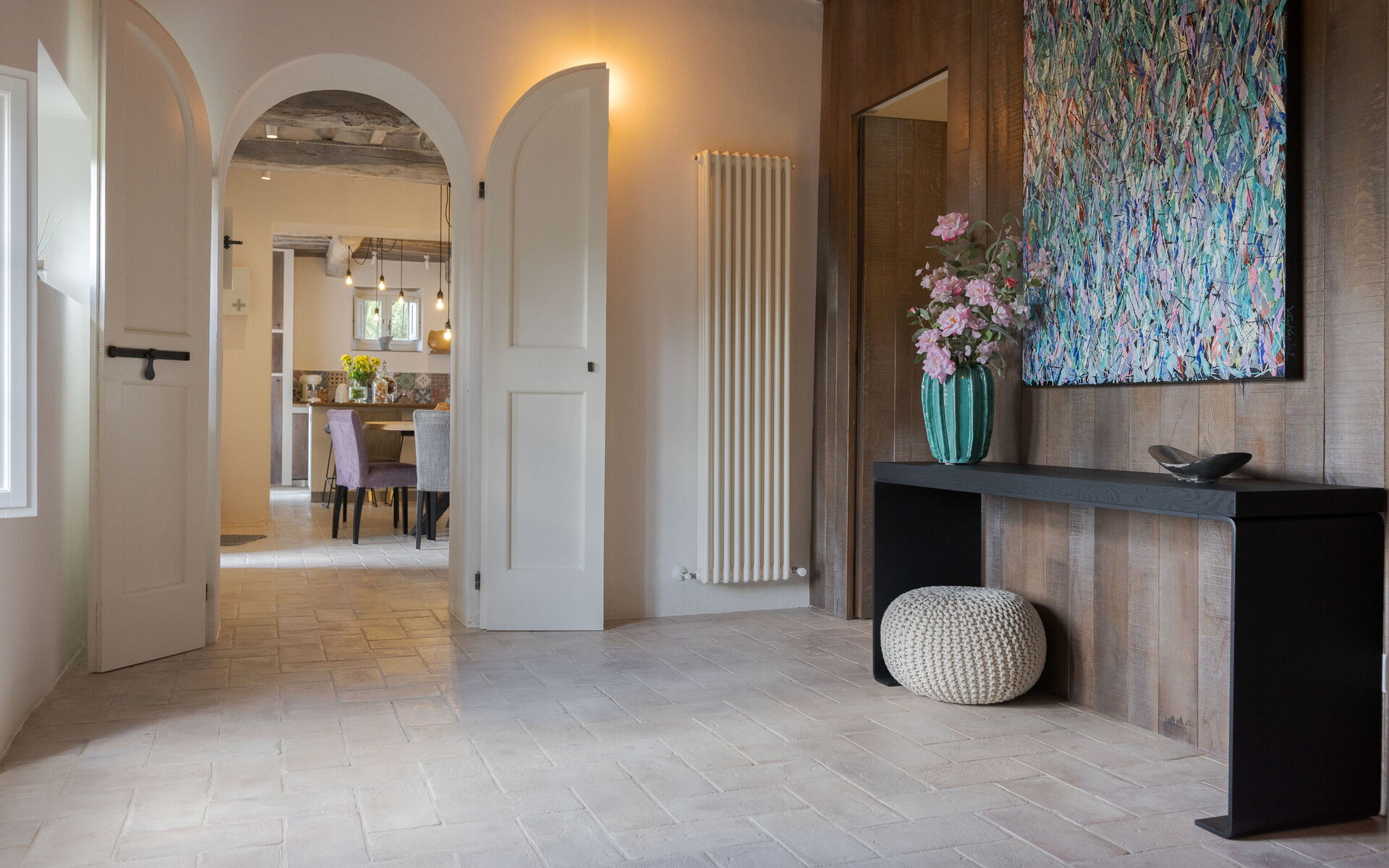 Last June, we had the pleasure to stay for one week at Tenuta Pomona, an amazing place uniquely located on one of the hills around Cortona. A small winding road takes you up the hill and once you are there, you are rewarded with a breathtaking view on the Chiana valley and the city of Cortona. From the moment you enter the domain, you experience a feeling of tranquillity, beauty and freedom… The property itself consists of the main house and some annexes, everything renovated with great respect for the Tuscan style and with tasteful interiors.