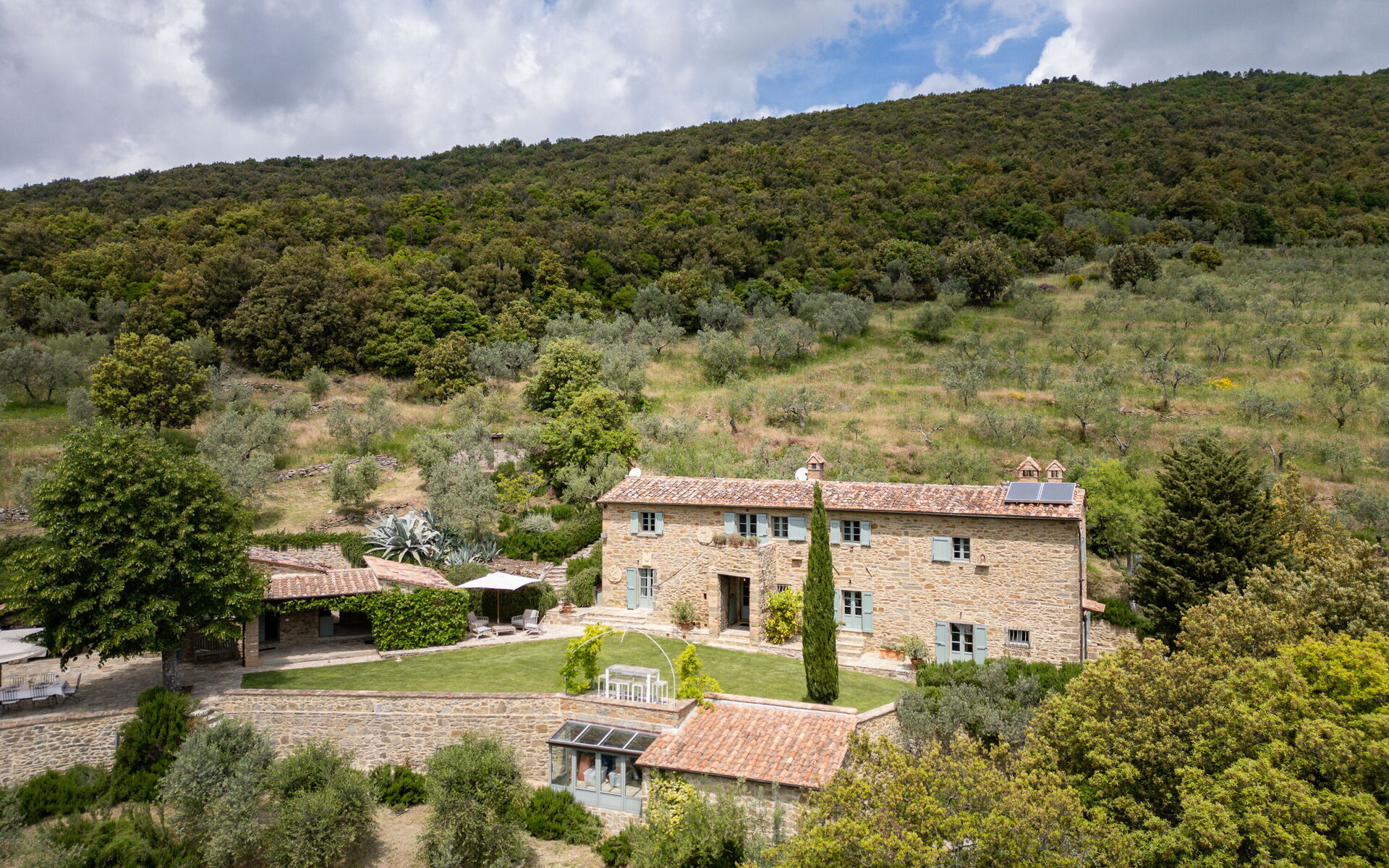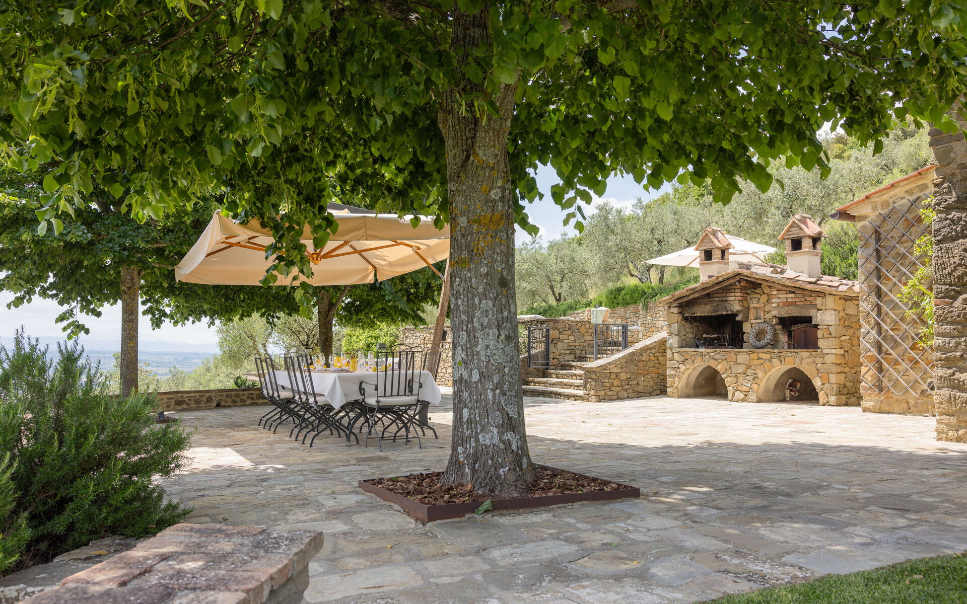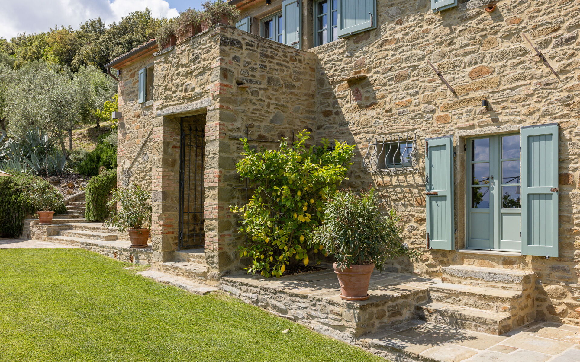 Immersed in the heart of Tuscany, nestled on the south side of the hill where the ancient Etruscan town of Cortona is located, lies Tenuta Pomona, a place where one can live an unforgettable experience, in a property of undisputed charm and luxury. The villa enjoys one of the most beautiful views of the Cortona hillside, thanks to its panoramic position with breathtaking views of the Val di Chiana and the Cortona skyline. The villa is privately located away from traffic noise and is set in a scenario where vegetation, olive trees and the typical terraces of this particular hill cone create a place of rare beauty and strong visual impact.