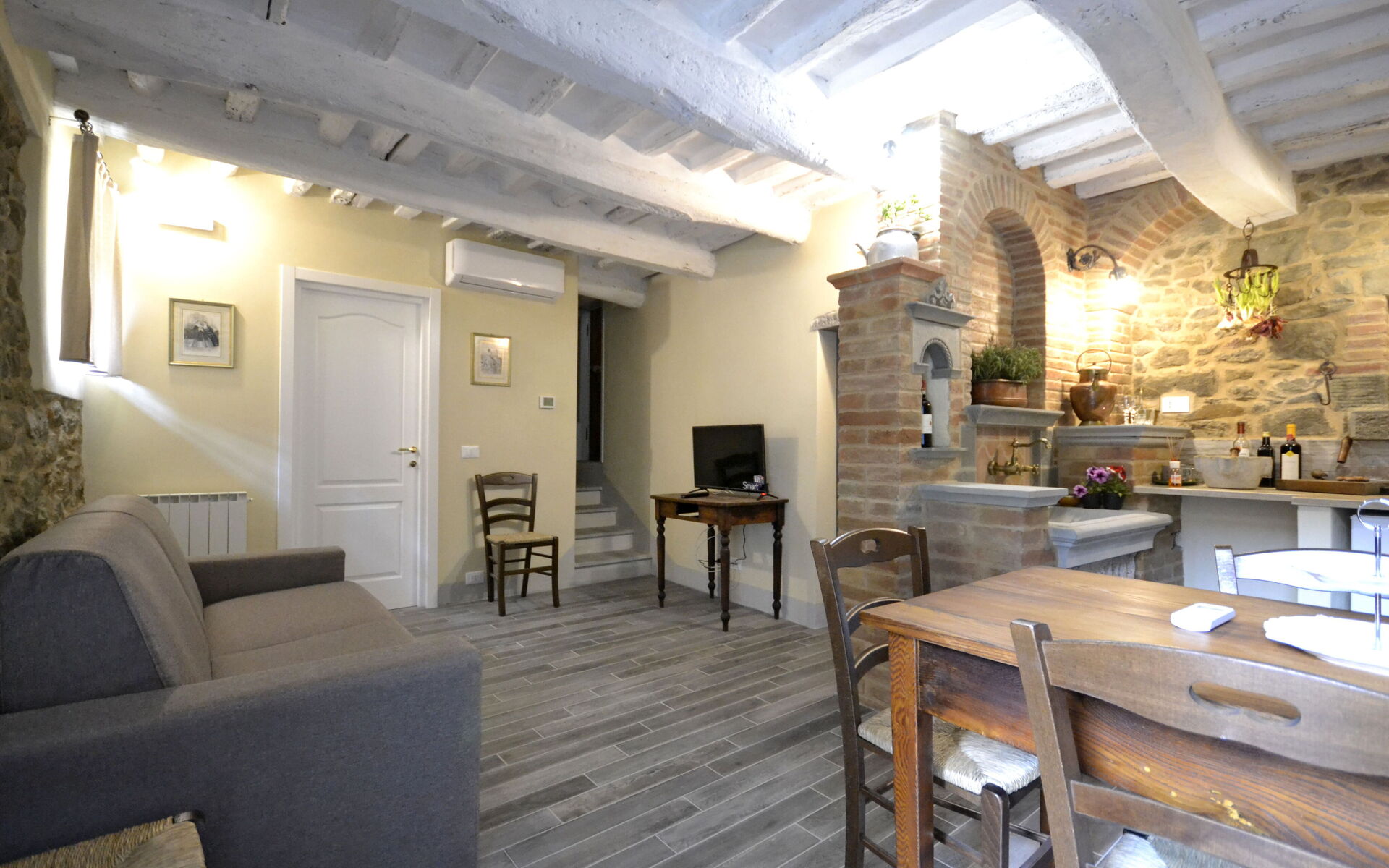 Casa Caterina is located in the heart of the historic center of the ancient Etruscan town of Cortona, a place rich in history and charm, and one of the oldest medieval towns of Italy. Located just a few steps away from the squares and main streets of the town, yet in a secluded and quiet area, the apartment has been recently and carefully restored with the use of quality and recycled materials to keep the typical architecture of ancient Cortona houses intact but at the same time trying to bring a touch of modernity and comfort to make it a perfect stay for its guests.